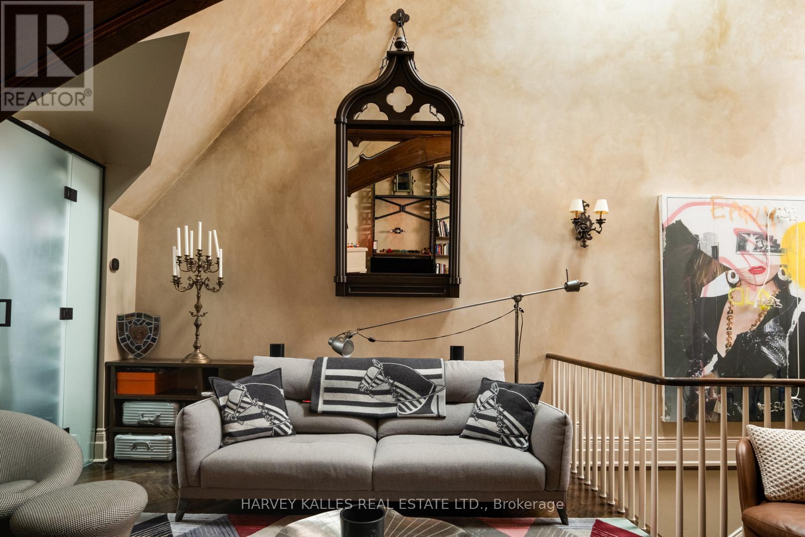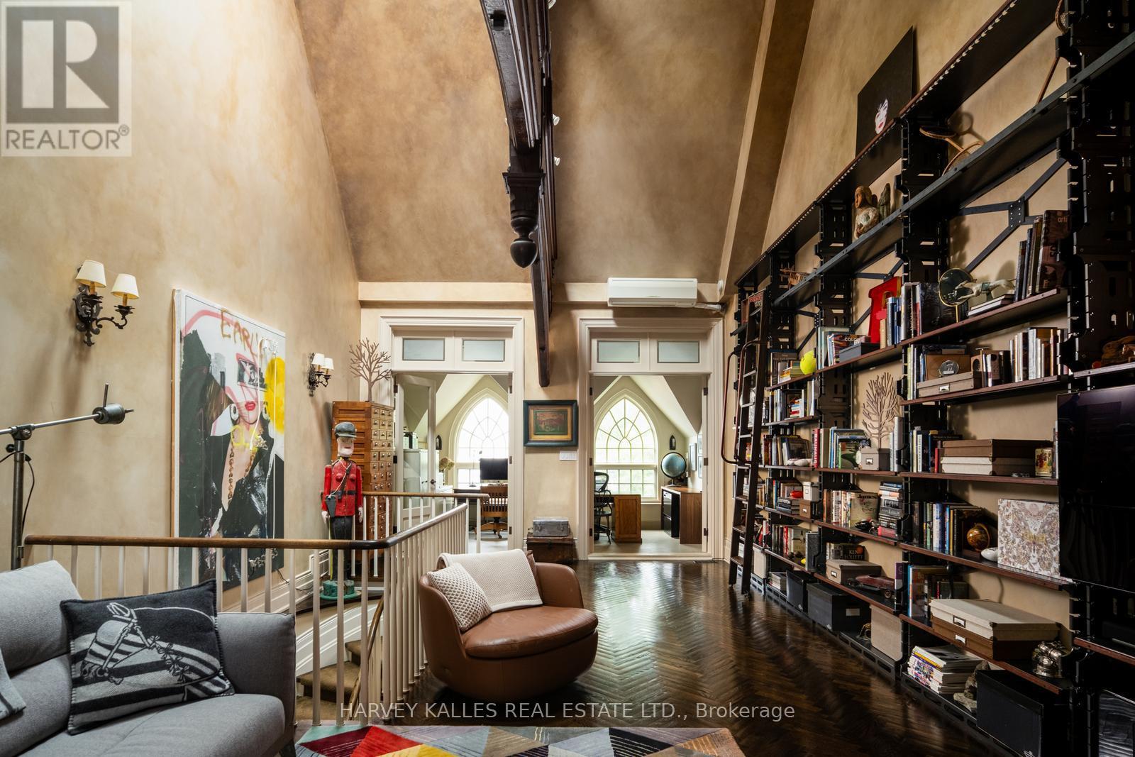 12 Macpherson Ave TH3 | Superb Church Conversion Townhome in Prime Summerhill. Rarely offered, this 2-bed, 2.5-bath townhome in the exclusive Church conversion at 12 Macpherson Avenue is a truly unique offering in one of Toronto's most coveted locations. With over 2,500 sq ft of refined living space, this residence blends quiet luxury with architectural excellence. The main floor features a spacious living/dining area, gas fireplace, and French doors leading to a private terrace ideal for morning coffee or elegant entertaining. A grand staircase leads to the primary and second bedrooms, both generously sized with custom storage and natural light. The third storey welcomes you to a dramatic loft-style upper level with original soaring vaulted ceilings; complemented by a wood burning fireplace set against the sprawling custom library design feature- wonderful to cozy up and read a book. Additional features of his/hers offices - with heated floors & wonderful windows making this a welcoming work-from-home space for two. Direct access to underground garage with two-car parking. Grounds impeccably maintained by Christine's Touch, heated driveway and walkways. Located just steps to Yonge Street, this home is perfectly positioned near Toronto's top restaurants, boutique shops, transit, and private clubs. A rare opportunity to own a piece of architectural history in one of Toronto's most desirable neighbourhoods - this is an address to be proud of. (id:4555)