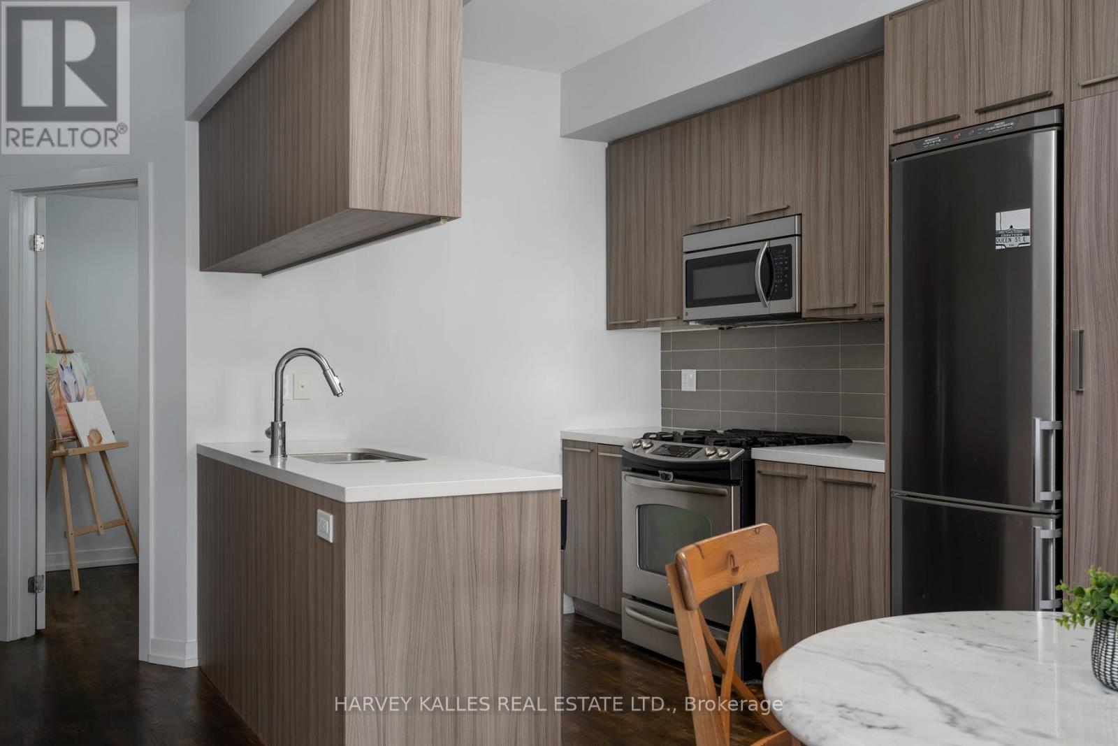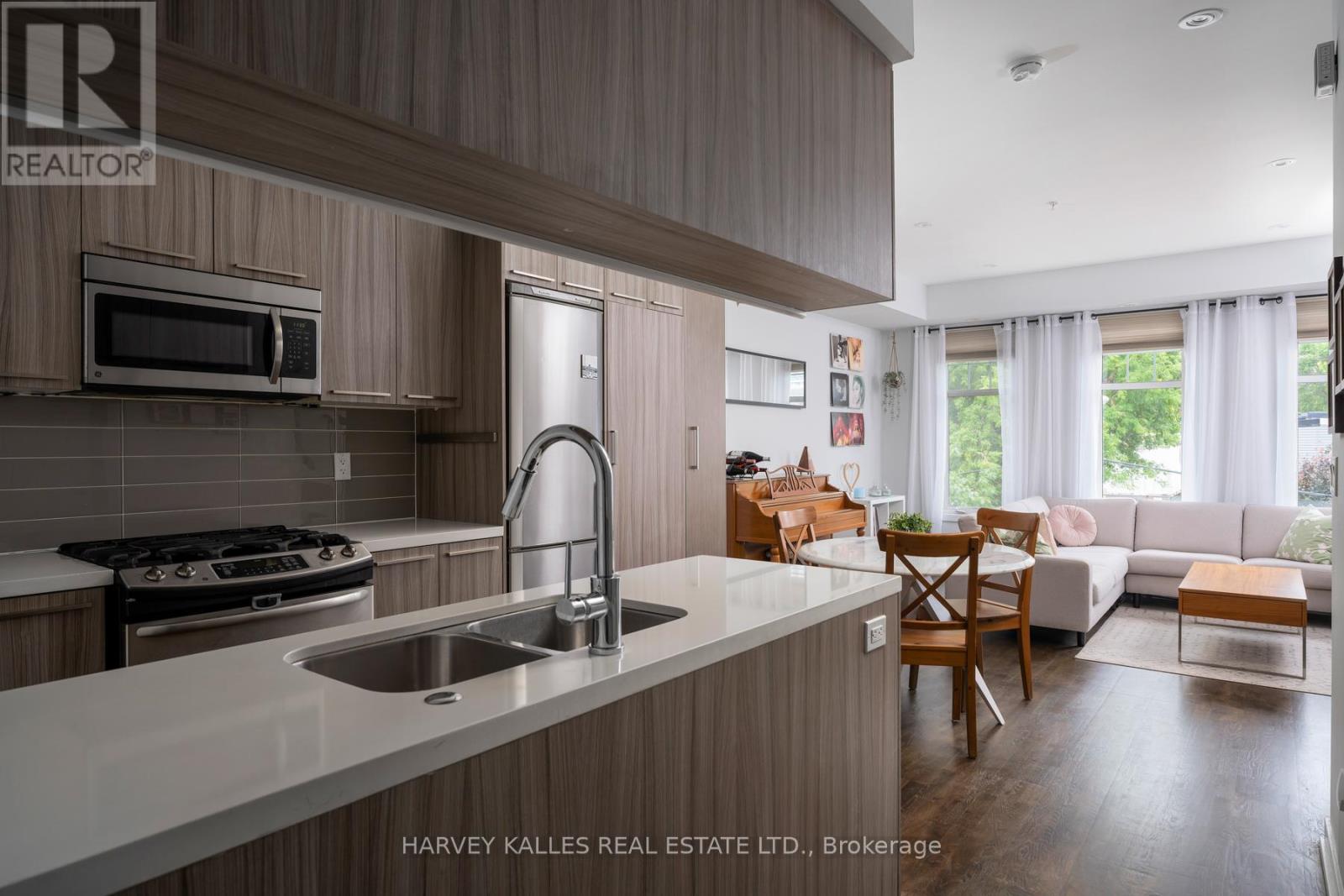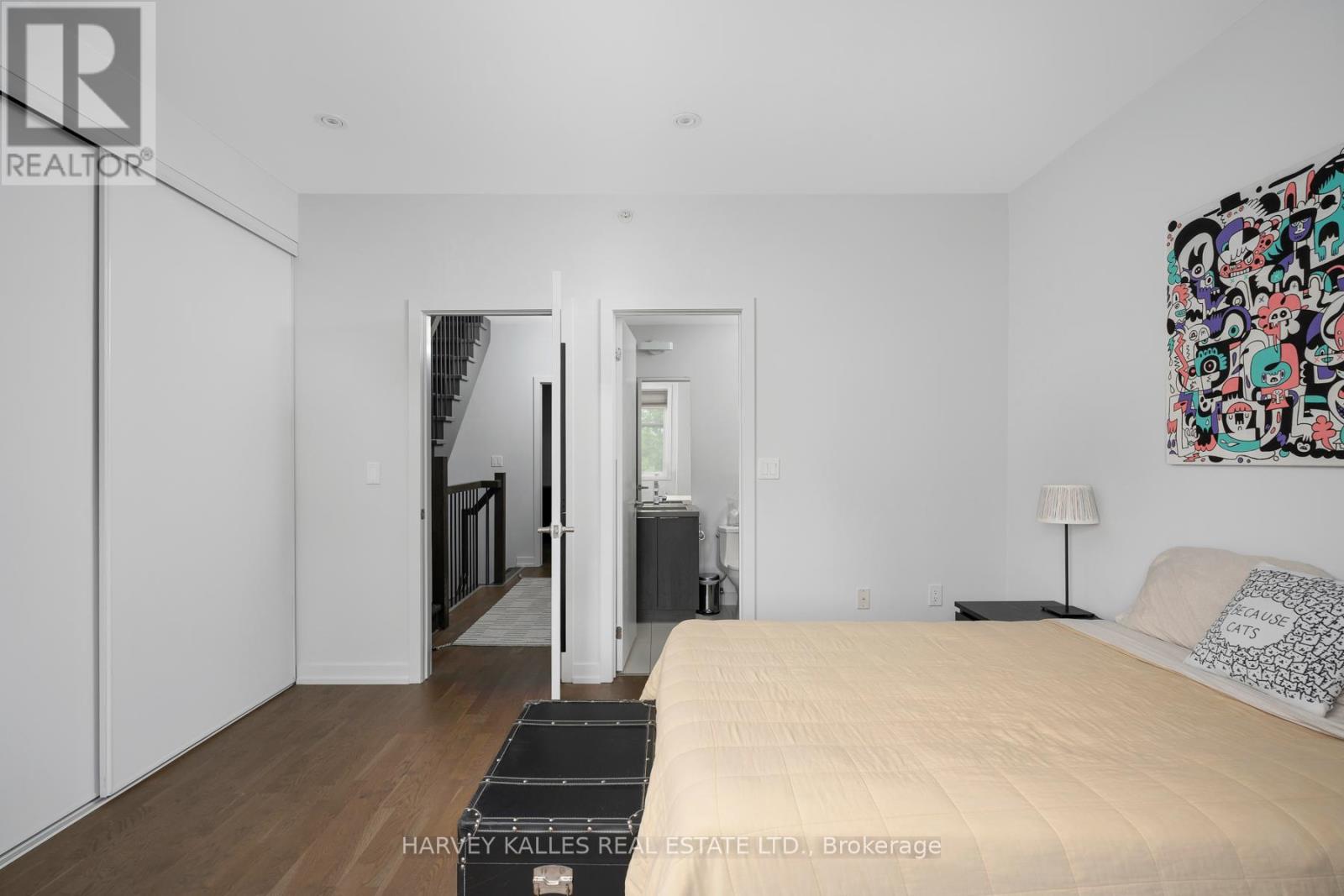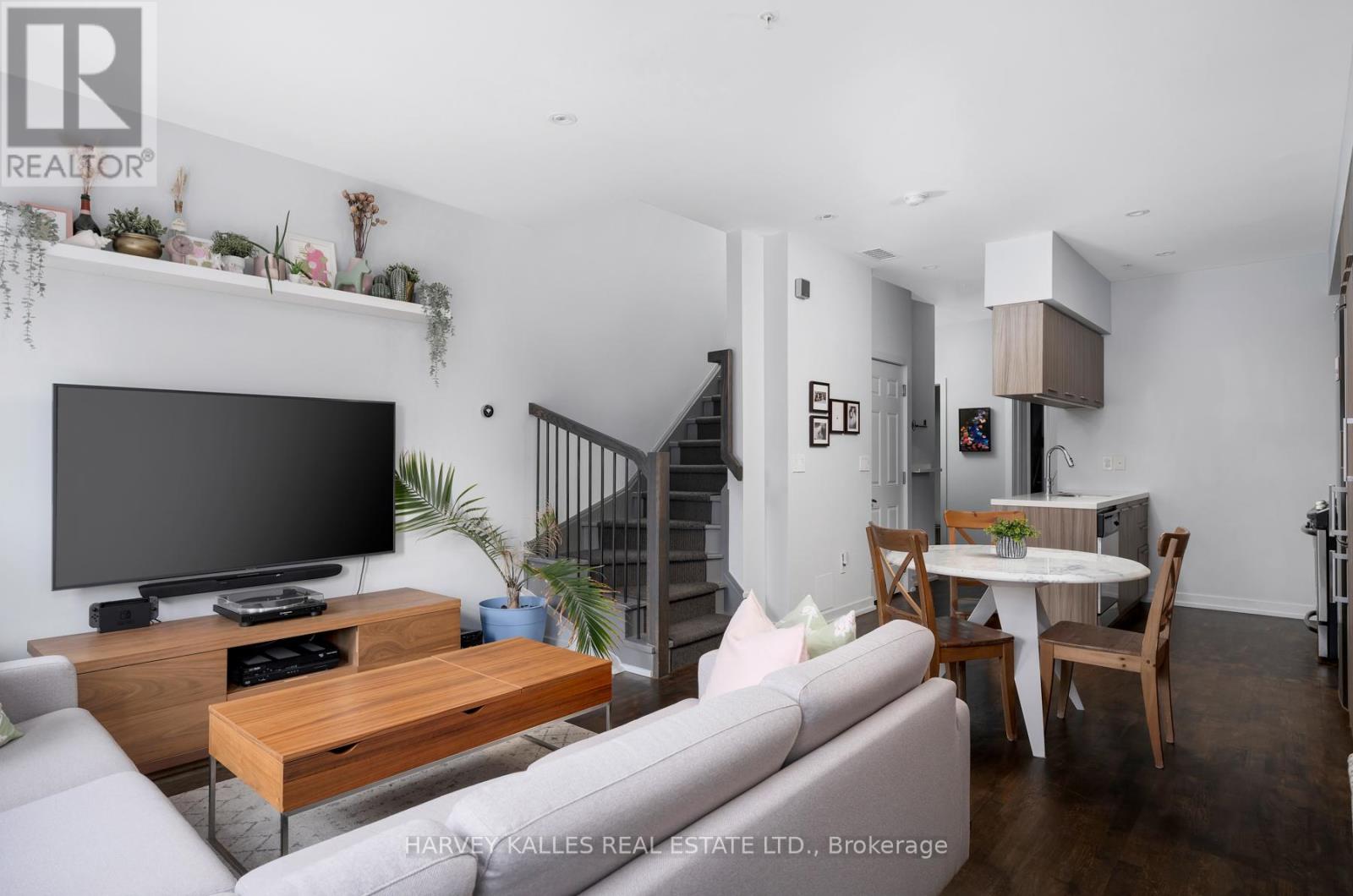 Welcome to Riverside Towns, where space, light, and lifestyle meet. This rare 1,380 sq. ft. end-unit townhome impresses with its wide, sun-filled layout, hardwood floors, and versatile office/den. The sleek kitchen is a chefs delight with Caesarstone counters, stainless steel appliances, gas stove, and an oversized pantry, seamlessly connecting to the open living and dining areas for both effortless entertaining and everyday comfort. A convenient main floor powder room completes the picture.Upstairs, two spacious bedrooms offer abundant storage, including wall-to-wall closets and a skylit second bedroom. The serene primary suite features west-facing windows and a private ensuite.The highlight is a sprawling rooftop terrace with gas BBQ hookup and spectacular CN Tower and skyline views, creating an unrivaled setting for al fresco dining, entertaining, or simply unwinding at sunset.Perfectly positioned in Riverside, just steps to Queen East boutiques, dining, the Broadview Hotel, 24hr TTC, and the DVP, this move-in-ready home is a rare offering that combines function, style, and one of the best rooftops in the city. (id:4555)