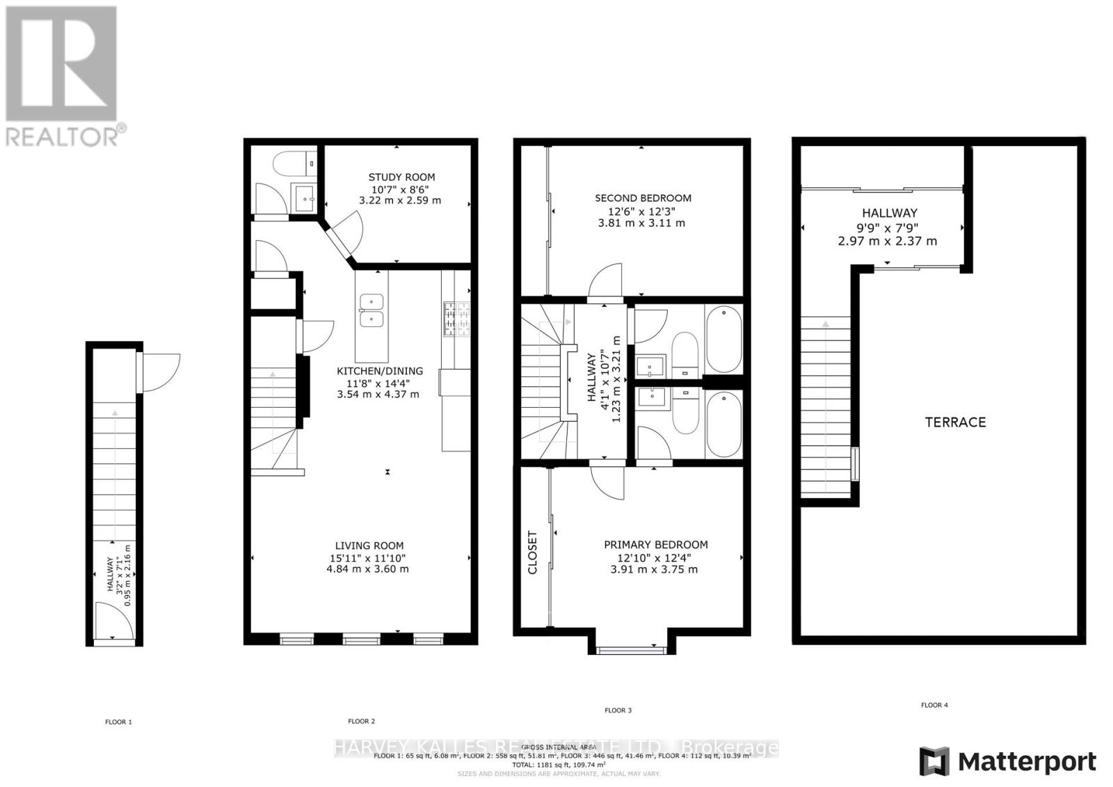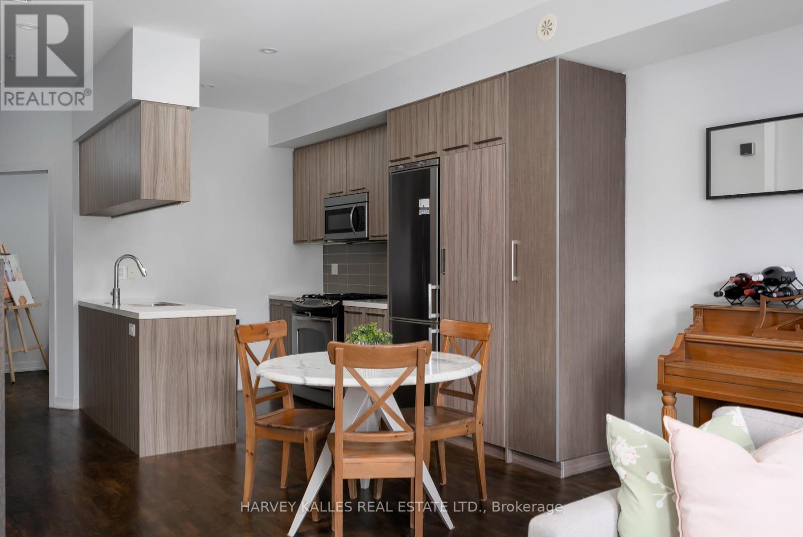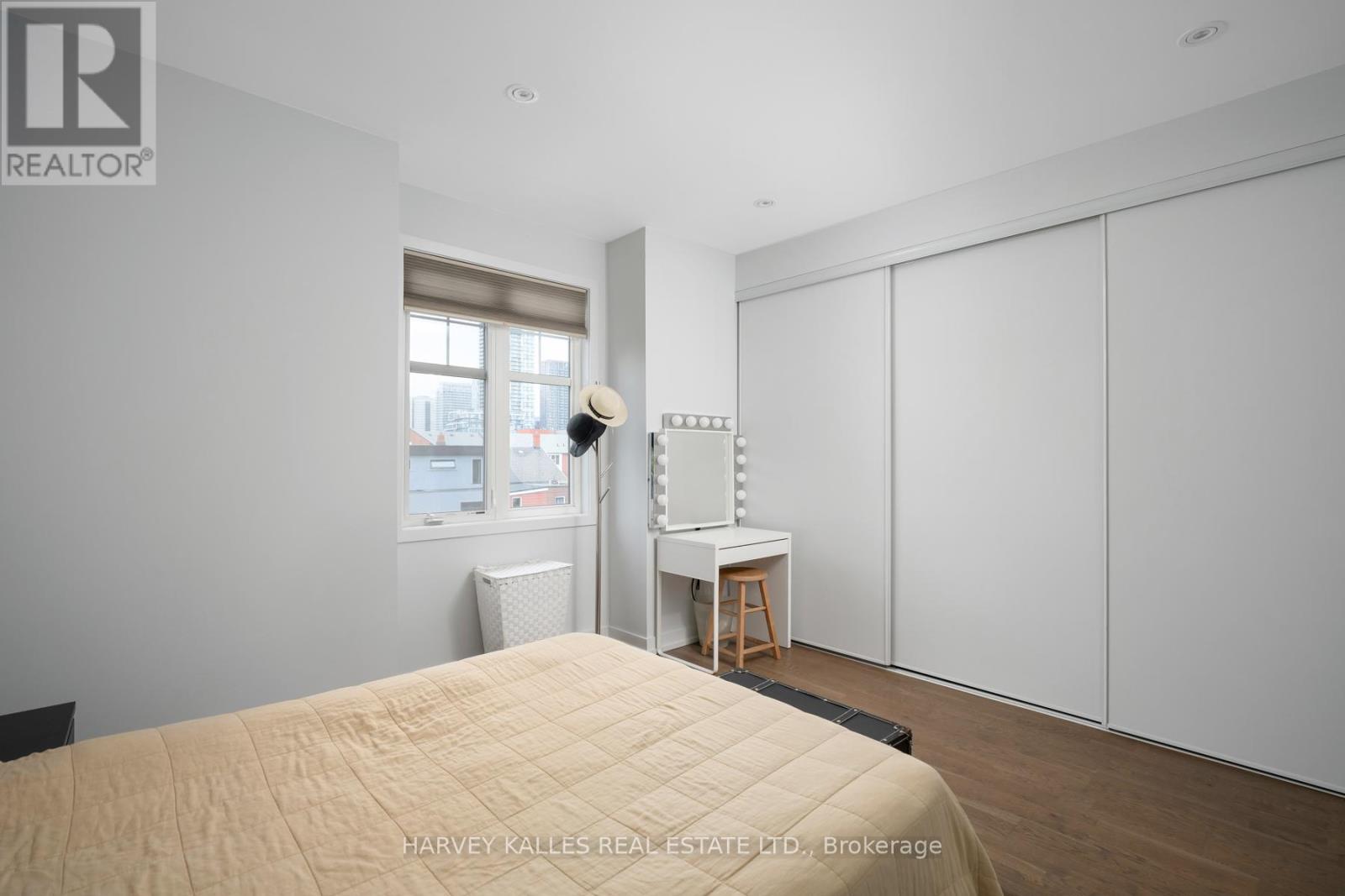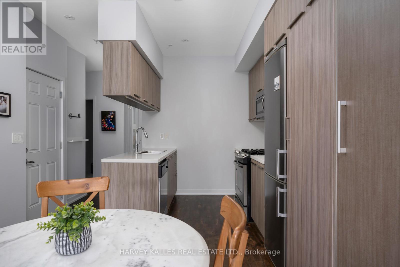 Welcome to Riverside Towns, where space, light, and lifestyle meet. This rare 1,380 sq. ft. end-unit townhome impresses with its wide, sun-filled layout, hardwood floors, and versatile office/den. The sleek kitchen is a chefs delight with Caesarstone counters, stainless steel appliances, gas stove, and an oversized pantry, seamlessly connecting to the open living and dining areas for both effortless entertaining and everyday comfort. A convenient main floor powder room completes the picture.Upstairs, two spacious bedrooms offer abundant storage, including wall-to-wall closets and a skylit second bedroom. The serene primary suite features west-facing windows and a private ensuite.The highlight is a sprawling rooftop terrace with gas BBQ hookup and spectacular CN Tower and skyline views, creating an unrivaled setting for al fresco dining, entertaining, or simply unwinding at sunset.Perfectly positioned in Riverside, just steps to Queen East boutiques, dining, the Broadview Hotel, 24hr TTC, and the DVP, this move-in-ready home is a rare offering that combines function, style, and one of the best rooftops in the city. (id:4555)