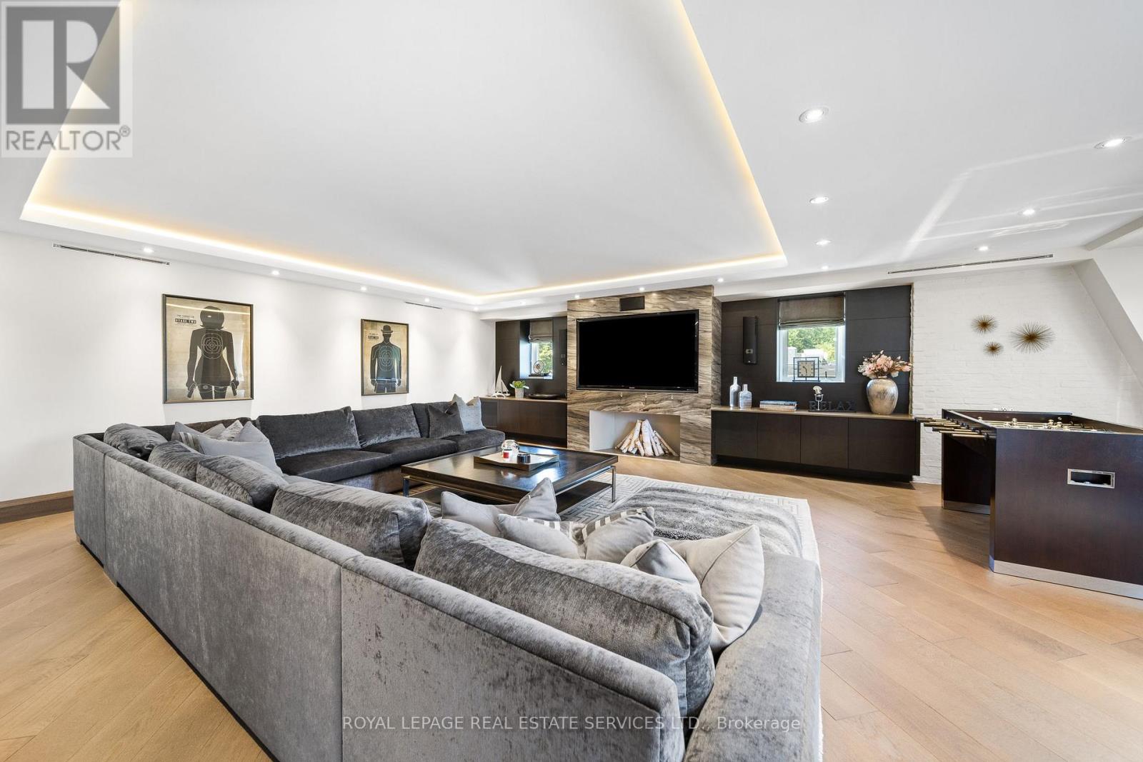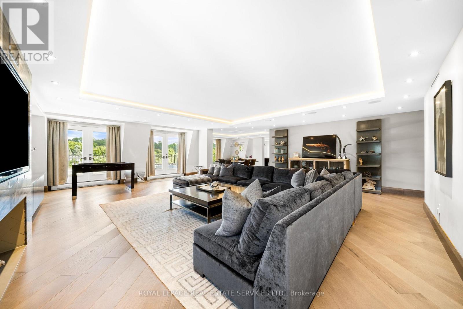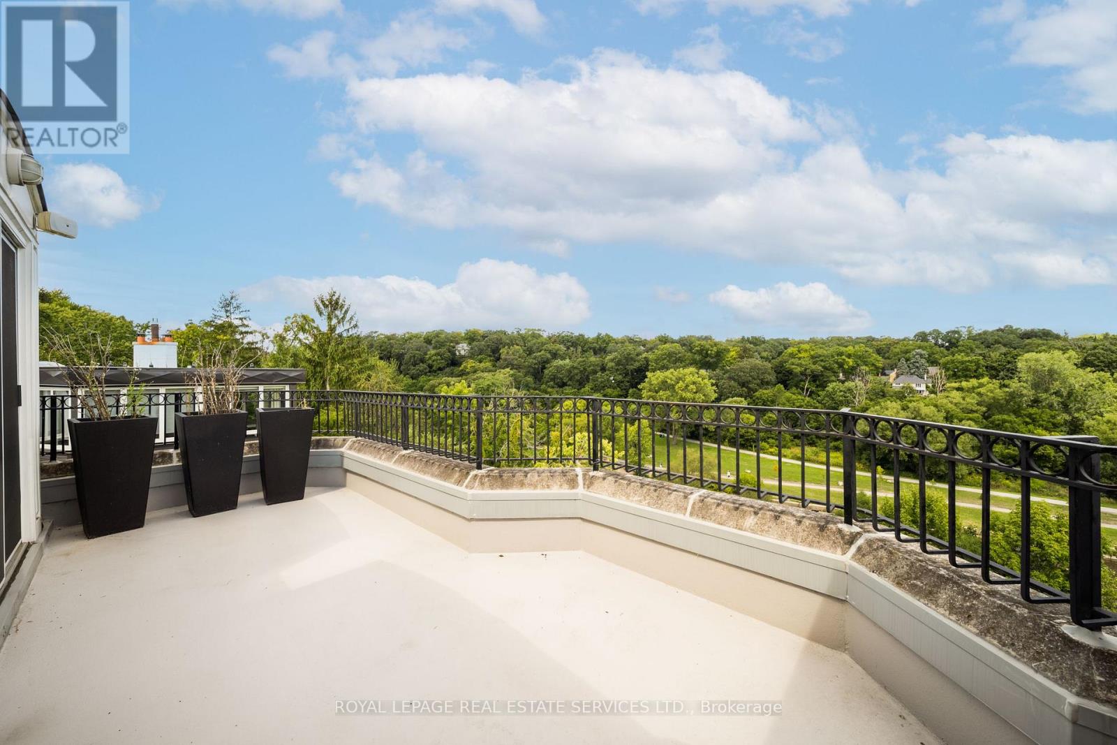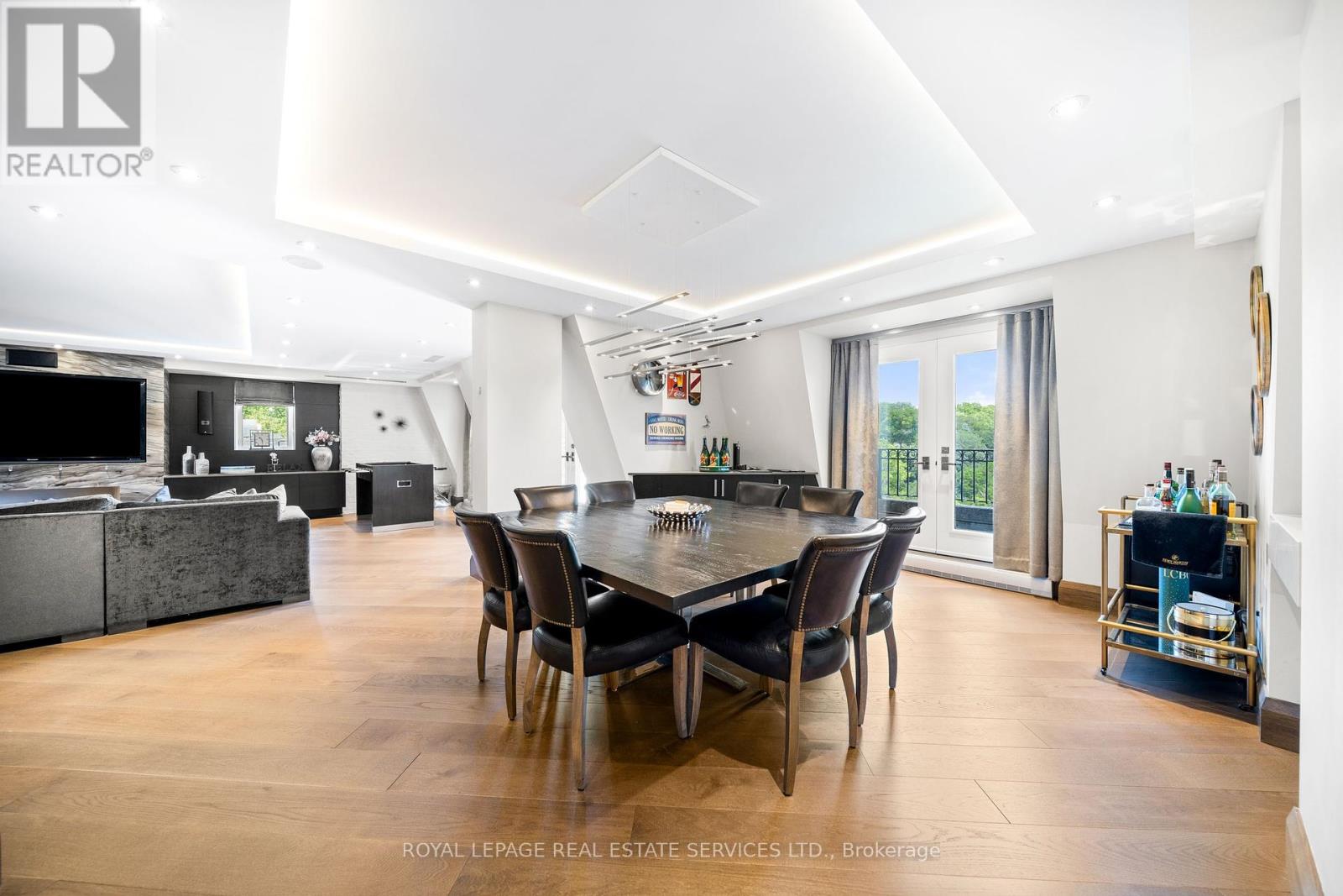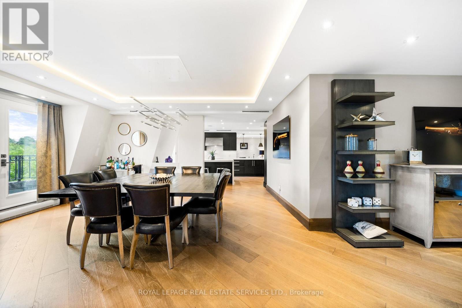 This rare full-floor penthouse at The Riverstone offers 2,959 sq. ft. of living space with sweeping views of both the city skyline and Humber River. Direct elevator access opens to a bright, functional layout featuring engineered hardwood throughout and custom-built cabinetry. The kitchen includes premium appliances such as a Wolf cooktop and oven, Falmec hood, and custom millwork. The living room features a marble-faced fireplace with quartz hearth, perfect for relaxed evenings or entertaining. The primary suite offers heated stone floors in the ensuite, custom closets, and tranquil views. White oak shaker doors, panels, and baseboards add a consistent, high-end finish throughout. Includes two parking spaces and a locker. Don't miss this opportunity to own a one of a kind penthouse in a highly sought-after building and neighbourhood. (id:4555)
