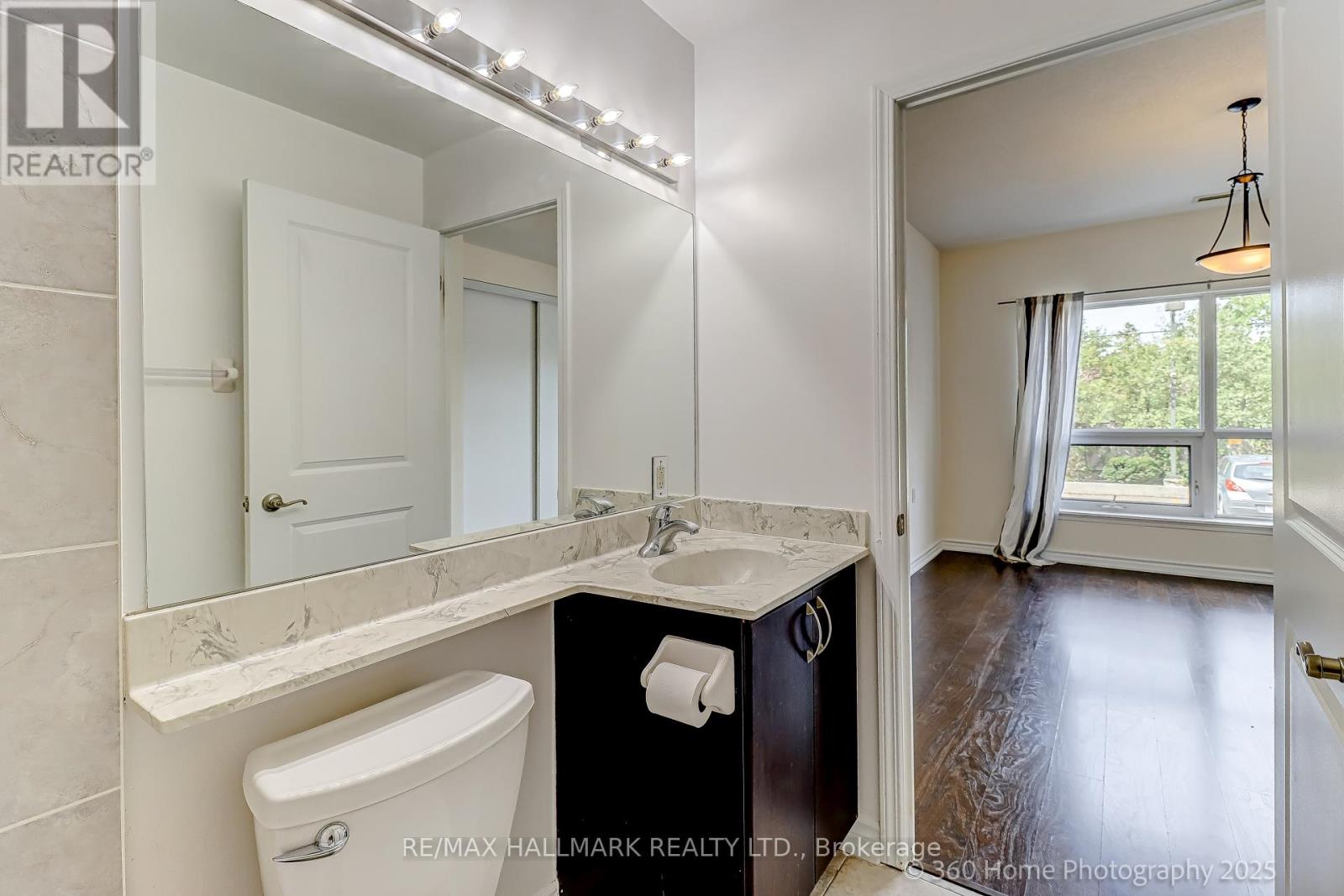 Super Rare find! 1st floor former model, corner unit with huge private 700 sq ft terrace! Nothing else like this on the market! Almost 1,000 sq ft inside with a split bedroom plan and sunfilled main living area with curved multi paned windows. 10 ft ceilings throughout! Granite and stainless steel appliances in kitchen with breakfast bar. 2 full 4 piece bathrooms. Huge closets in both bedrooms. Laminate and ceramic floors throughout. Unit has unique private secure storage room. 1 parking space included. Perfect unit for entertaining, young families, or those with pets. Almost like having your own backyard! Walk to the Sheppard West Subway, places of worship, top rated schools, and more! 1st time on the market from origional owner! Ready to move into! Available immediately! (id:4555)
