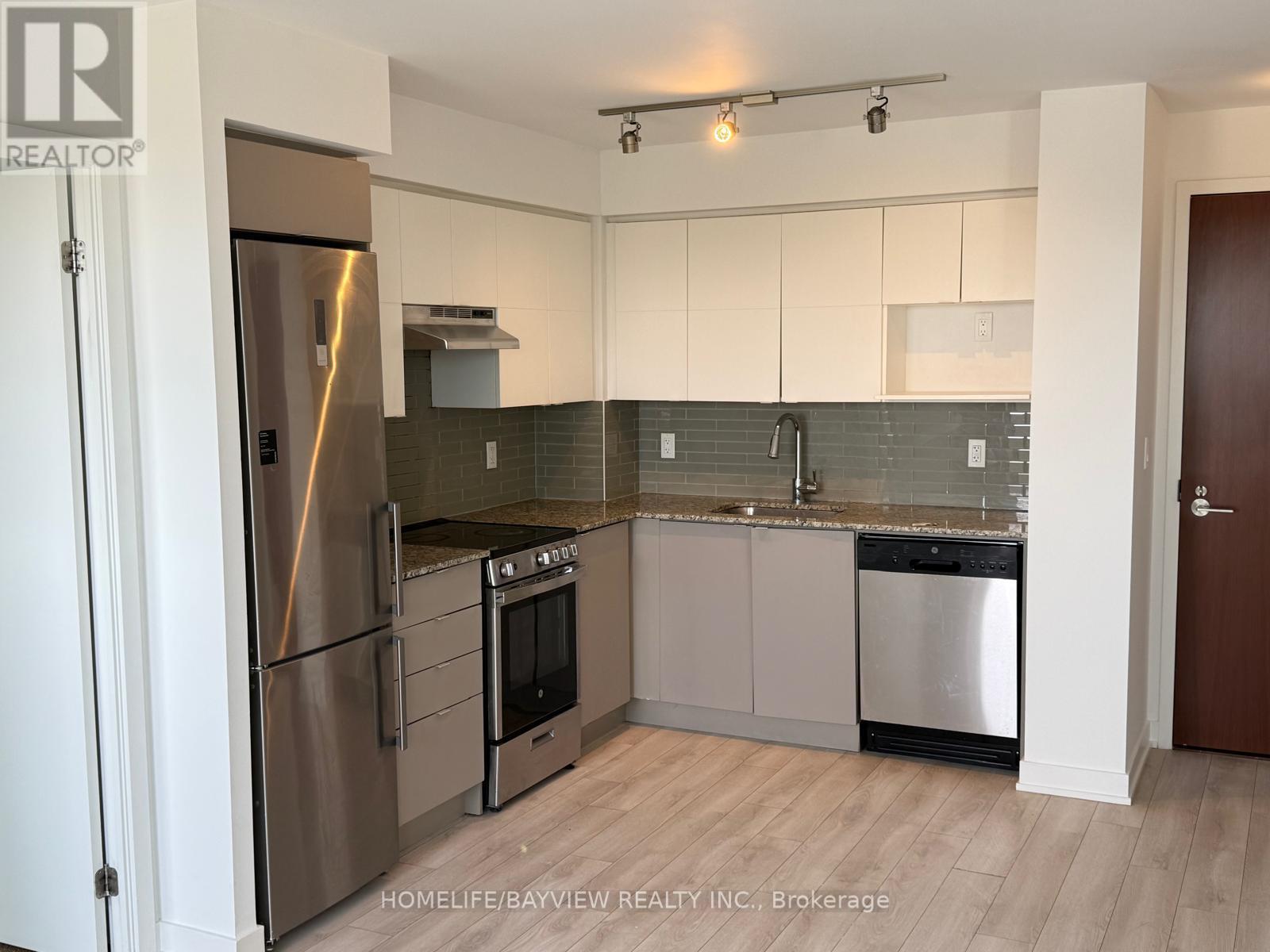 3 year new building featuring a true luxury suite, 2 bedrooms, 2 full bathrooms, smooth ceilings, huge wrap around 150 sqft balcony with unobstructed sunrise city skyline and CN Tower panoramic views from a high floor of this luxury building located a few steps to Yorkdale subway. Split bedroom floor plan with ample closet space, ensuite laundry and stainless steel appliances. Kitchen has granite countertops and custom backsplash. Primary bedroom features his and hers closets and full ensuite bathroom. Building features 24 hrs security concierge, party room, exercise room, outdoor patio, visitor parking and more. One underground parking and one storage locker. steps to Yorkdale Mall and Subway. (id:4555)
