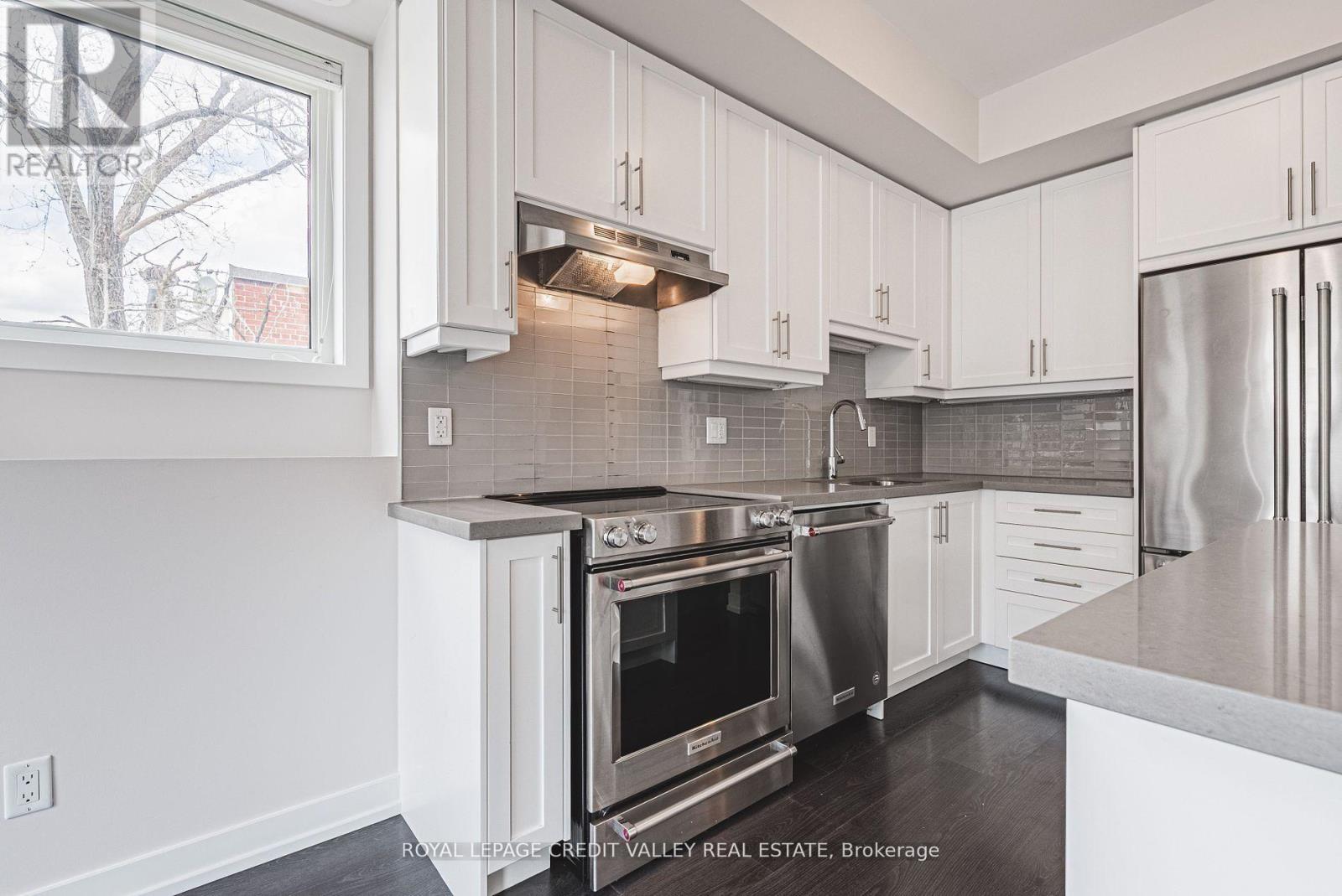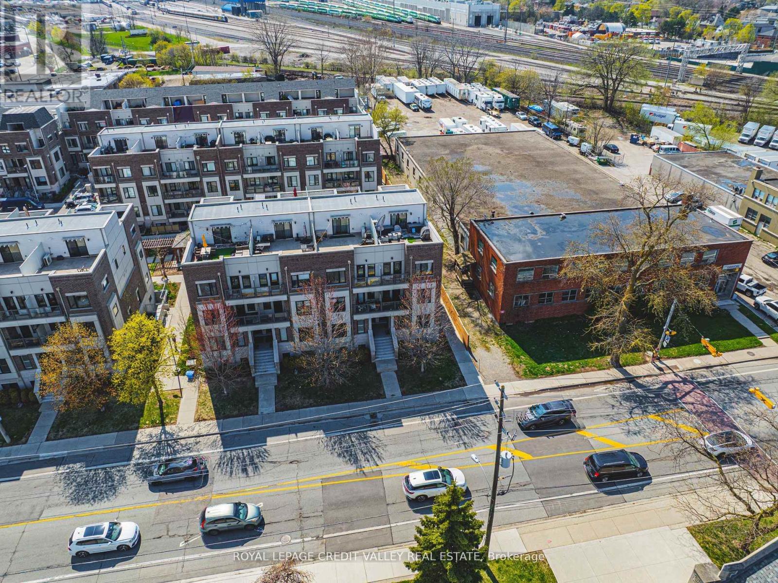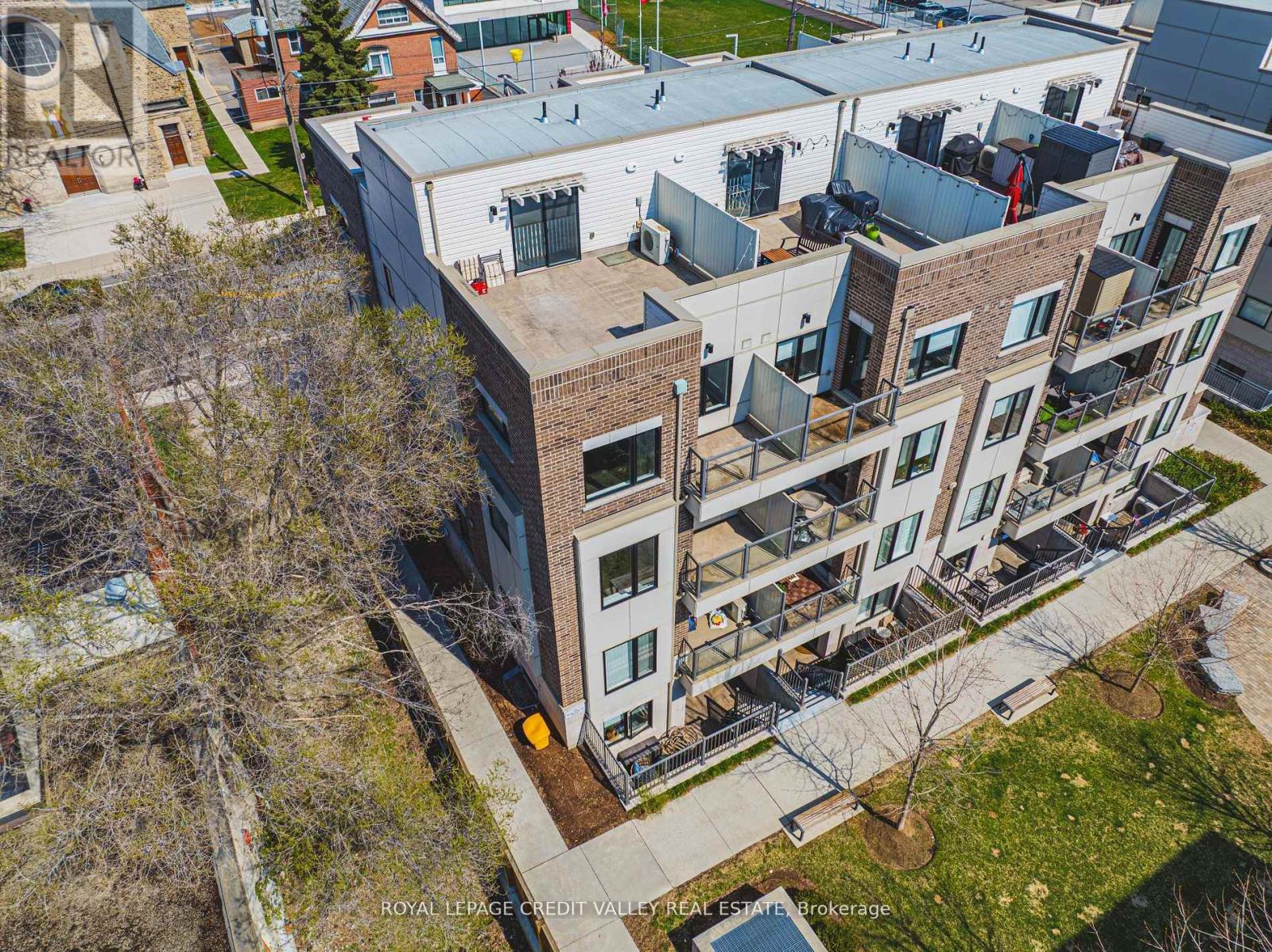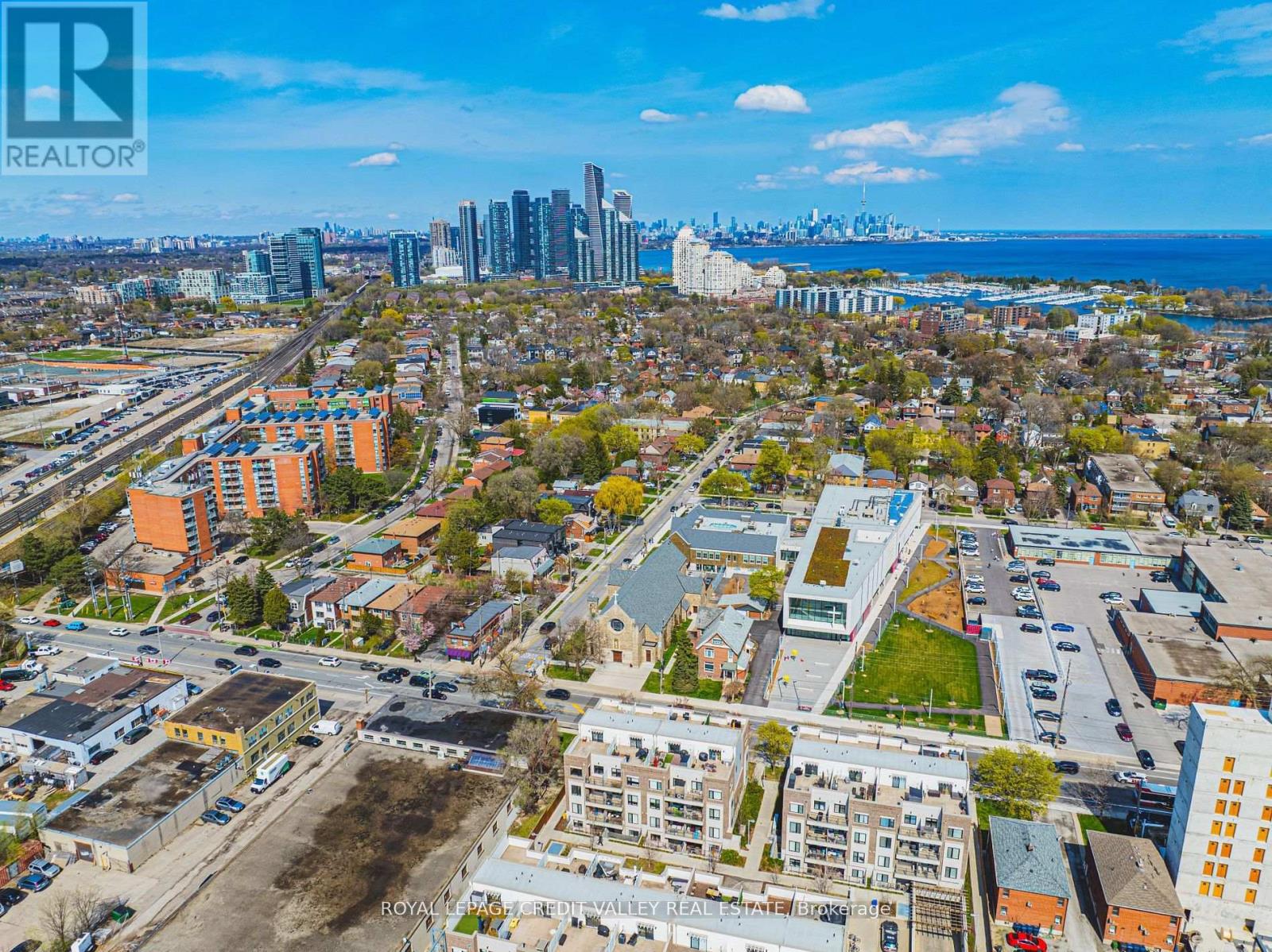 This 3 storey END UNIT townhome with RARE 2 PARKING SPACES, 2 BALCONIES PLUS 319 SF ROOF TOP TERRACE, offers urban convenience with a touch of charm. Perfectly Situated minutes from the LAKE and seamless access to public transportation across the street from Mimico Go Station and one bus to the subway, ideal for commuters and city dwellers. Freshly painted throughout the entire home, the home boasts a clean modern aesthetic with bright, inviting interiors. The layout is functional and efficient. typical of stacked townhome designs, featuring multiple levels for living sleeping and enjoyment. The crown jewel along with 2 balconies is the roof top terrace- perfect for relaxing, entertaining or soaking in panoramic views of the surrounding neighbourhood. Whether you're a first time buyer or looking for low maintenance investment, this townhome strikes a compelling balance between location, lifestyle, and value. (id:4555)