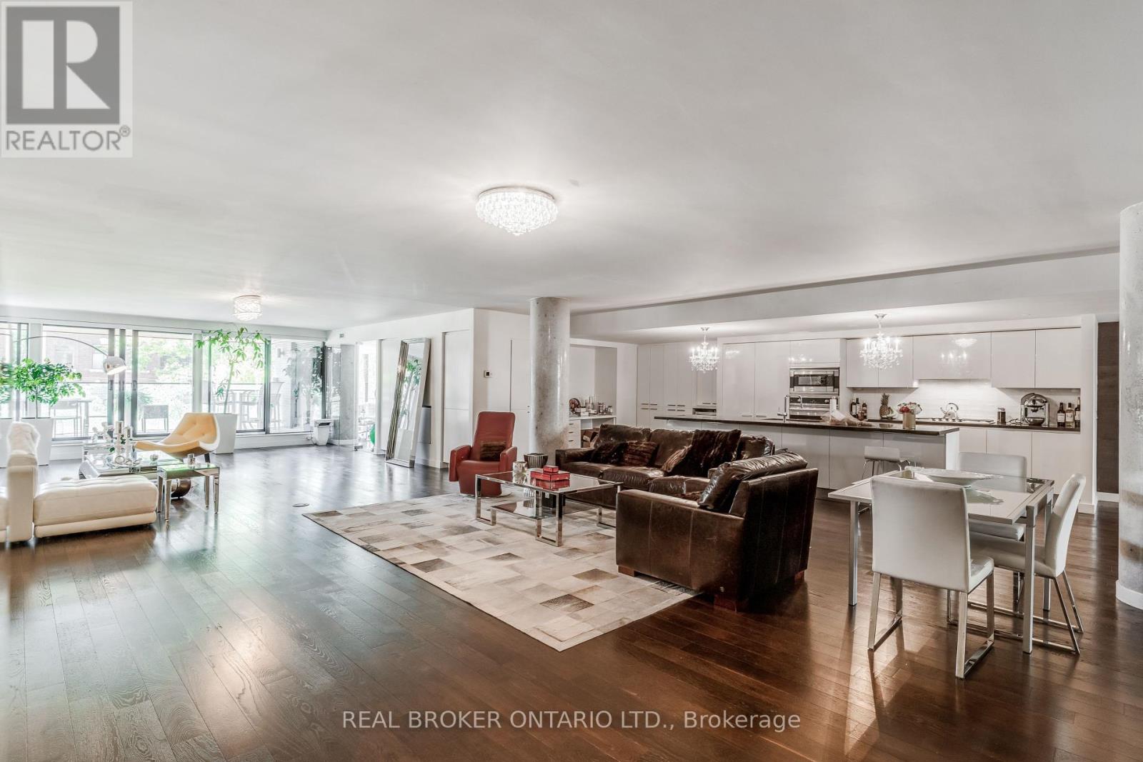 In a City of micro-condos, this one's a mega! An extraordinary opportunity in the heart of King West. With over 3400 sq.ft. of interior living and 900 sq.ft. of private outdoor space ( think sky yard!), Suite 201 at 500 Wellington offers scale and presence rarely found in Toronto's luxury market. One of only two suites on the floor, enjoy private elevator access, large scale principal rooms, and a thoughtful split- floor plan set the stage for a residence of distinction.Two expansive bedrooms with spa-inspired ensuites, a versatile den with walk-in closet, and two oversized terraces provide endless possibilities. Already impressive in proportion and flow, this home presents the perfect opportunity to update and curate the finishes to your exact tastes creating a one-of-a-kind residence in one of the city's most coveted boutique buildings. Steps to The Well and the best of King West: dining, shopping, culture, and green space, this is a rare chance to reimagine urban living at its absolute finest. (id:4555)