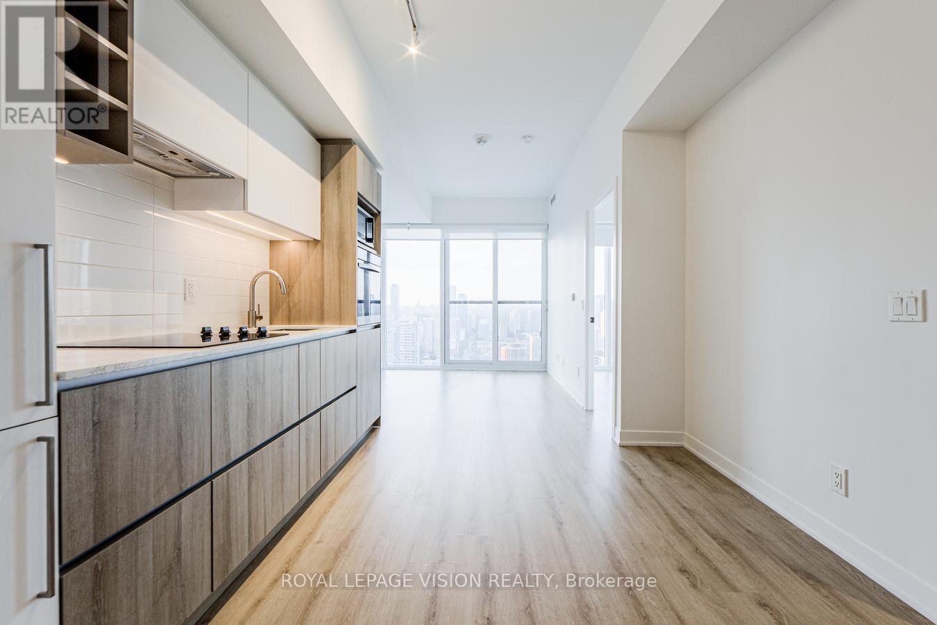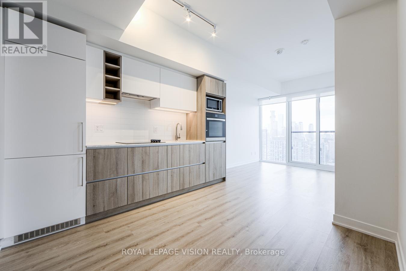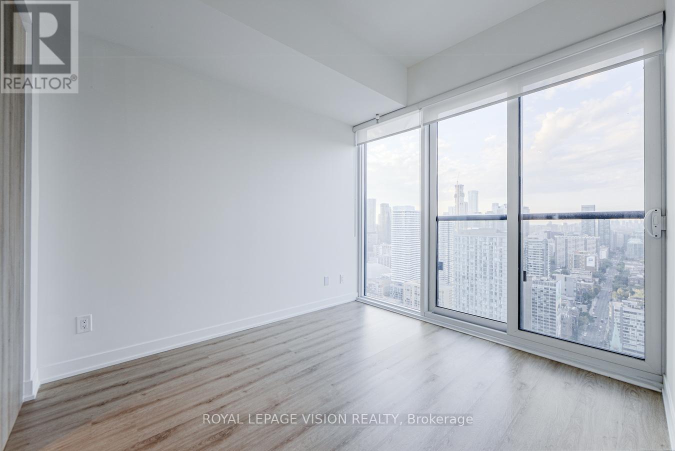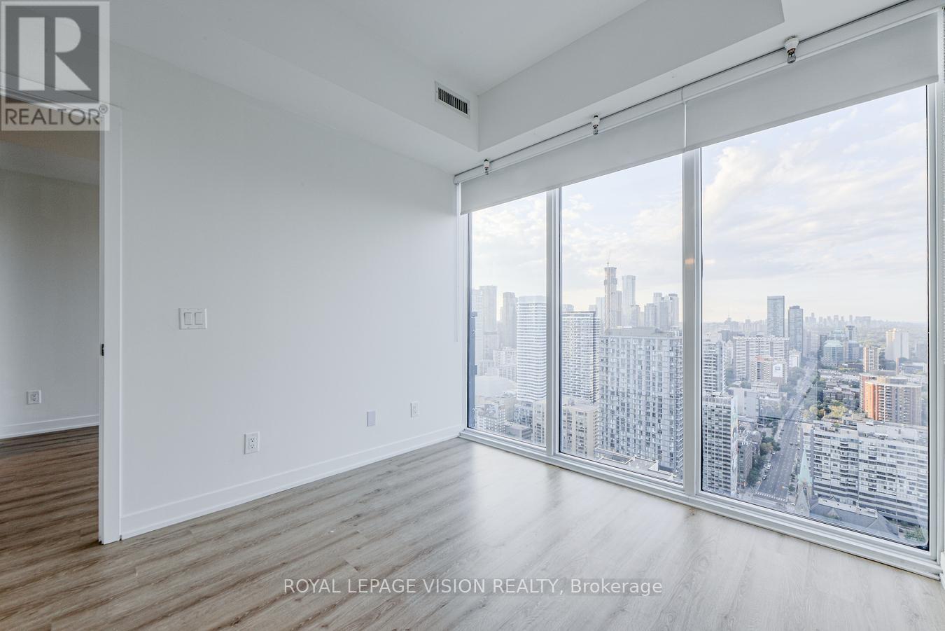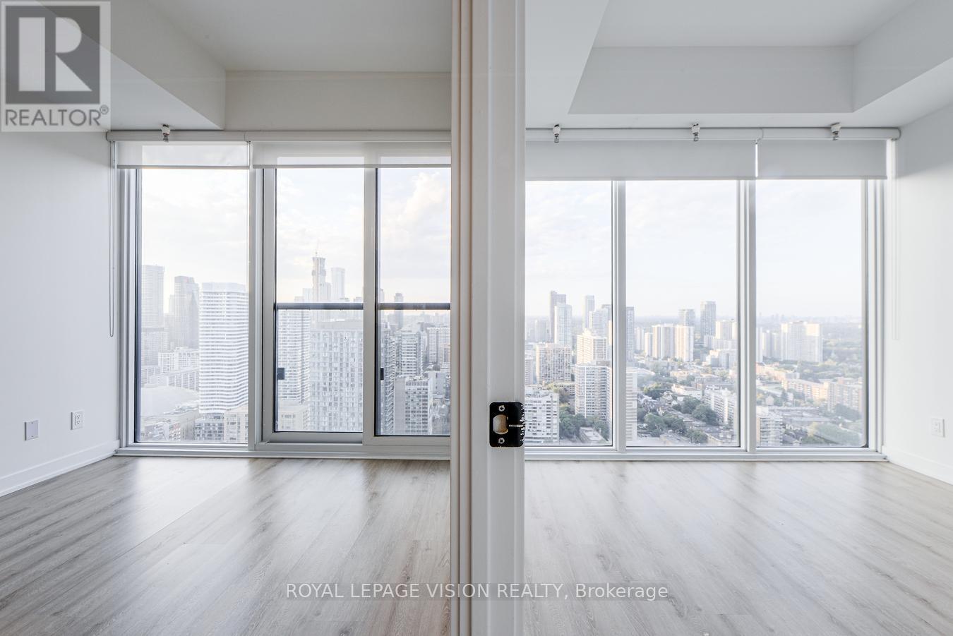 Perched on the 45th floor, this bright 2-bedroom, 2-bathroom suite at Prime Condos offers sweeping, unobstructed views of downtown Toronto. Featuring an open-concept layout, floor-to-ceiling windows, laminate flooring, and a modern kitchen with stainless steel appliances, quartz countertops, and stylish cabinetry, this suite blends style and functionality. The primary bedroom includes a large closet and private 3-piece ensuite, while the second bedroom is ideal for guests or a home office.Located in the Garden District, the suite is within a 15-minute walk to Toronto Metropolitan University and George Brown College, making it convenient for students and faculty. Steps from shopping, dining, entertainment, and transit, residents enjoy amenities including a fitness centre, yoga and spin studios, indoor and outdoor lounges, wrap-around terrace, party and dining rooms, and 24/7 concierge. (id:4555)