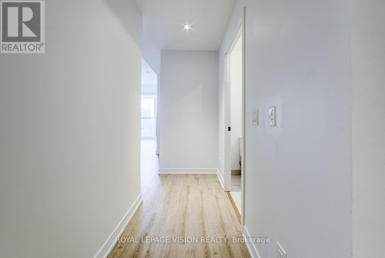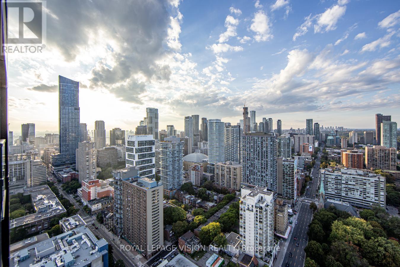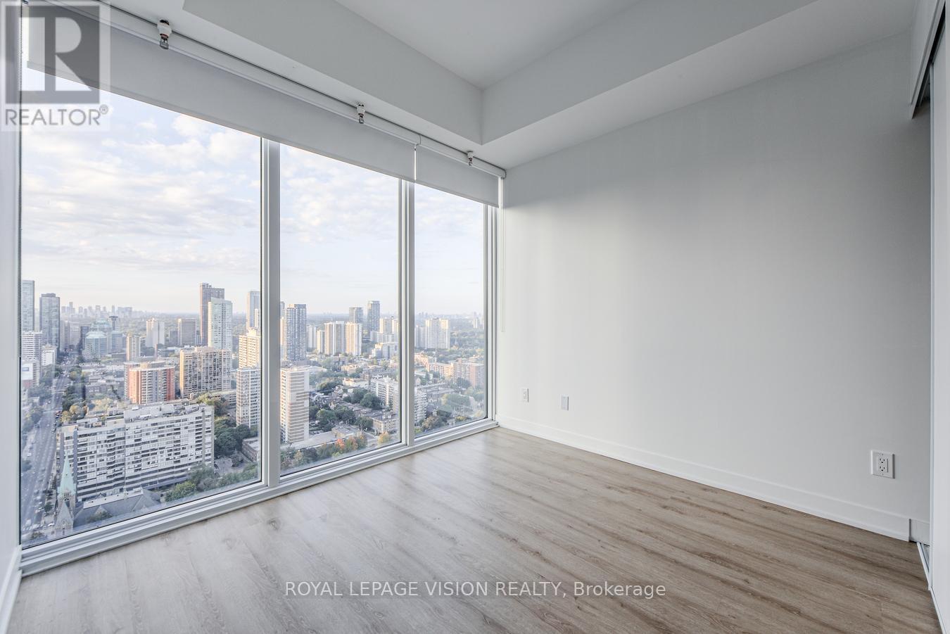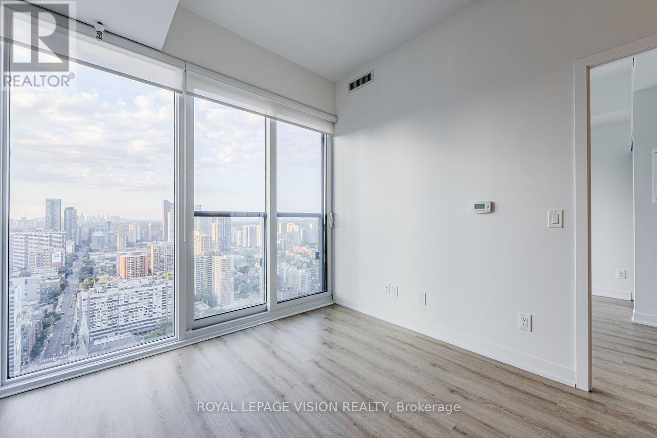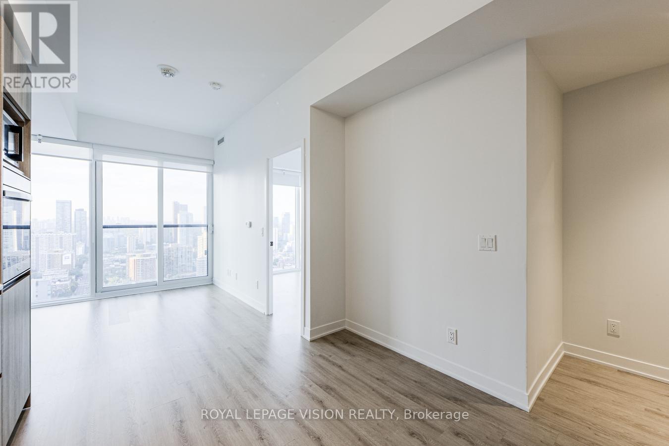 Perched on the 45th floor, this bright 2-bedroom, 2-bathroom suite at Prime Condos offers sweeping, unobstructed views of downtown Toronto. Featuring an open-concept layout, floor-to-ceiling windows, laminate flooring, and a modern kitchen with stainless steel appliances, quartz countertops, and stylish cabinetry, this suite blends style and functionality. The primary bedroom includes a large closet and private 3-piece ensuite, while the second bedroom is ideal for guests or a home office.Located in the Garden District, the suite is within a 15-minute walk to Toronto Metropolitan University and George Brown College, making it convenient for students and faculty. Steps from shopping, dining, entertainment, and transit, residents enjoy amenities including a fitness centre, yoga and spin studios, indoor and outdoor lounges, wrap-around terrace, party and dining rooms, and 24/7 concierge. (id:4555)