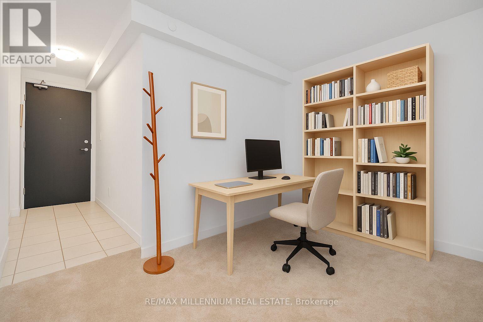 Attention First-Time Buyers & Investors! Discover affordable living in this exceptional Tridel-built residence with a modern, energy-efficient design in the heart of Main & Danforth. This spacious one-bedroom unit (566 sq ft) offers an open-concept layout with southwestern views of Toronto, filling the space with natural light.Featuring an original galley kitchen, a 4-piece bath, and brand-new broadloom carpet in the living room, dining room, and bedroom, this home is move-in ready and welcoming. With low maintenance fees that include heat and water, you'll enjoy stress-free ownership.The building provides outstanding amenities: a stylish lounge, fully equipped exercise room, rooftop deck with BBQs and gardens, party/meeting rooms with full kitchen, and ample visitor parking.Location is unbeatable-just steps to Main Subway Station, Danforth GO Train, or a quick streetcar ride downtown. Enjoy the convenience of grocery stores, cafés, shopping along the Danforth, and nearby parks and recreation facilities-all right at your doorstep.This is a wonderful opportunity to call one of Toronto's most vibrant neighbourhoods home! (Photos have been virtually staged). (id:4555)