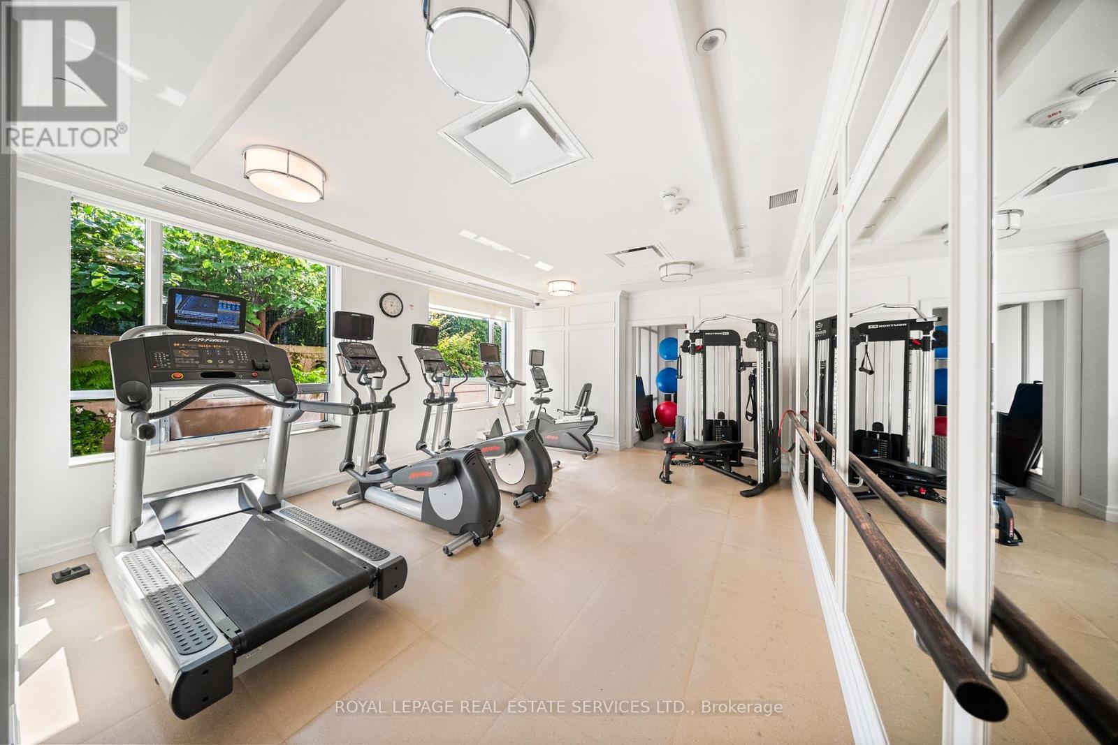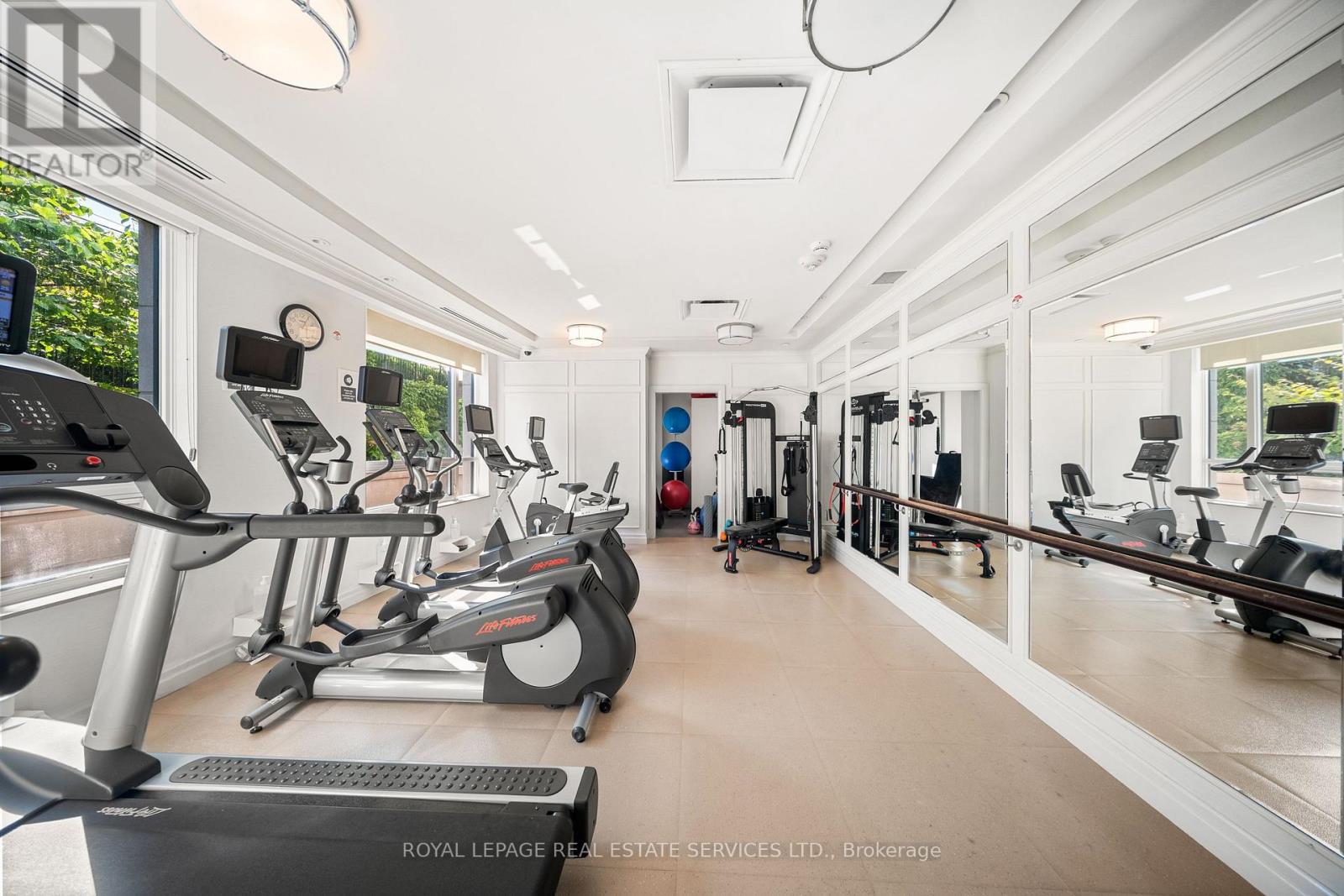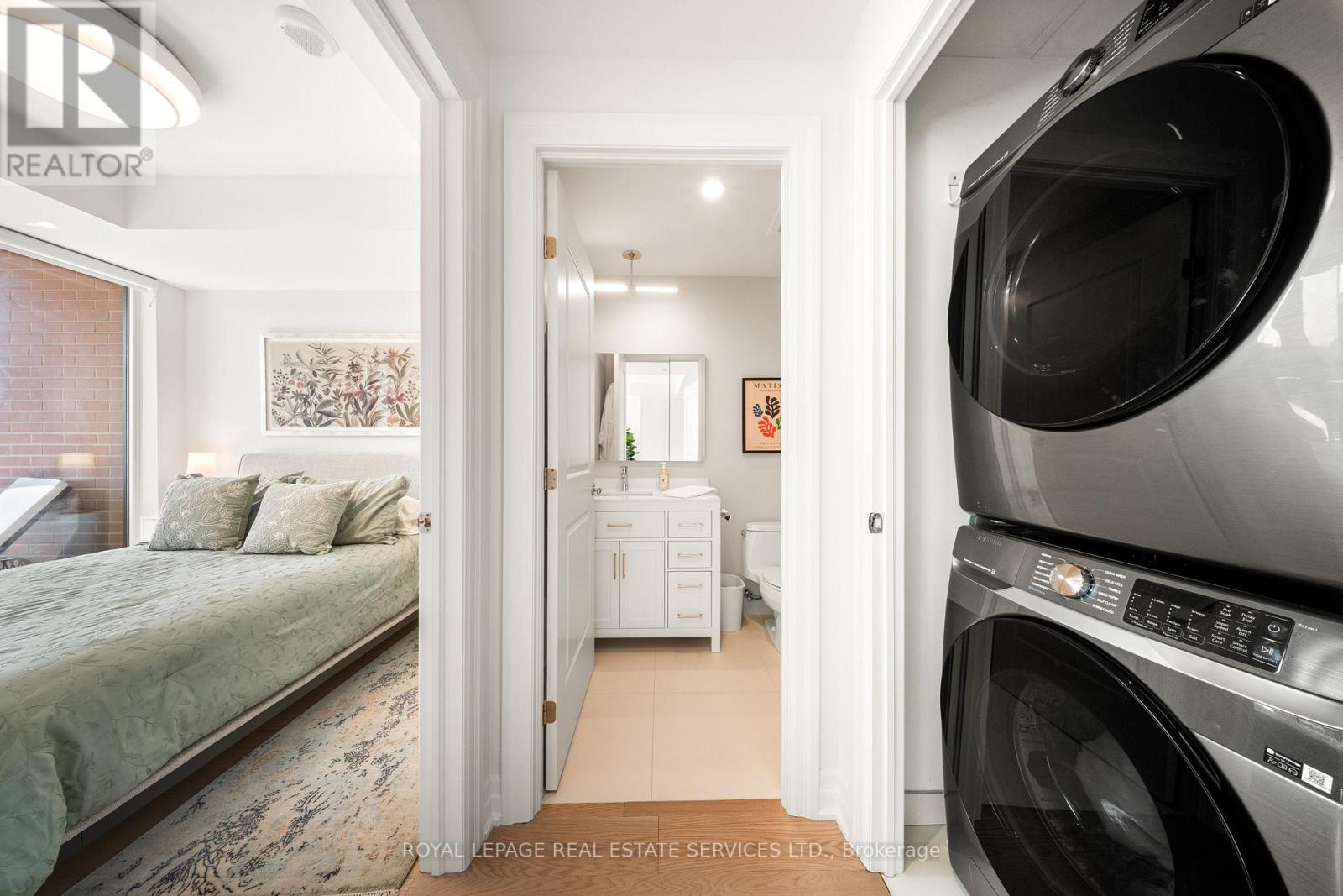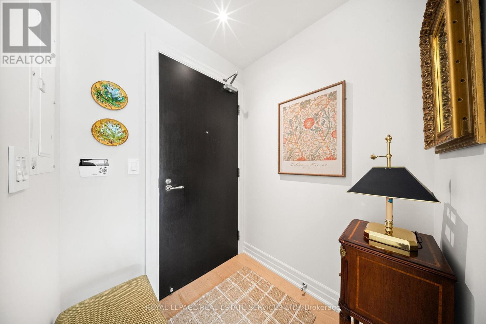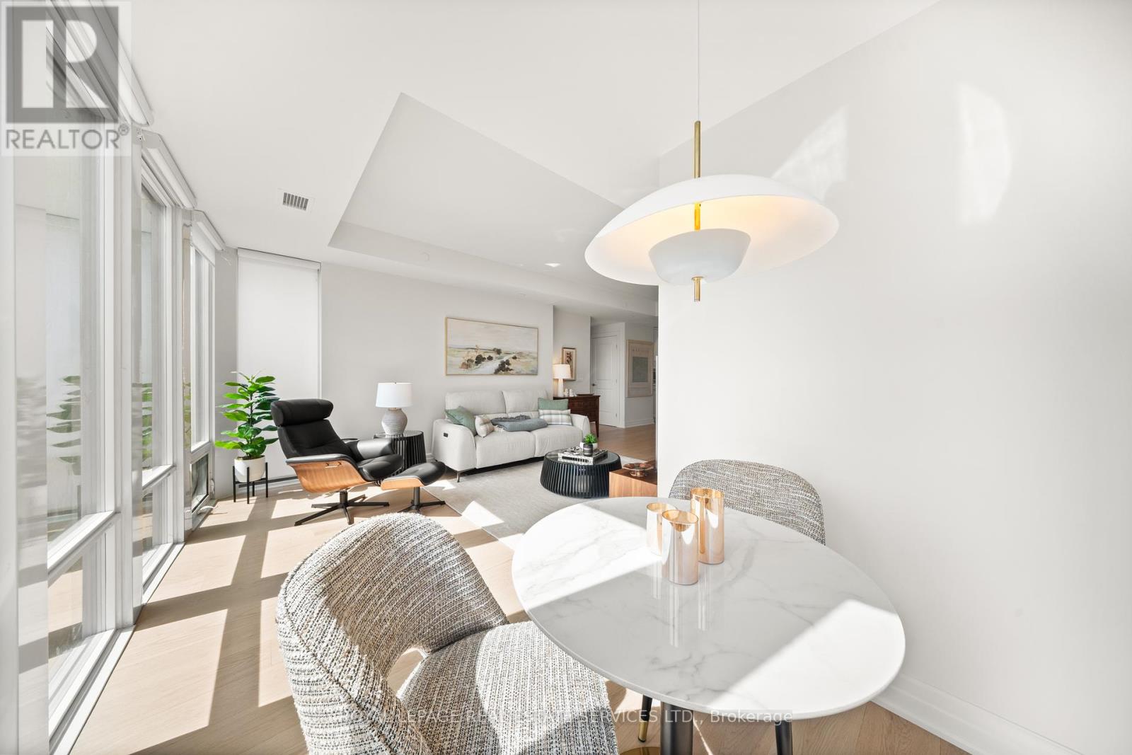 Elegant 1 bedroom, 1 bathroom suite at the prestigious Riverhouse Condominium at the Old Mill, featuring floor to ceiling windows that invite an abundance of natural light. The interior showcases wide plank engineered white oak flooring, a gorgeous kitchen with quartz countertops and island, herringbone tile backsplash, and contemporary track lighting. The bathroom is finished with a sleek new vanity, glass-enclosed shower, tile flooring, and upgraded lighting. Additional enhancements include thoughtfully selected new lighting fixtures throughout and parquet style wooden floor on private balcony. Located just steps from the Old Mill Subway Station and Humber River, this building offers 24-hour concierge service, an indoor pool, hot tub, and party room. Enjoy a tranquil setting within walking distance to parks, the TTC, and the shops and restaurants of Bloor Street West. extras all installed in last year *** Proverco engineered hardwood wide plank floor, parquet flooring on patio. Vanity in bathroom and glass for shower, bathroom floor, recessed medicine cabinet in bathroom, lighting and faucet in bathroom. herringbone tile backsplash in kitchen and quartz counter / island, sink and faucet in kitchen, rrack lighting in kitchen. All lighting recently replaced. Brushed nickel door handles. Custom built in closet (id:4555)