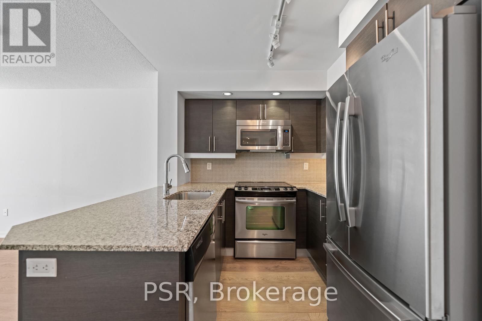 Welcome to Liberty Village Living! Step into this bright and modern 1 bedroom + den, 1 bathroom condo located in one of Toronto's most vibrant neighbourhood Liberty Village. This thoughtfully designed unit offers a functional layout with wide plank flooring, a modern kitchen with granite countertops & stainless steel appliances, and a spacious living area that walks out to your private balcony perfect for your morning coffee or evening unwind. The den provides a versatile space ideal for a home office, reading nook, or guest area, while the primary bedroom features large windows and ample closet space. The unit is filled with natural light and boasts contemporary finishes throughout. Located in a well-managed building with top-tier amenities including a gym, rooftop party room with outdoor terrace and BBQs, indoor swimming pool, movie theatre room, golf simulator, bowling alley, games room, guest suites, 24-hour concierge, and more. Enjoy being just steps to restaurants, bars, shops, Metro grocery, banks, fitness studios, and TTC access. You're also just a short walk to King West, Exhibition Place, the lakefront, and several parks including Liberty Village Park and Trillium Park. Whether you're a first-time buyer, investor, or young professional, this condo offers a stylish and convenient urban lifestyle in one of Toronto's most dynamic communities. (id:4555)