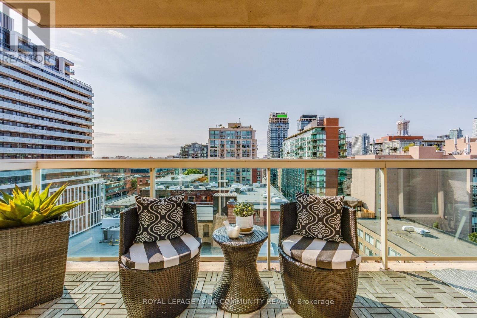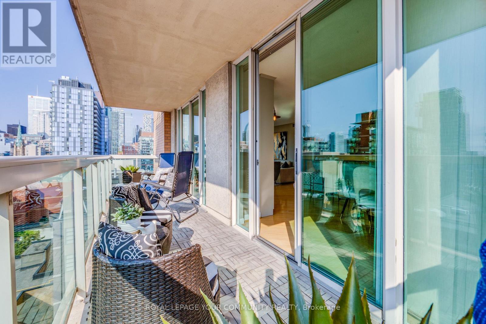 Fantastic opportunity for those looking to upsize or downsize from a larger home. At 1205 square feet this condo is large with very good storage, 2 bedrooms and a den that has been closed in for a small 3rd bedroom/nursery/office with the same flooring underneath so zero damage to remove it. For the foodie: Kitchen is upgraded including electrical to support induction cooking, hardwood flooring, cushy carpet in the large primary with a Juliette balcony, built ins, walk in closet and additional closet and a large ensuite bath with a 6 foot soaking tub and an oversize walk in shower and a vanity that could support 2 sinks. Second bedroom comes with a built in murphy bed and closet that can stay or be removed, buyers choice ! Located in the St. Lawrence Market 'hood everything is within a quick walk; the market for the very best fresh produce, Distillery district, King Street design corridor, shops, resto;s, patio's, 2 grocery stores, LCBO, theatres (live and film), 2 large parks for your fur babies and live one's, too ! TTC at door and a 10 minute walk to the Financial core. Building offers a ton of amenities; 2 level professional grade gym with changerooms, hot tub and sauna, open 24/7 and includes a half court. Main level party room/lounge, 24 hour concierge/security, onsite management, 2 conference rooms with WiFi, Billiards room, library, Penthouse party room with a catering kitchen and also a media room for watch parties with a cozy fireplace. Rooftop is over the top spanning 25K square feet with 8 BBq's, gazebo, firepits, bar area, restrooms, outdoor shower and hot tub, loungers for tanning, tables and chair for al fresco dining, picnic tables and incredible city view. Def worth taking a look at this condo ! BONUS: 2 car tandem secure underground parking with EV Charger. (id:4555)
