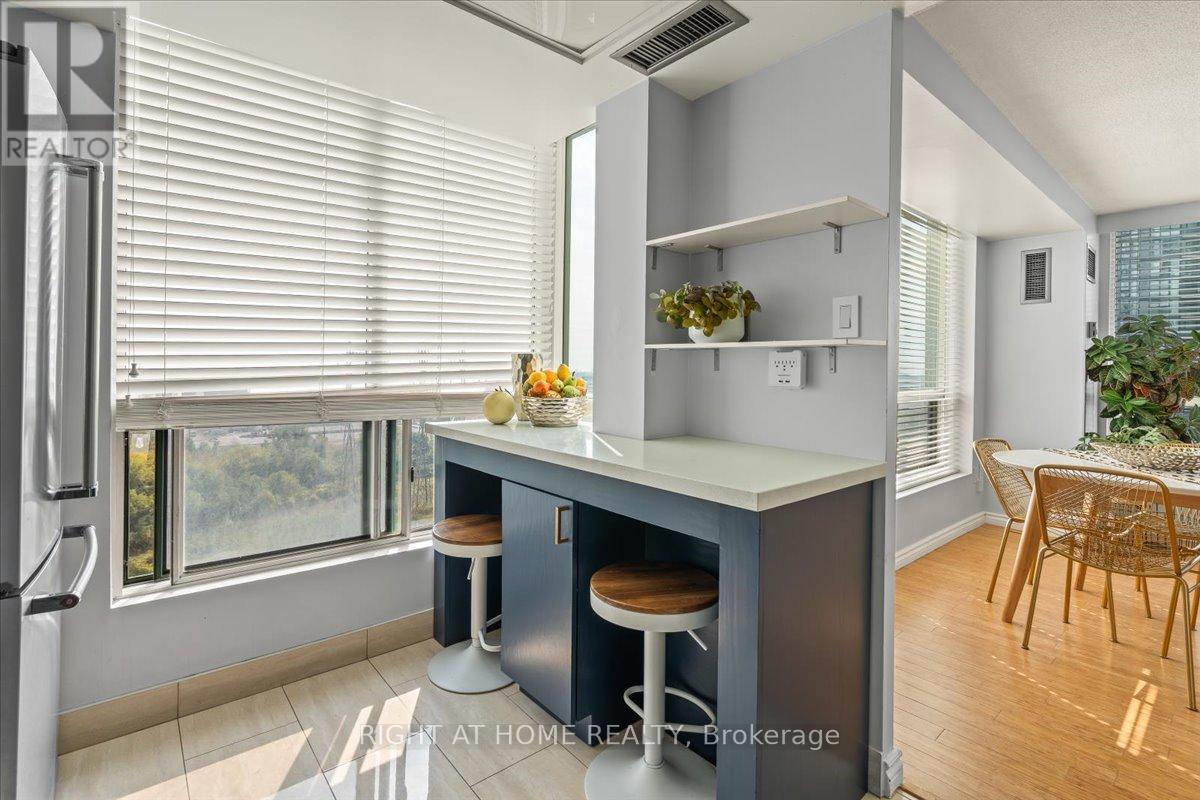 Welcome to Kings Gate at 101 Subway Crescent, a rarely offered, spacious 2-bedroom, 2-bathroom corner condo with almost 1000 sq. ft. of comfortable living space. This bright unit features a large living and dining area with plenty of natural light and a galley kitchen with a window. Both bedrooms are very generous in size, you can fit a king-size bed in either one of them. The primary bedroom has a walk-in closet and a 4-piece ensuite with a soaker tub and a shower. This unit offers multiple closets for extra storage space. Maintenance fees include all of the utilities, covering heat, hydro, water and central A/C. Enjoy excellent building amenities: concierge, 24 hour security, indoor pool, gym, sauna, party room, BBQ area, car wash, visitor parking, and more. Amazing location, right across from Kipling Subway Station and GO Transit, with quick access to HWY 427, QEW, Sherway Gardens, shopping, dining, and Pearson Airport. Everything you need is at your doorstep. Move-in ready and waiting for you! (id:4555)