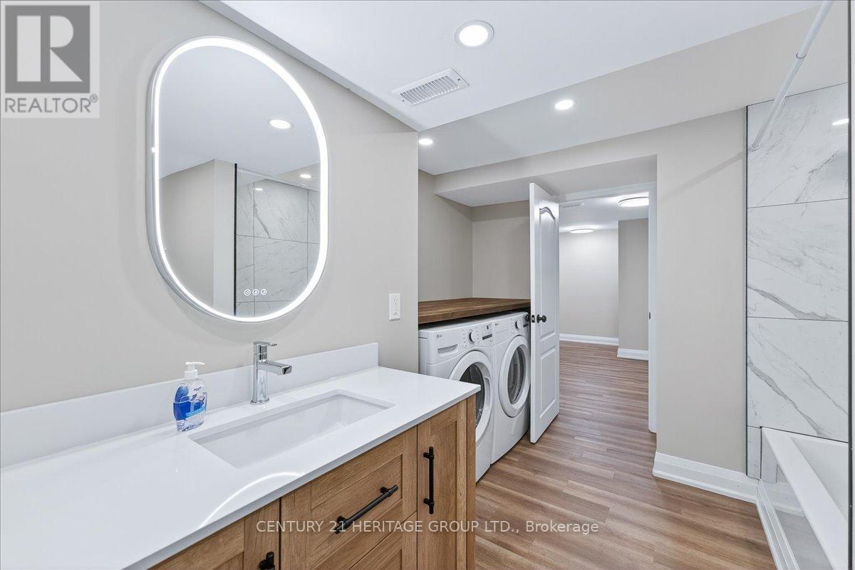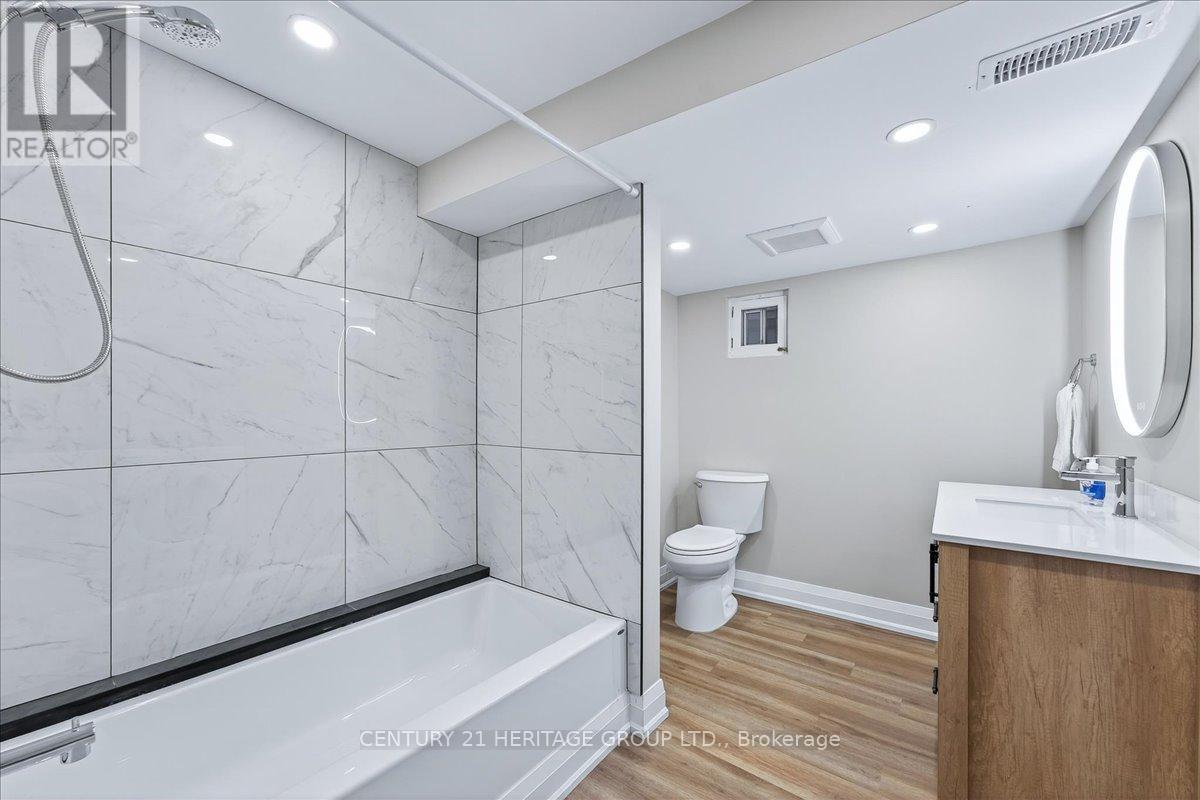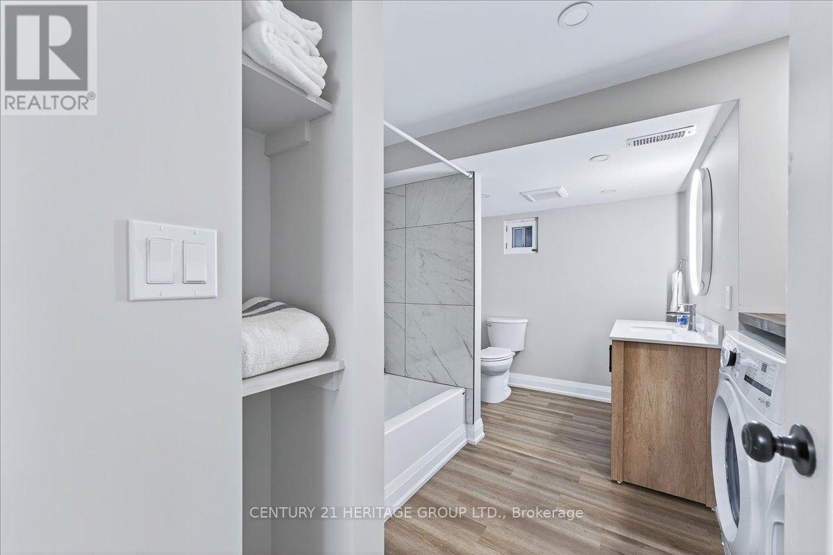 Welcome to this beautifully designed 2-bedroom, 1-bathroom basement home with stand-out features rarely found in lower-level homes. From the two dedicated parking spots, including covered garage parking, to the secluded rear patio and yard, this unit offers both convenience and comfort in equal measure.Inside, the thoughtful layout is packed with smart storage and functionality.The large eat-in kitchen is perfect for cooking and dining, featuring brand new all-white cabinetry, all new appliances, quartz countertops, and plenty of space to spread out.The generously sized great room is warm and welcoming, with large, sun-filled windows that make the space feel bright and airy.The oversized 4-piece bathroom includes a combined laundry area with a practical countertop above the full-size washer and dryer, ideal for sorting and folding, plus a designated space underneath to tuck away hampers and maintain a clean, streamlined look.Located close to all amenities, with an excellent walk score and easy access to public transit, this home offers the best of both convenience and connectivity.Perfect for those who appreciate extra space, modern finishes, and a thoughtfully designed layout. This fully renovated basement unit has never been lived in, a rare opportunity to enjoy a brand-new, private, and comfortable living space. (id:4555)