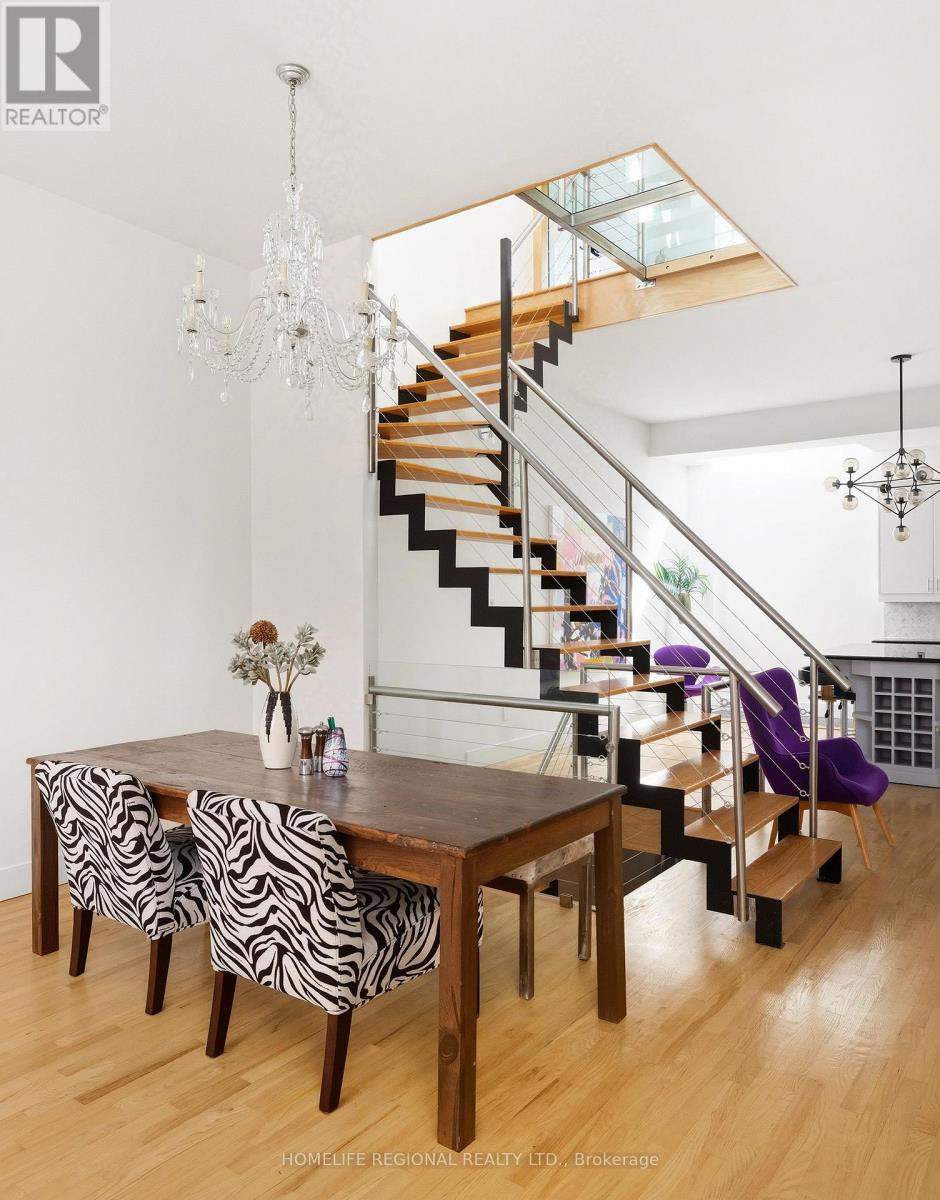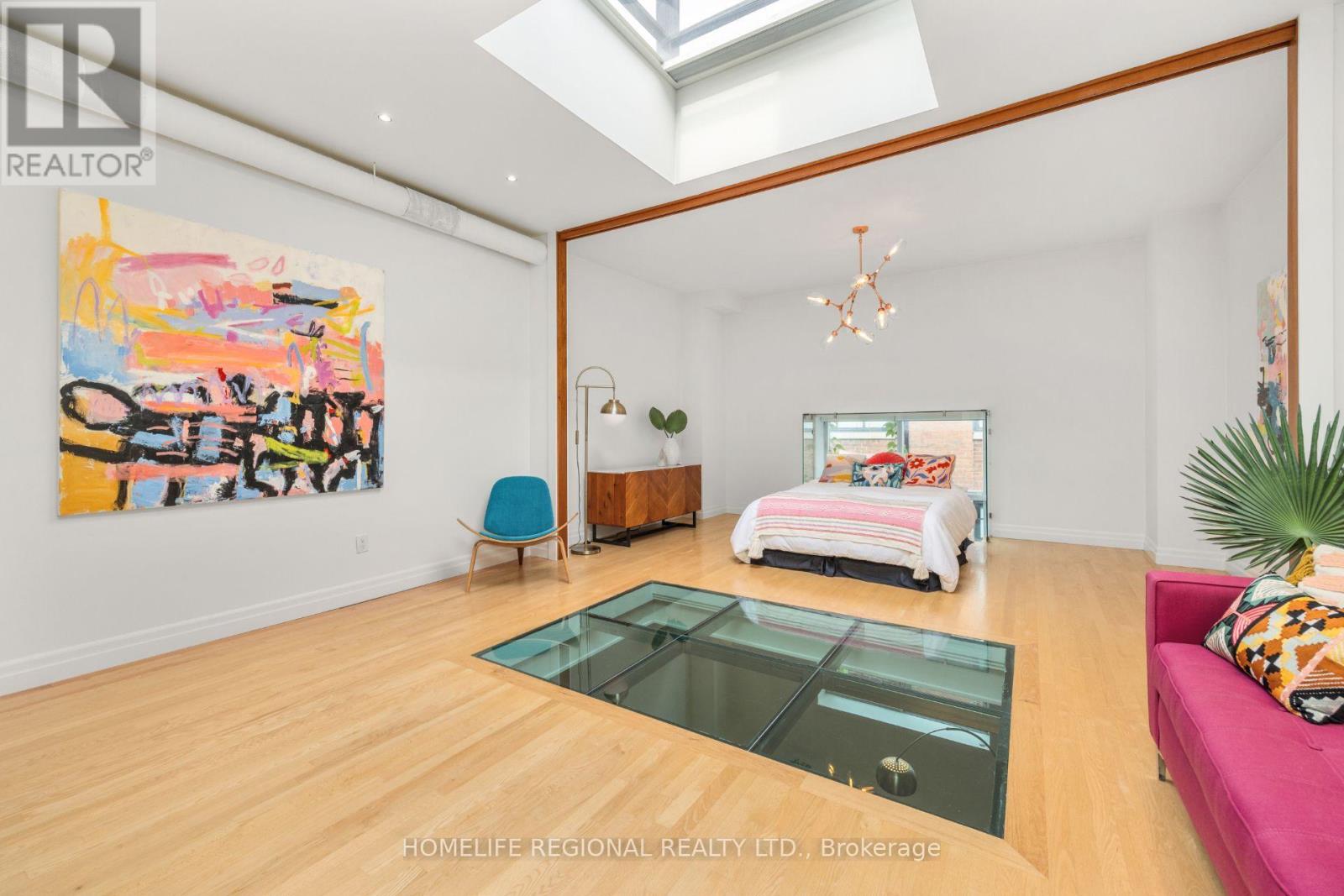 Welcome to Toronto's Multi-Level Super Loft in Trinity Bellwoods! Experience a rare fusion of history, style, and modern urban living in one of Toronto's most sought-after neighbourhoods. Tucked inside the exclusive Claremont Lofts a striking 1930's banquet hall transformed into just eight boutique residencesthis is no ordinary loft. Unit #6 is the crown jewel of the building. Offering the largest foot print of all the residences, this spectacular multi-level loft pairs architectural drama with thoughtful design. Step inside to soaring ceilings, massive skylights, and an open-concept layout bathed in natural light. A glass catwalk and unique floor panels create a dazzling play of sunlight across levels, setting this loft apart as a true architectural showpiece. Highlights include, a bright, airy main floor perfect for everyday living and entertaining, 2 + 1 bedrooms (ideal for a guest suite, office, or creative studio) A luxurious primary retreat with ensuite bath and in-unit laundry, modern kitchen with stainless steel appliances, gorgeous hardwood floors, private garage parking, private rooftop terrace spanning nearly 700 sq. ft. With sweeping skyline views and total privacy, its your own urban sanctuary whether youre hosting summer soirées or enjoying quiet evenings under the stars. All of this is just steps from Queen West and the vibrant heart of Trinity Bellwoods, where iconic parks, eclectic boutiques, buzzing cafés, and some of the citys best dining and nightlife are at your doorstep. Don't miss this rare opportunity to own a one-of-a-kind loft in a location that truly has it all. (id:4555)