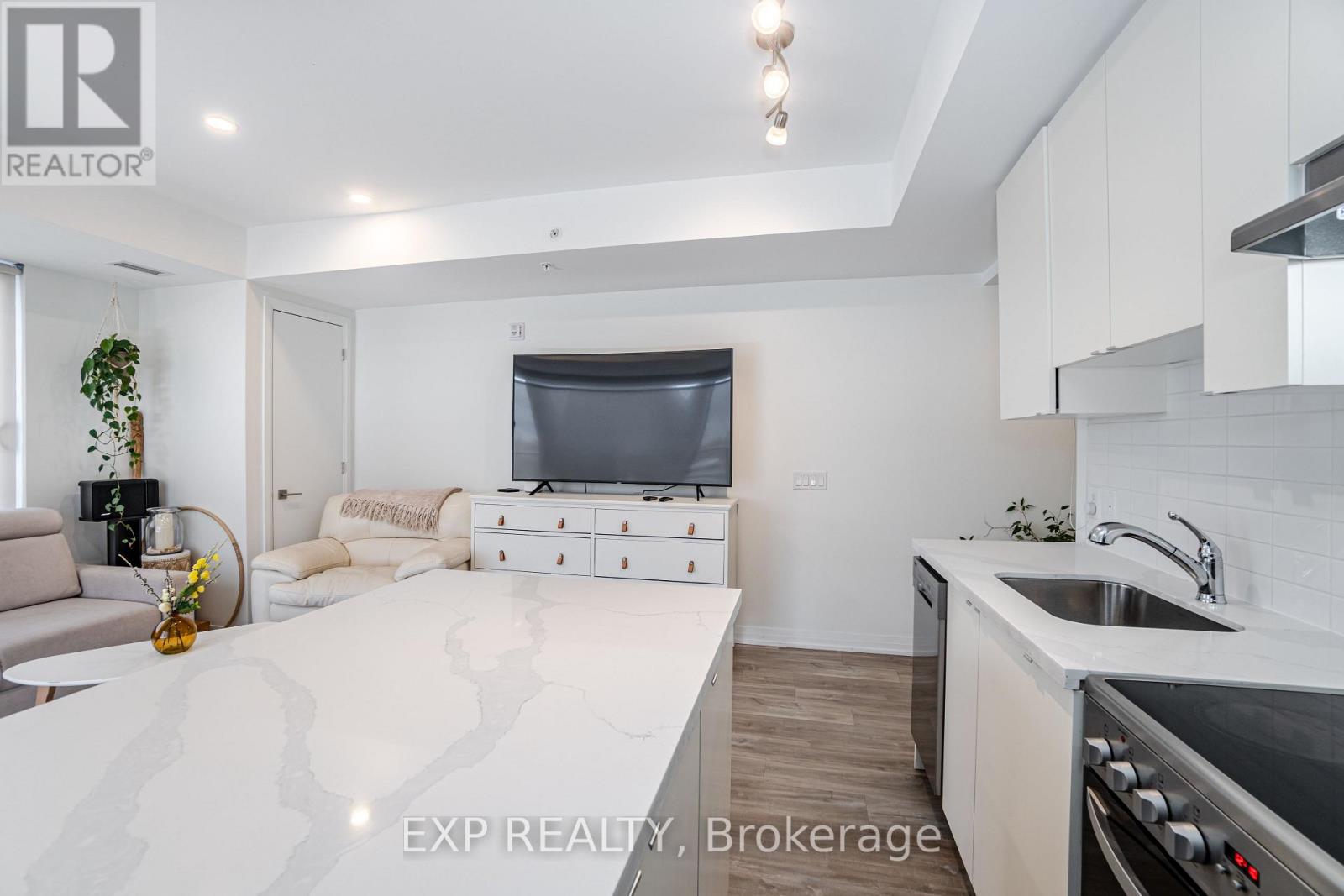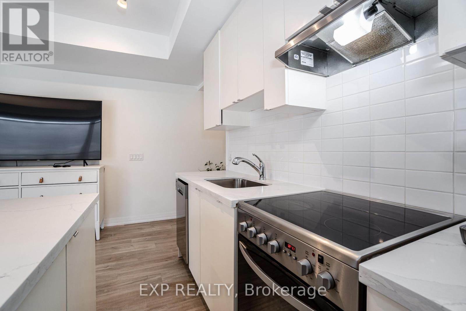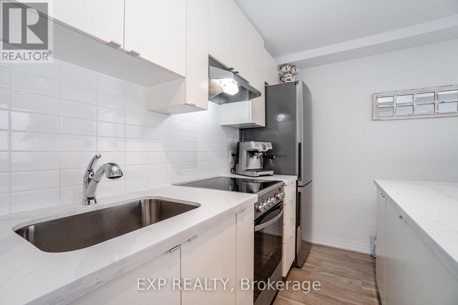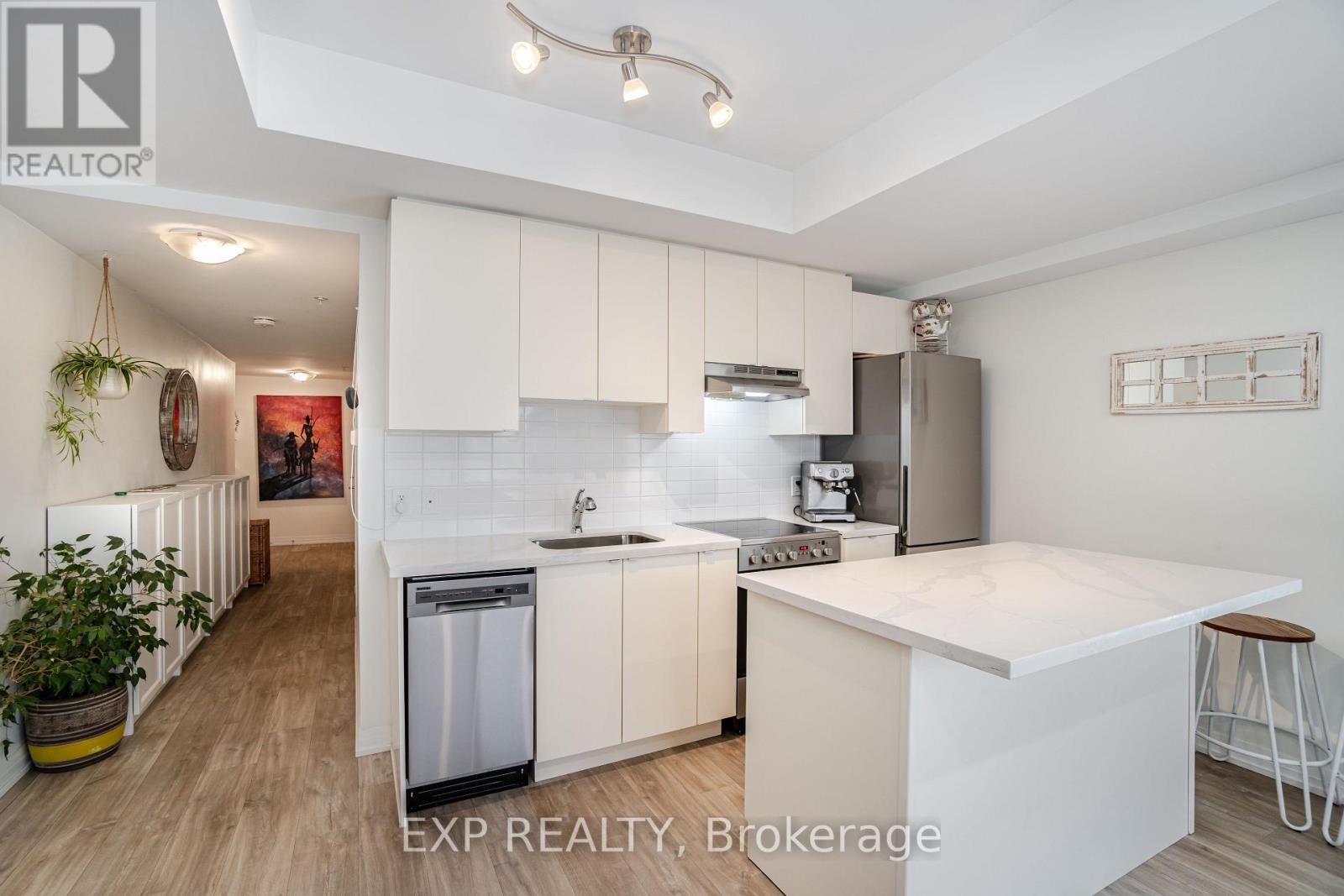 Welcome to 408 Browns Line, an exceptional one-bedroom, one-bath residence in a boutique building that offers contemporary elegance in the heart of South Etobicoke. With approximately 701 square feet of thoughtfully designed living space, this one-year-old suite is the perfect blend of style, comfort, and convenience.From the moment you enter, the home impresses with its unique, oversized entry hallway a rare feature in condo living offering abundant storage and a sense of openness. The living and dining areas are adorned with sleek laminate flooring, flowing seamlessly to a modern kitchen with stainless steel appliances, quartz countertops, breakfast bar, and a versatile movable island. A designer backsplash adds a touch of sophistication, while the upgraded bathroom continues the quartz finishes for a consistent, elevated feel.Step onto your private balcony and enjoy beautiful views of the city, including the iconic CN Tower. Perfect for morning coffee or evening relaxation, this outdoor space enhances the lifestyle appeal of the home.Residents will appreciate the unbeatable location, just steps to TTC, GO Station, community centers, and the vibrant amenities of South Etobicoke. Excellent schools, parks, and recreation are within walking distance, including Sir Adam Beck Park and Alderwood Centre. Whether commuting downtown or enjoying local conveniences, this property balances urban accessibility with neighborhood charm.Ideal for professionals, downsizers, or investors, this boutique suite delivers modern finishes, panoramic views, and a strategic location in one of Torontos most connected neighborhoods. (id:4555)