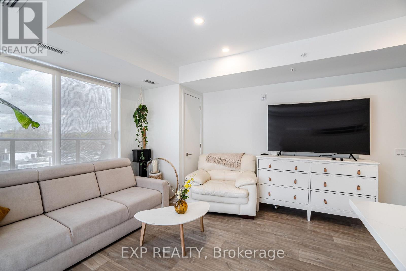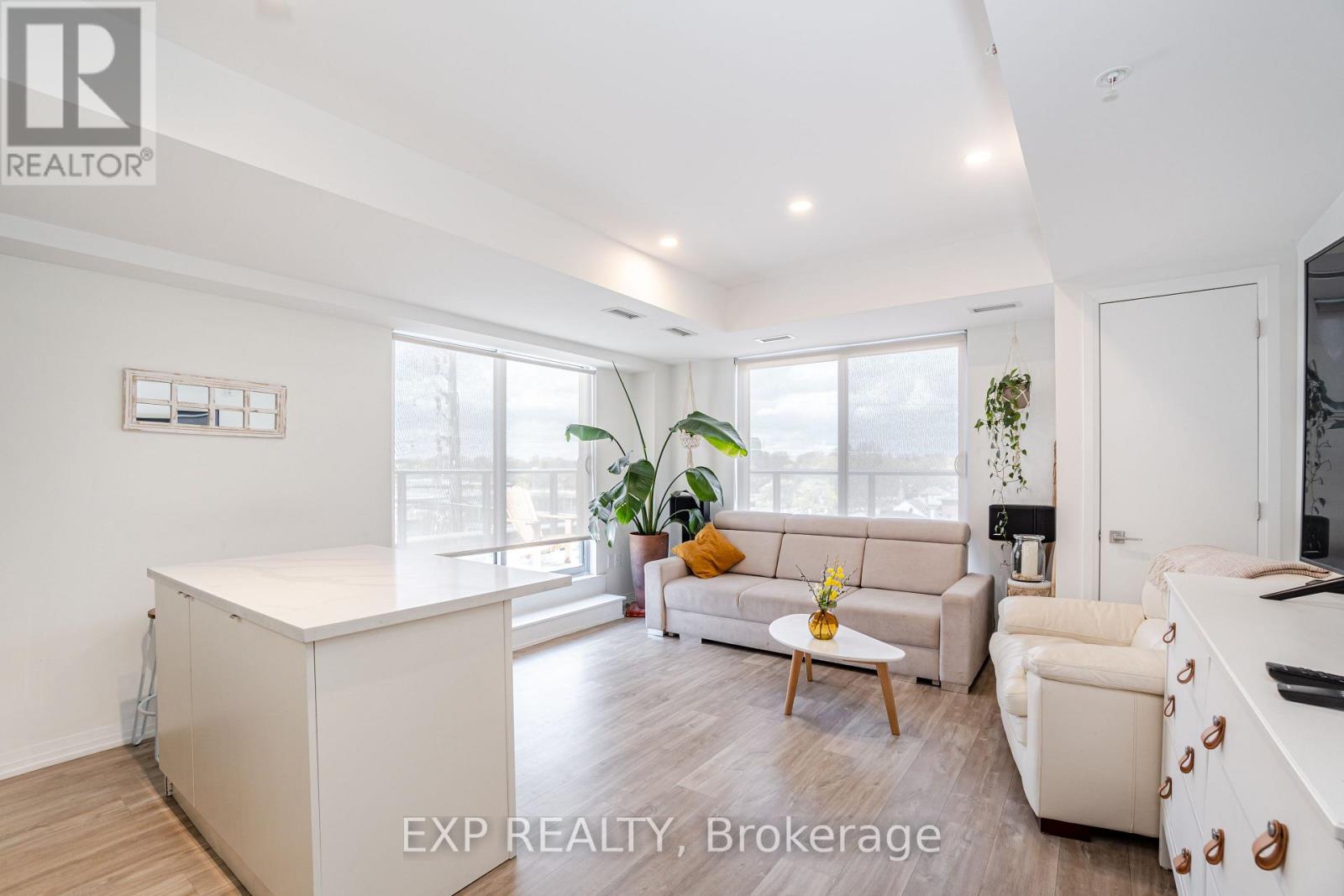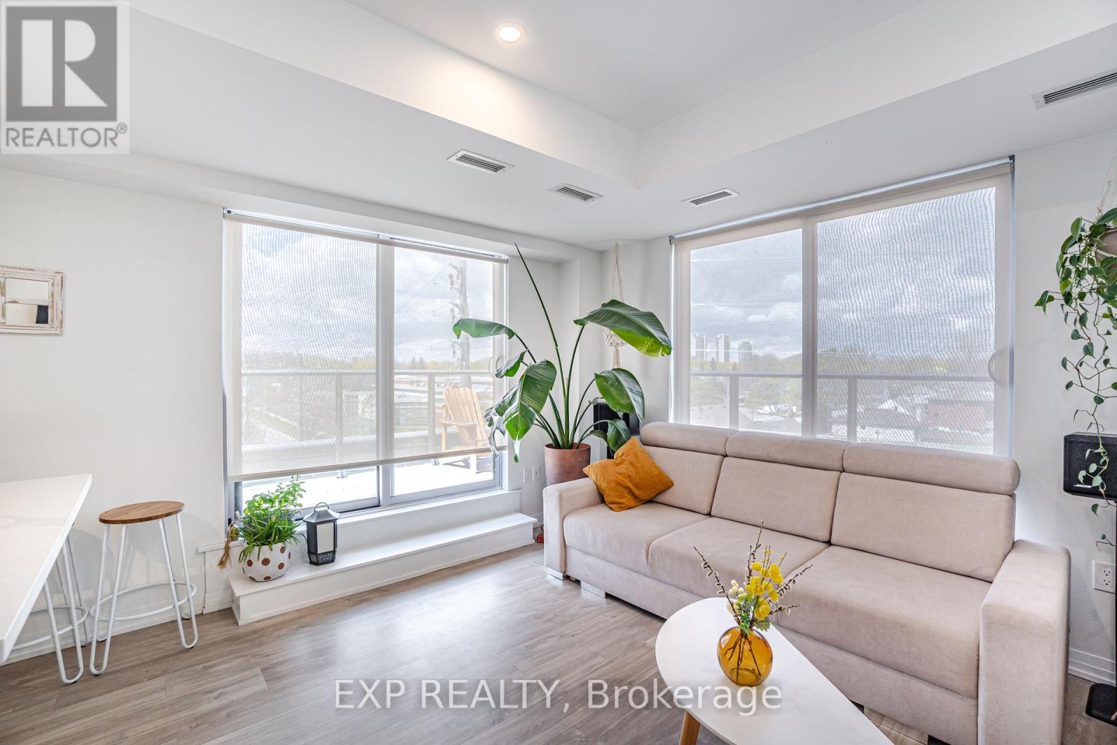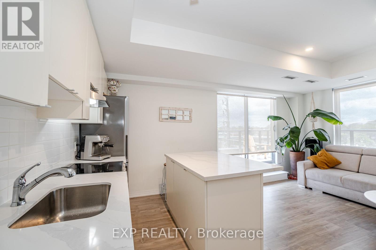 Welcome to 408 Browns Line, an exceptional one-bedroom, one-bath residence in a boutique building that offers contemporary elegance in the heart of South Etobicoke. With approximately 701 square feet of thoughtfully designed living space, this one-year-old suite is the perfect blend of style, comfort, and convenience.From the moment you enter, the home impresses with its unique, oversized entry hallway a rare feature in condo living offering abundant storage and a sense of openness. The living and dining areas are adorned with sleek laminate flooring, flowing seamlessly to a modern kitchen with stainless steel appliances, quartz countertops, breakfast bar, and a versatile movable island. A designer backsplash adds a touch of sophistication, while the upgraded bathroom continues the quartz finishes for a consistent, elevated feel.Step onto your private balcony and enjoy beautiful views of the city, including the iconic CN Tower. Perfect for morning coffee or evening relaxation, this outdoor space enhances the lifestyle appeal of the home.Residents will appreciate the unbeatable location, just steps to TTC, GO Station, community centers, and the vibrant amenities of South Etobicoke. Excellent schools, parks, and recreation are within walking distance, including Sir Adam Beck Park and Alderwood Centre. Whether commuting downtown or enjoying local conveniences, this property balances urban accessibility with neighborhood charm.Ideal for professionals, downsizers, or investors, this boutique suite delivers modern finishes, panoramic views, and a strategic location in one of Torontos most connected neighborhoods. (id:4555)