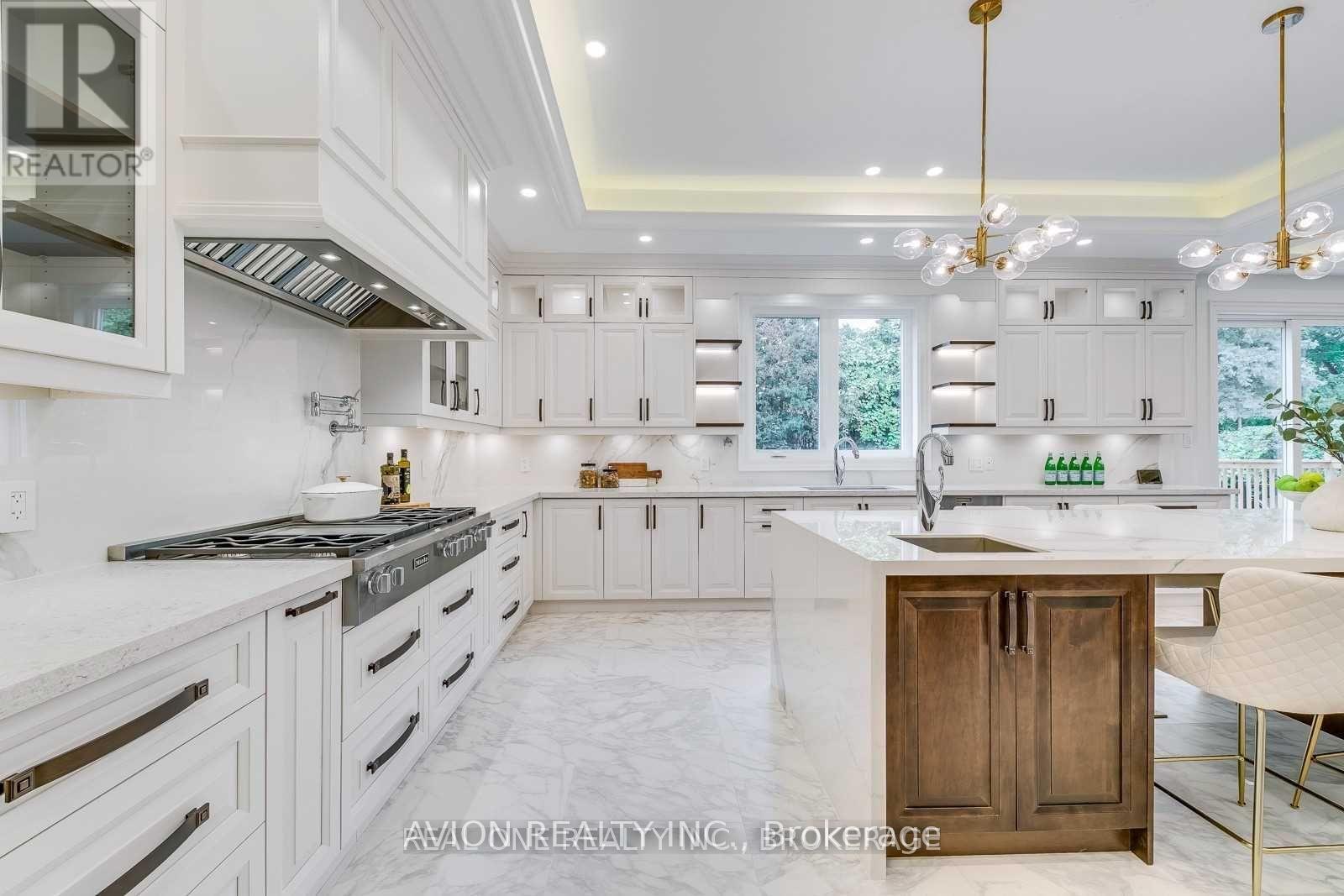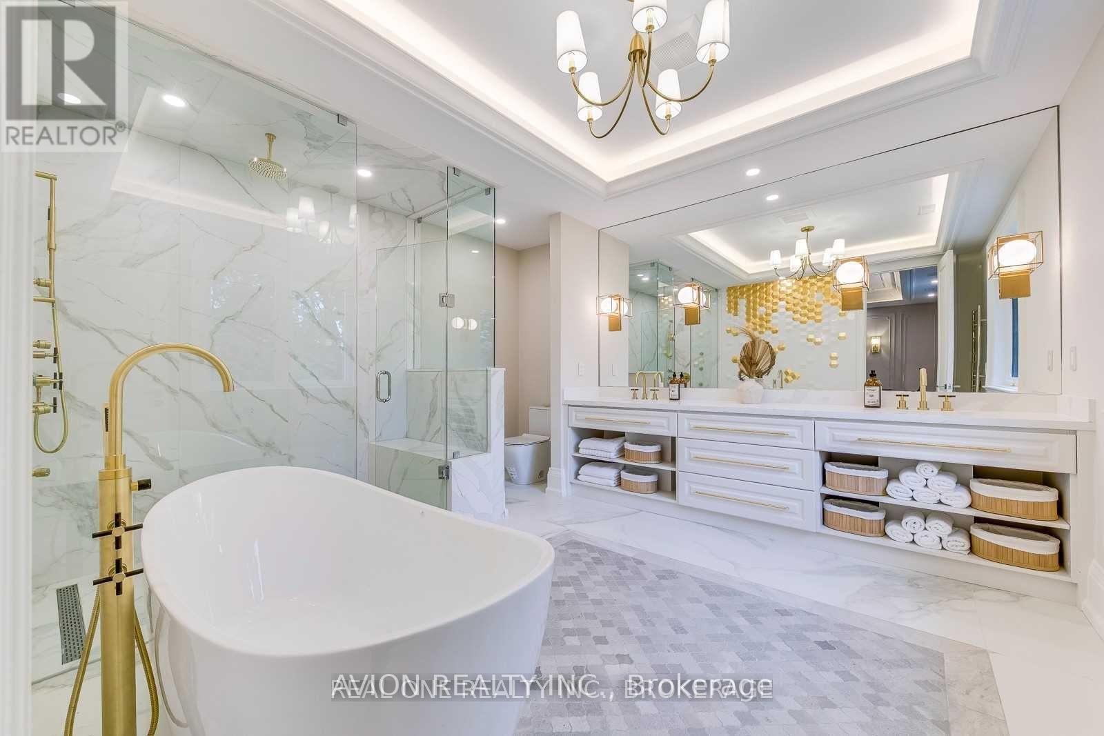 A Masterpiece of Luxury in Prestigious Bayview VillageWith 5+1 bedrooms and 8 spa-inspired baths, this custom-built estate offers over 7,500 sq. ft. of refined elegance on an extraordinary pie-shaped lot, expanding to 80 ft wide. Designed with timeless sophistication and masterful craftsmanship, it represents the pinnacle of modern luxury living.Enter through the grand mahogany solid wood entry to soaring 10-ft ceilings, abundant skylights, and exquisite detailing throughout. A walnut wood library, paneled hallways, and radiant heated floors on all levels highlight the home's unparalleled design.The gourmet chef's kitchen is equipped with premium Miele & Bosch appliances, gas cooktop, upgraded waterline, and seamless integration of style and function. Each bedroom enjoys a private ensuite, while the lavish primary suite defines indulgence.Engineered for ultimate comfort, the home features dual furnaces, ACs, HRVs, and humidifiers. A timeless stone exterior, LED lighting, and generously sized principal rooms complete this extraordinary residence.Set in prestigious Bayview Village, this estate offers unrivalled comfort and sophistication, moments from top-ranked schools, fine amenities, and transit. (id:4555)