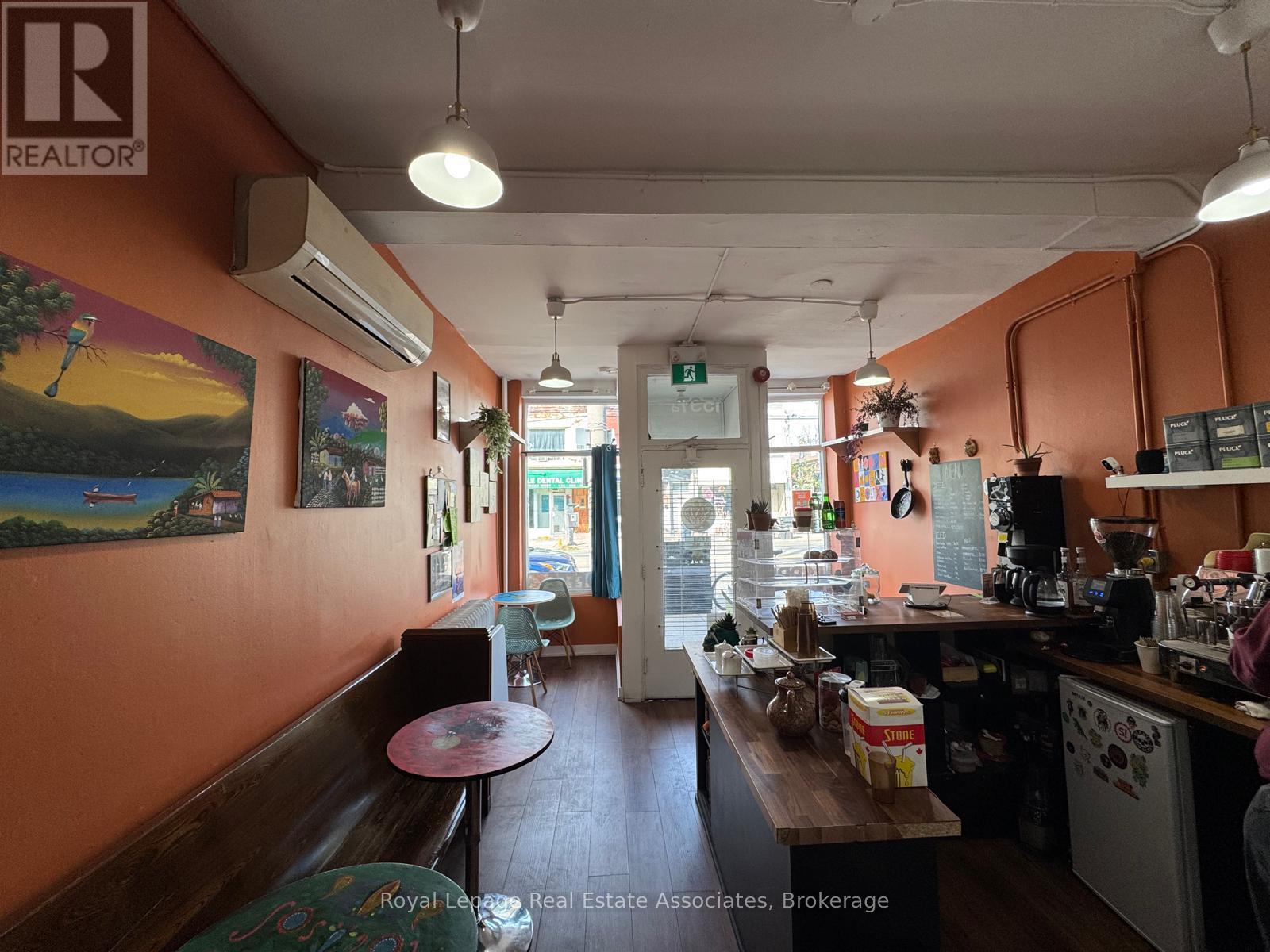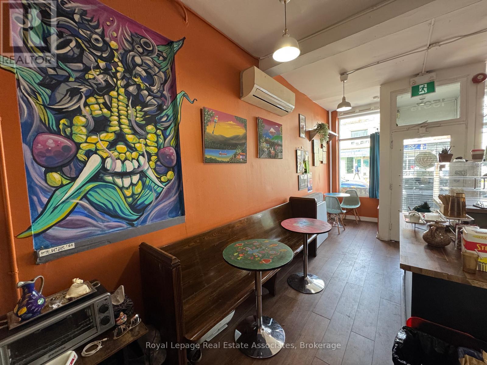 Prime Queen St W location featuring an existing café set-up, an easy turnkey operation with excellent exposure and steady foot traffic; versatile layout allows for a wide range of uses including café, retail, or food service, surrounded by strong residential density, shops, and transit at the doorstep. Flexible space available for pop-up, short-term, or long-term lease opportunities (id:4555)