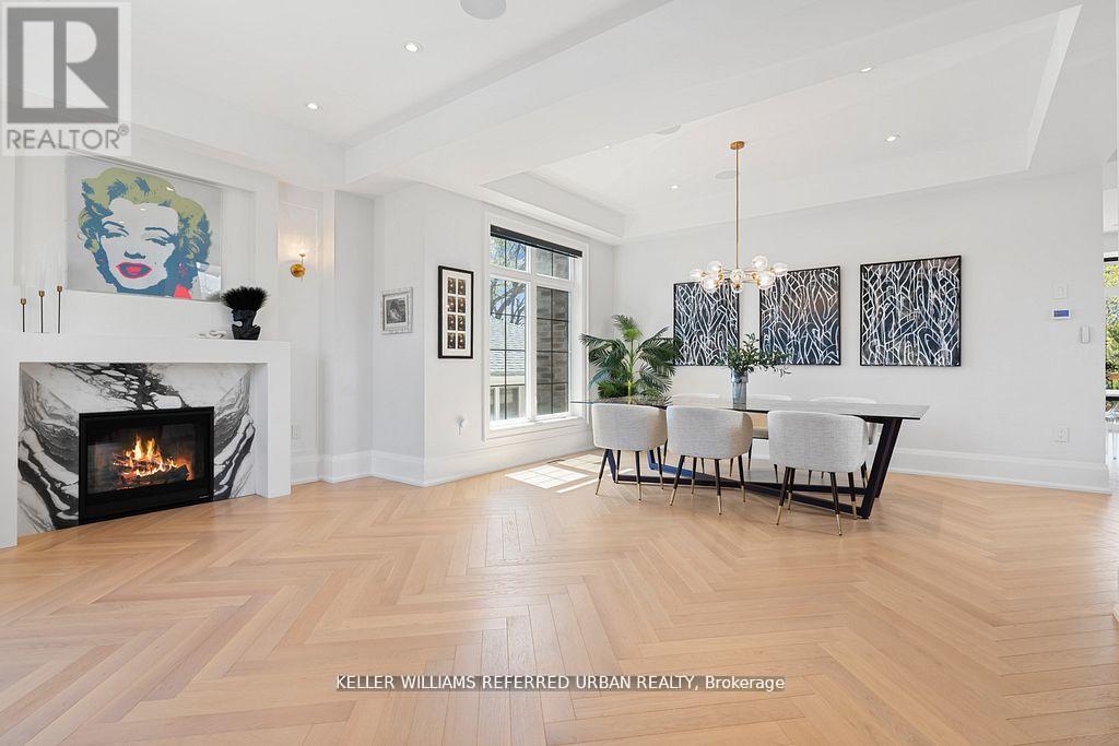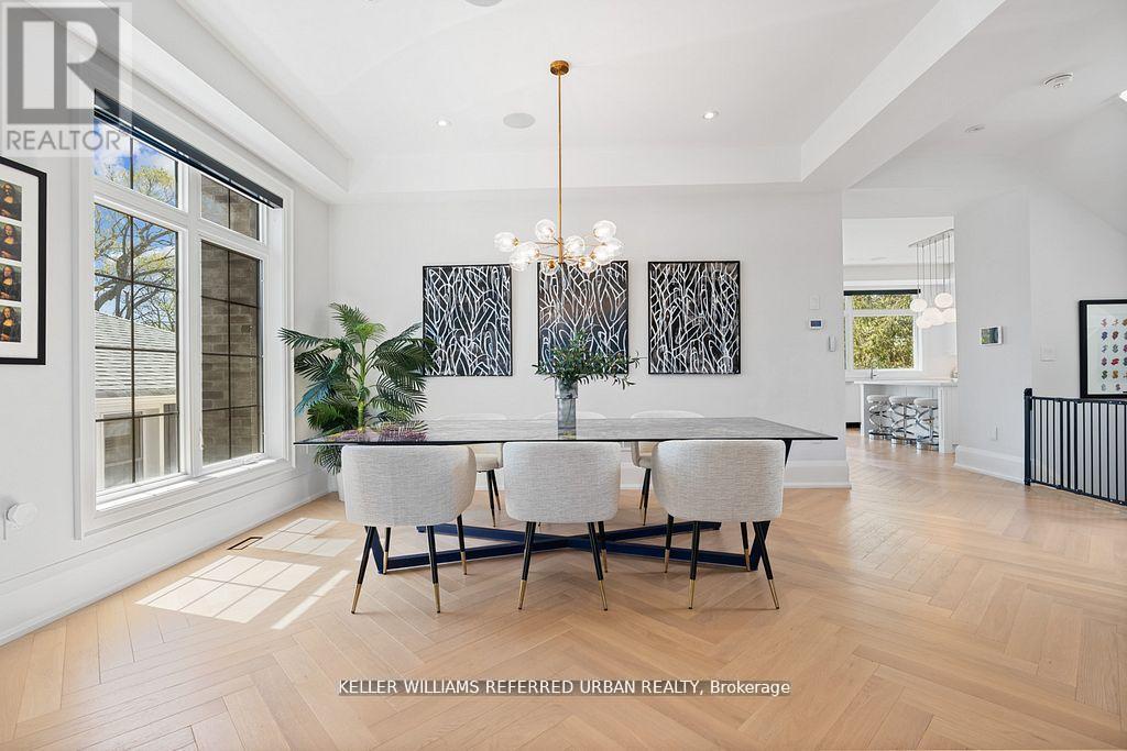 A stunning fusion of form and function, this custom-built residence showcases a design-forward aesthetic with impeccable craftsmanship throughout. Featuring white oak herringbone floors, soaring 10-ft ceilings on the main level, built-in speakers, and full smart home integration.The chefs kitchen is a showpiece outfitted with premium Sub-Zero, Wolf, and Bosch appliances, a massive eat-in island with bar sink and wine fridge, and seamlessly connected to a spacious family room and sunlit breakfast area. Custom millwork and thoughtful finishes elevate every room.The primary retreat offers a private balcony, dream walk-in closet, and spa-inspired ensuite. The 11-ft lower level impresses with an oversized walkout and a fully wired home theatre. Every inch of this home is curated, considered, and crafted to impress (id:4555)