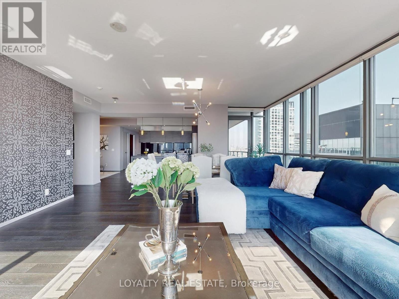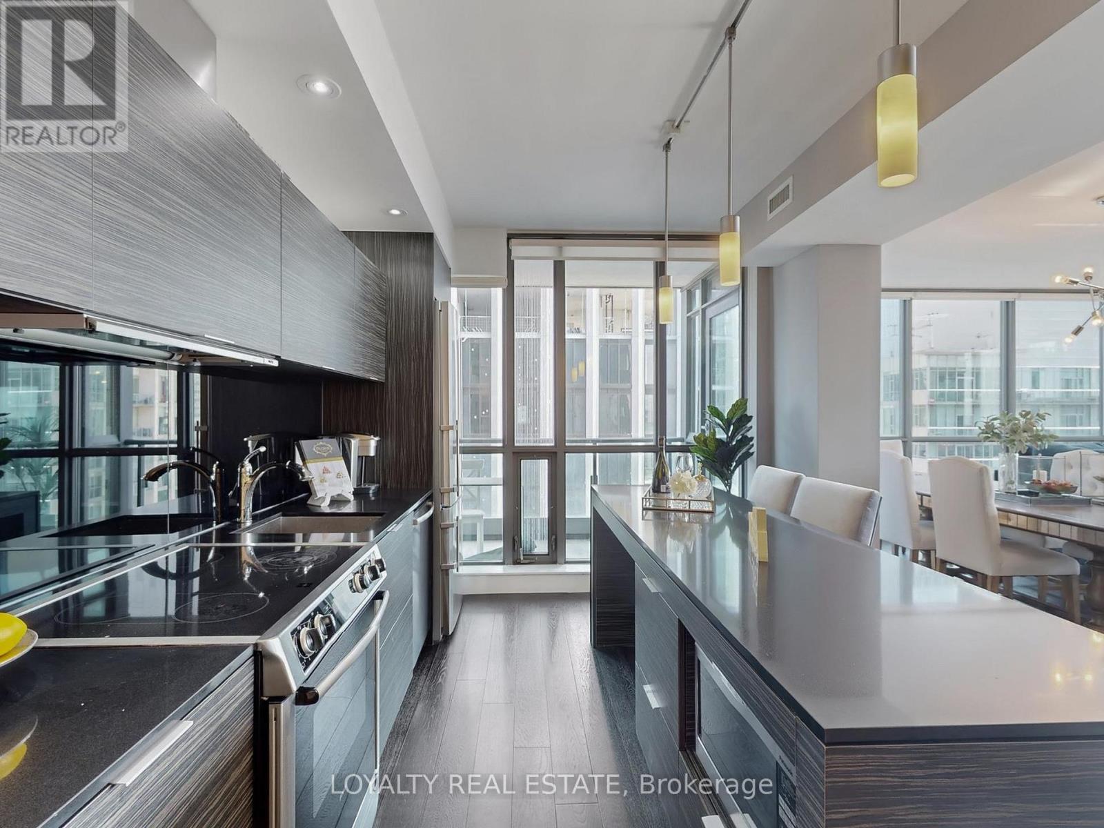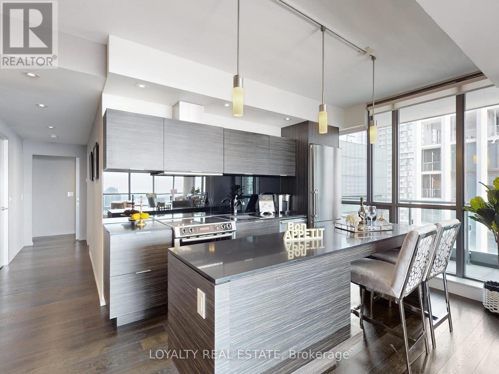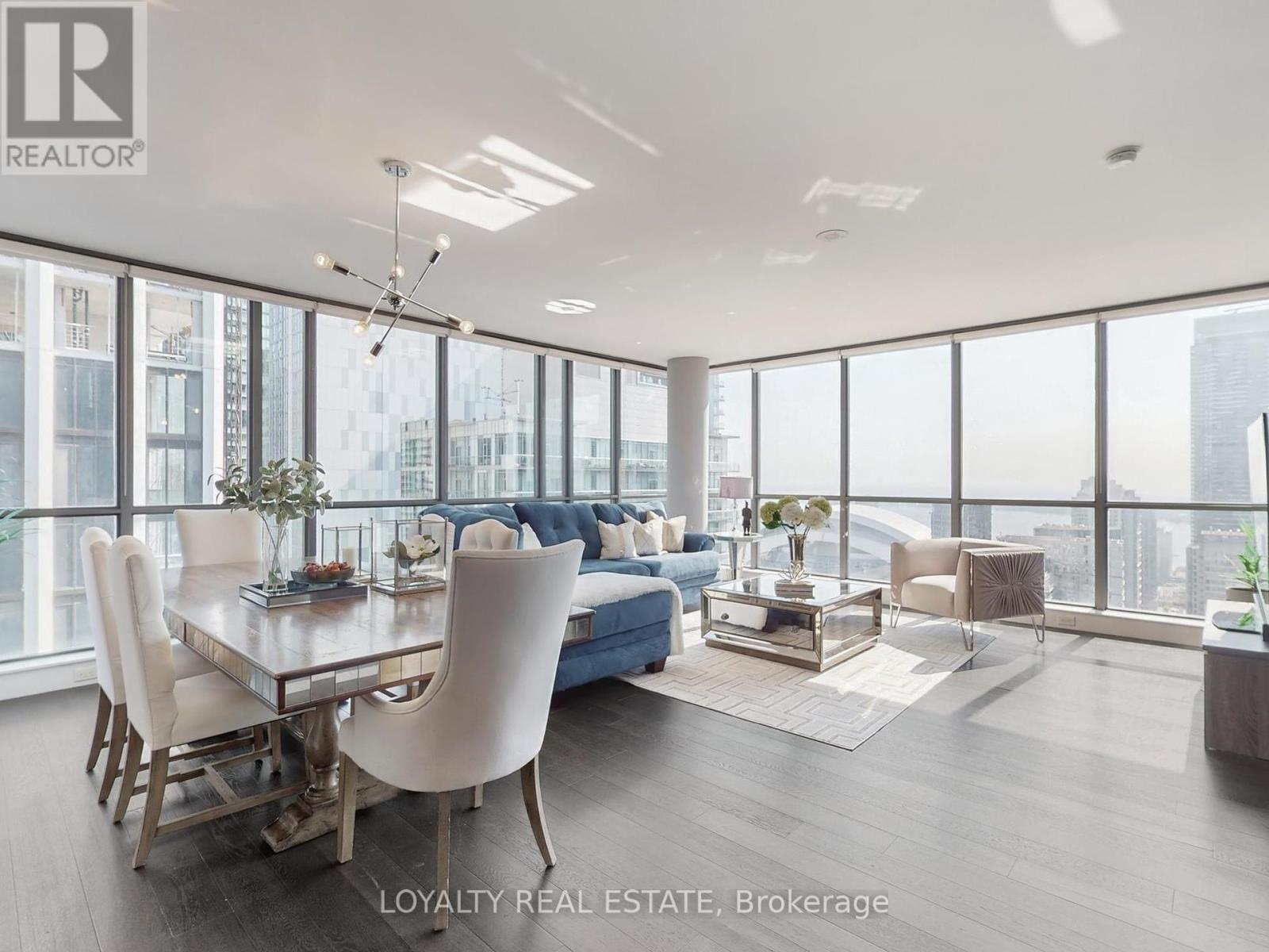 Experience luxury living 1800sq 3-bedroom, 3-bathroom corner suite at King Spadina, a high floor with breathtaking southeast lake and city views. Featuring a functional split-bedroom layout, open balcony, designer-curated classic furniture, and high-end finishes, this residence blends comfort with cinematic elegance. Enjoy resort-style amenities including an infinity pool, gym, theatre, party room, sauna, guest suites, BBQ terrace, and 24-hourconcierge. Located in the vibrant King Spadina district, you are steps from the Financial Core and top dining, with subway, highways, shopping, and the lakefront all nearby, while enjoyingthe peace of a quiet street for relaxed living. This is a rare opportunity to own a luxurious lakeview condo in one of the city's most desirable addresses (id:4555)