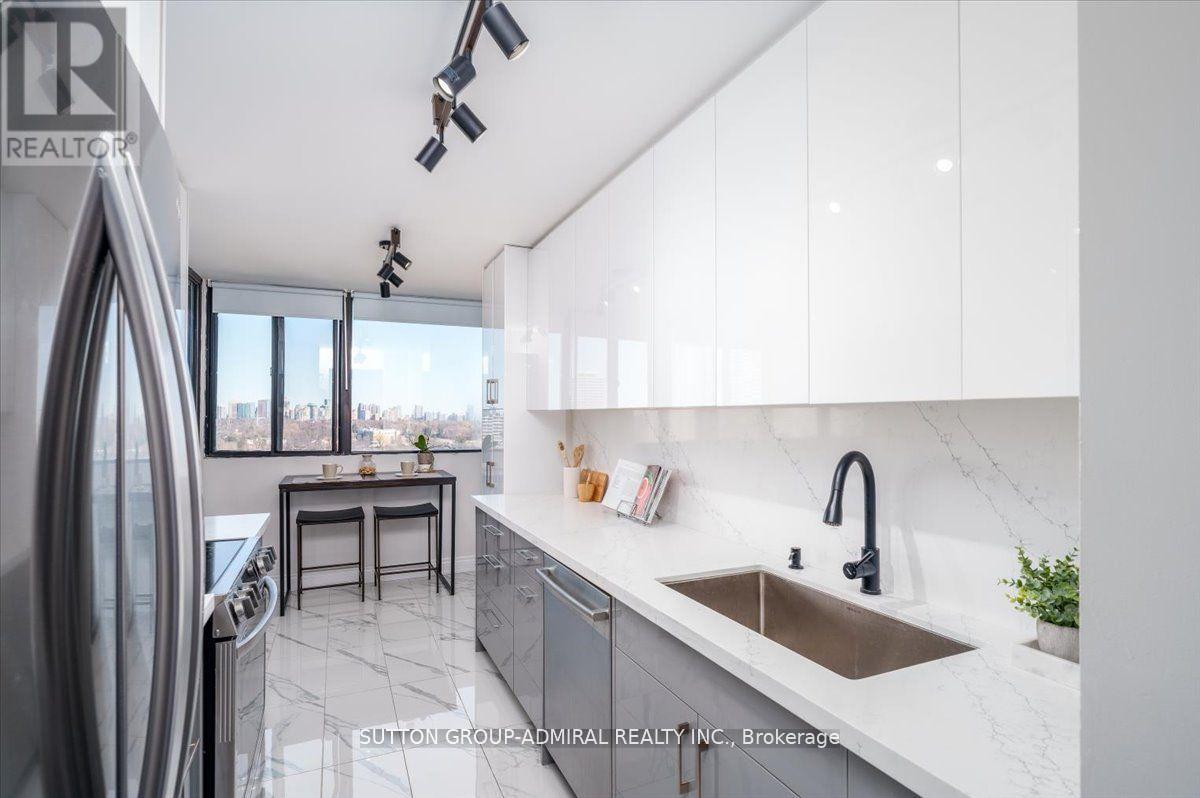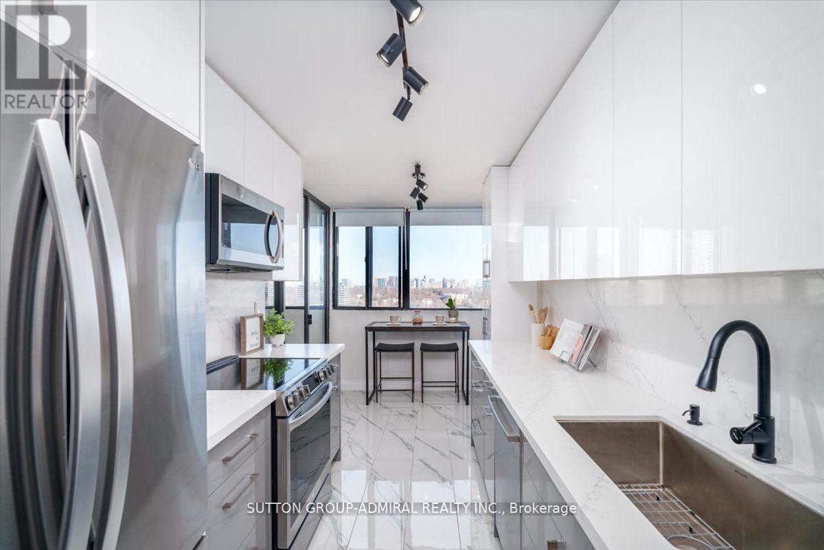 Step into elegance with this exquisite, fully renovated 2-bedroom + den, 2-bathroom condo in the prestigious North York community. Nestled amidst the lush, serene landscapes of G. Ross Lord Park, this meticulously upgraded 1,060 sq. ft. residence offers an unparalleled blend of sophistication and modern comfort. Designed with a seamless open-concept layout, the space is bathed in natural light, accentuating the rich vinyl flooring and carefully curated finishes.The gourmet kitchen is a chef's dream, featuring stunning quartz countertops, and backsplash,and top-of-the-line appliances (only 3 years new). The versatile den serves as the perfect home office, an inviting third bedroom, or a charming playroom. Indulge in the convenience of an en-suite locker, providing ample storage without compromising on style. Every detail has been thoughtfully designed to offer the perfect balance of luxury and functionality. The building offers excellent amenities including a gym, pool, sauna, ping pong and billiards room, with a bus stop to finch station commuting and outdoor activities are effortless plus the highly anticipated new Centennial library set to open in 2025. Combining pace, comfort and convenience this condo is a fantastic place to call home! (id:4555)