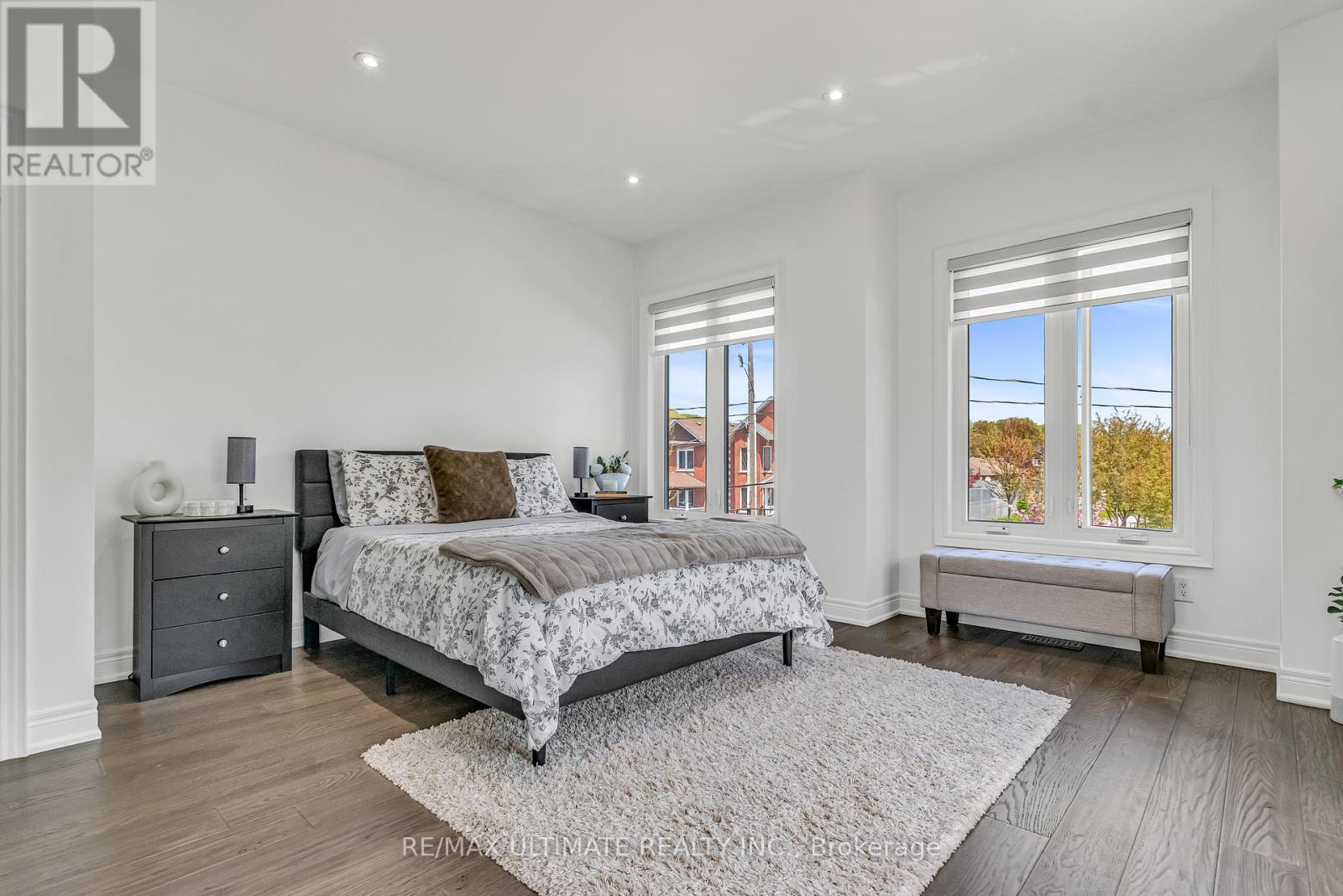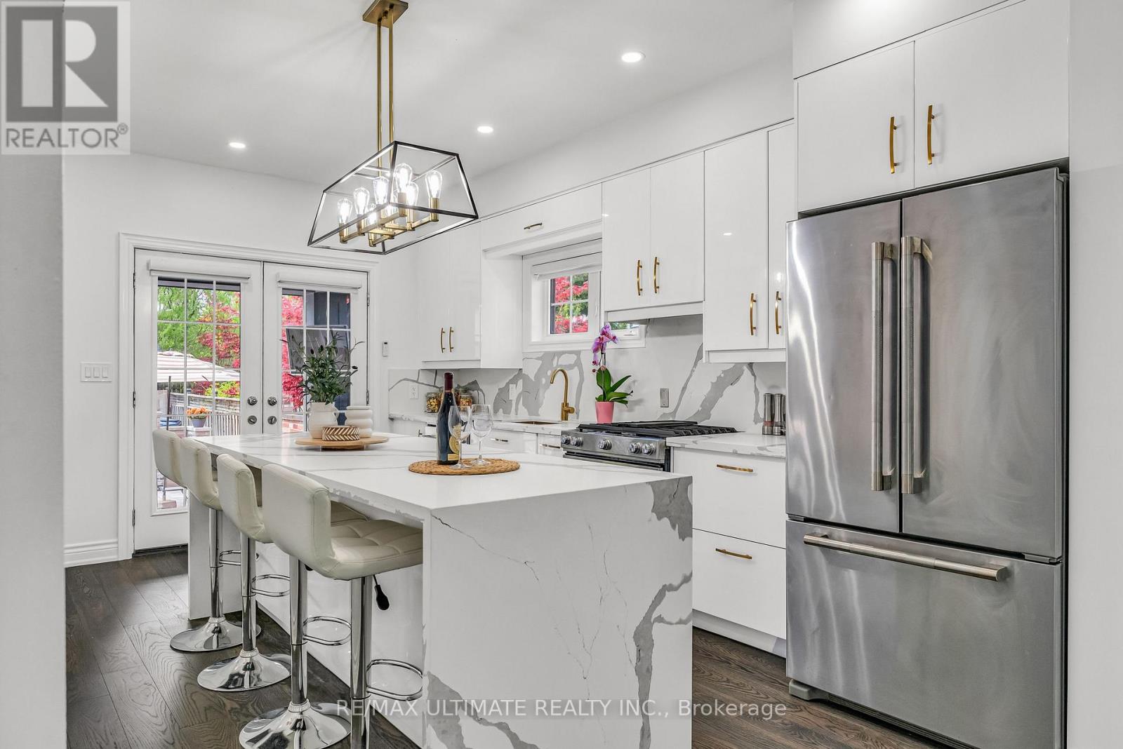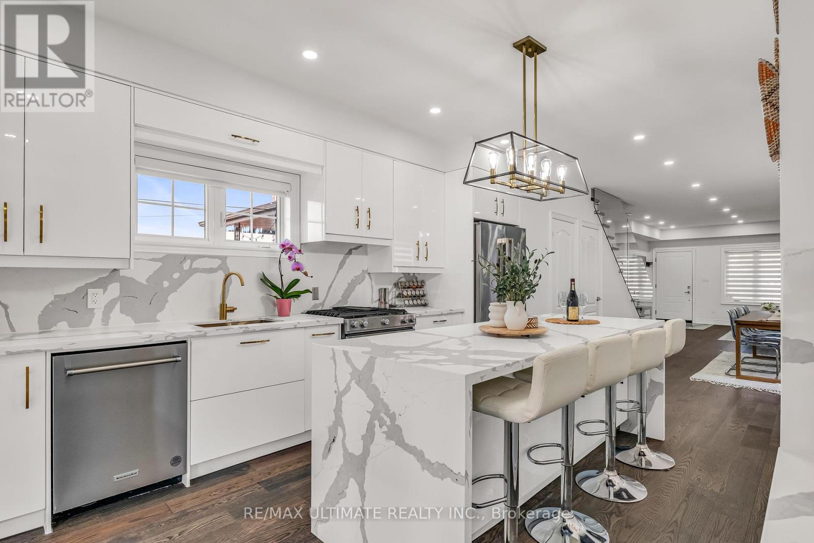 Fantastic Detached Family Home in a Caledonia-Fairbank Neighborhood! This truly custom-built home features an open-concept main floor designed for entertaining and everyday living. Enjoy soaring 9-foot ceilings on both the main and second floors, with an impressive 83-inch basement ceiling height. The gourmet modern kitchen is a chefs dream, complete with a large island featuring a quartz waterfall countertop and backsplash, a dedicated coffee station, and direct access to a covered patio. Elegant details include glass railings, 43-inch-wide stairs, pot lights throughout, 5 inch baseboards, and classic colonial doors. All bedrooms boast double closets, and the convenience of second-floor laundry adds to the homes functionality. Electric blinds on the main floor complement the abundance of natural light streaming in from east and west exposures through numerous windows. The finished basement includes a separate 1 bedroom apartment with ensuite laundry and side access, while the main-floor stairs remain intact for easy conversion back to a single-family layout if desired. Currently rented to reliable tenants at $2,000 per month, who will stay or vacate. Step outside to an amazing backyard oasis featuring patterned concrete, a covered patio with custom millwork, a built-in charcoal BBQ (gas line available), a garden area, and two sheds. Additional amenities include rough-in for a central vacuum system. Located directly across from Charles Caccia Park, enjoy easy access to a playground and wading pool. This home offers the perfect blend of style, comfort, and location-don't miss this exceptional opportunity! (id:4555)