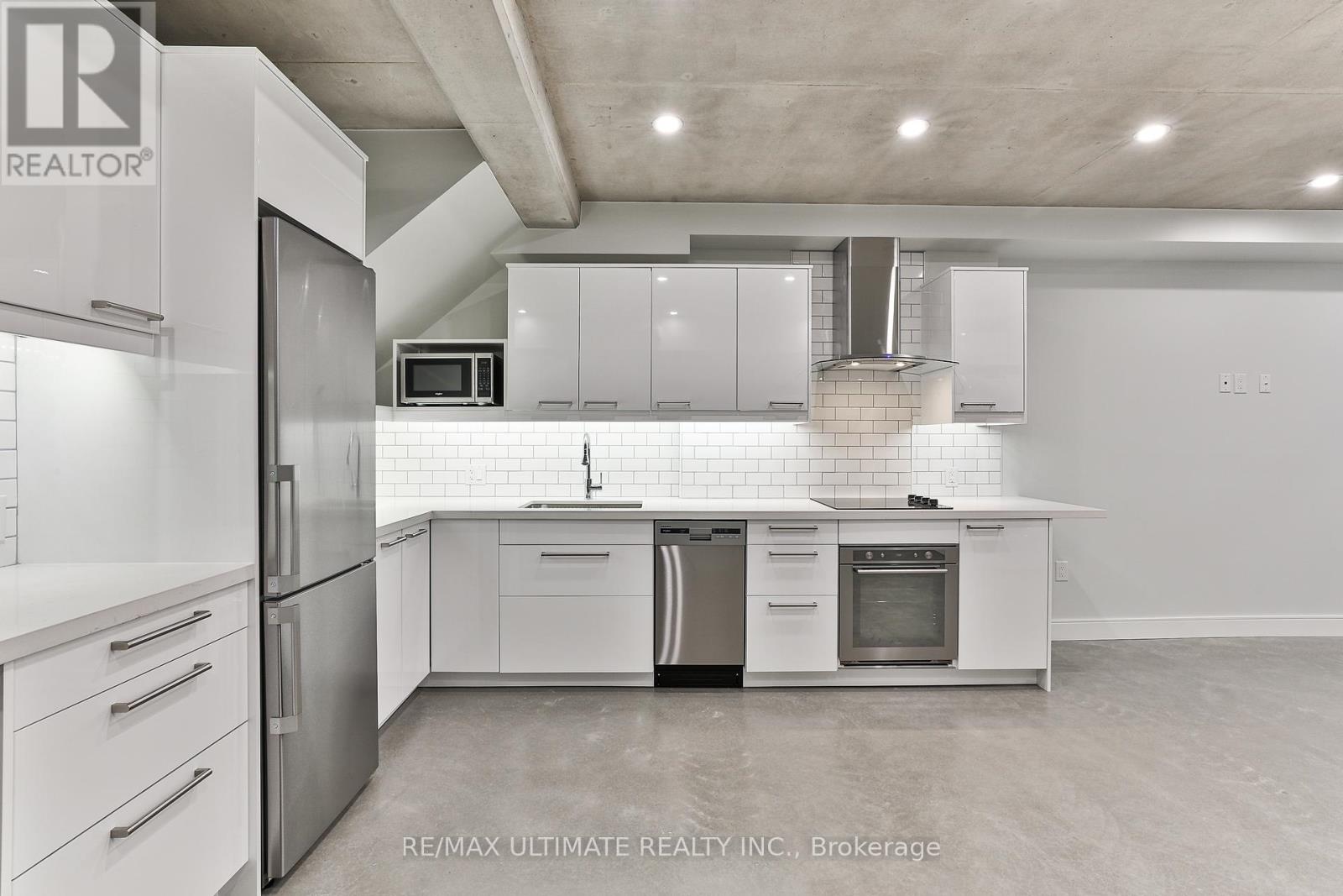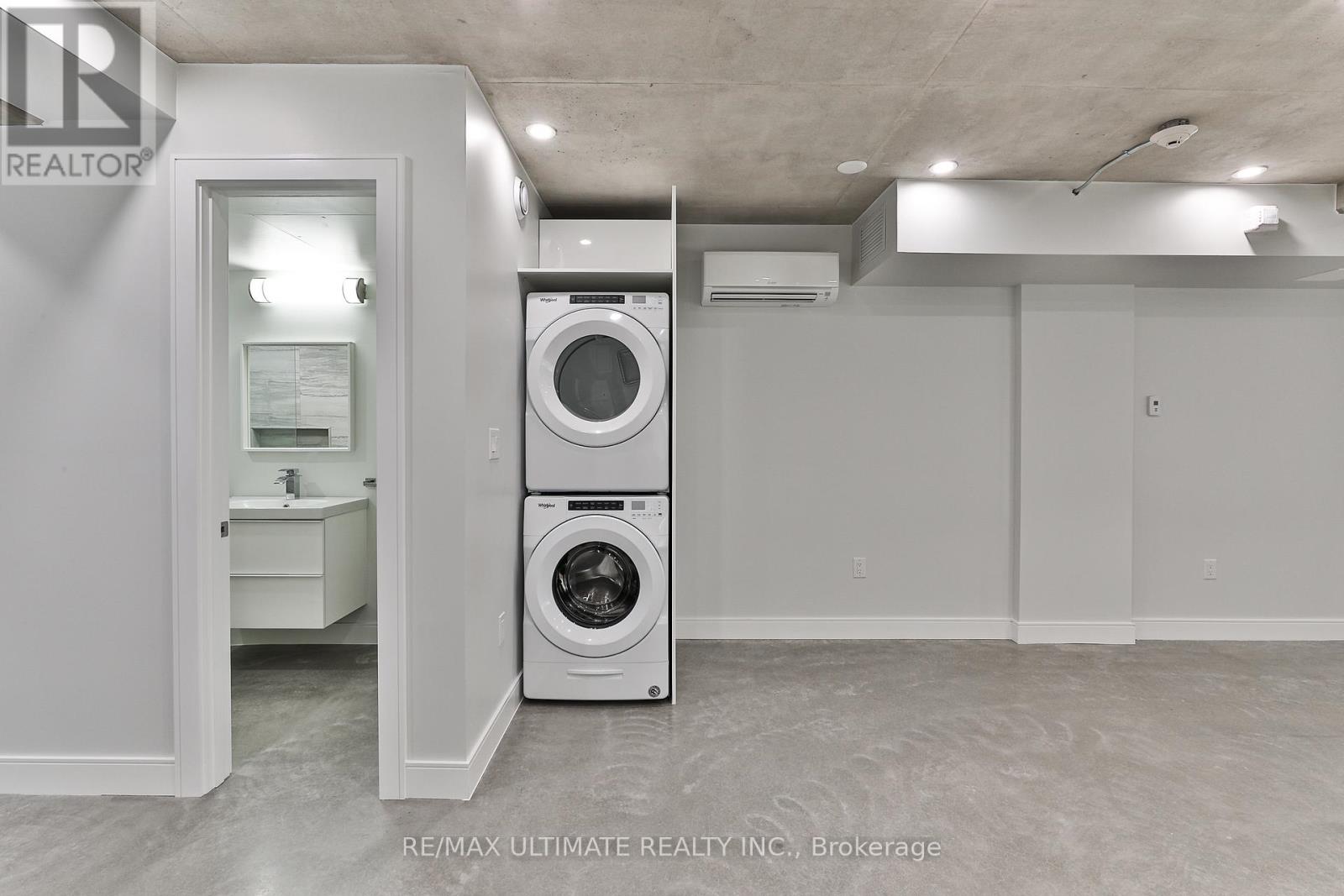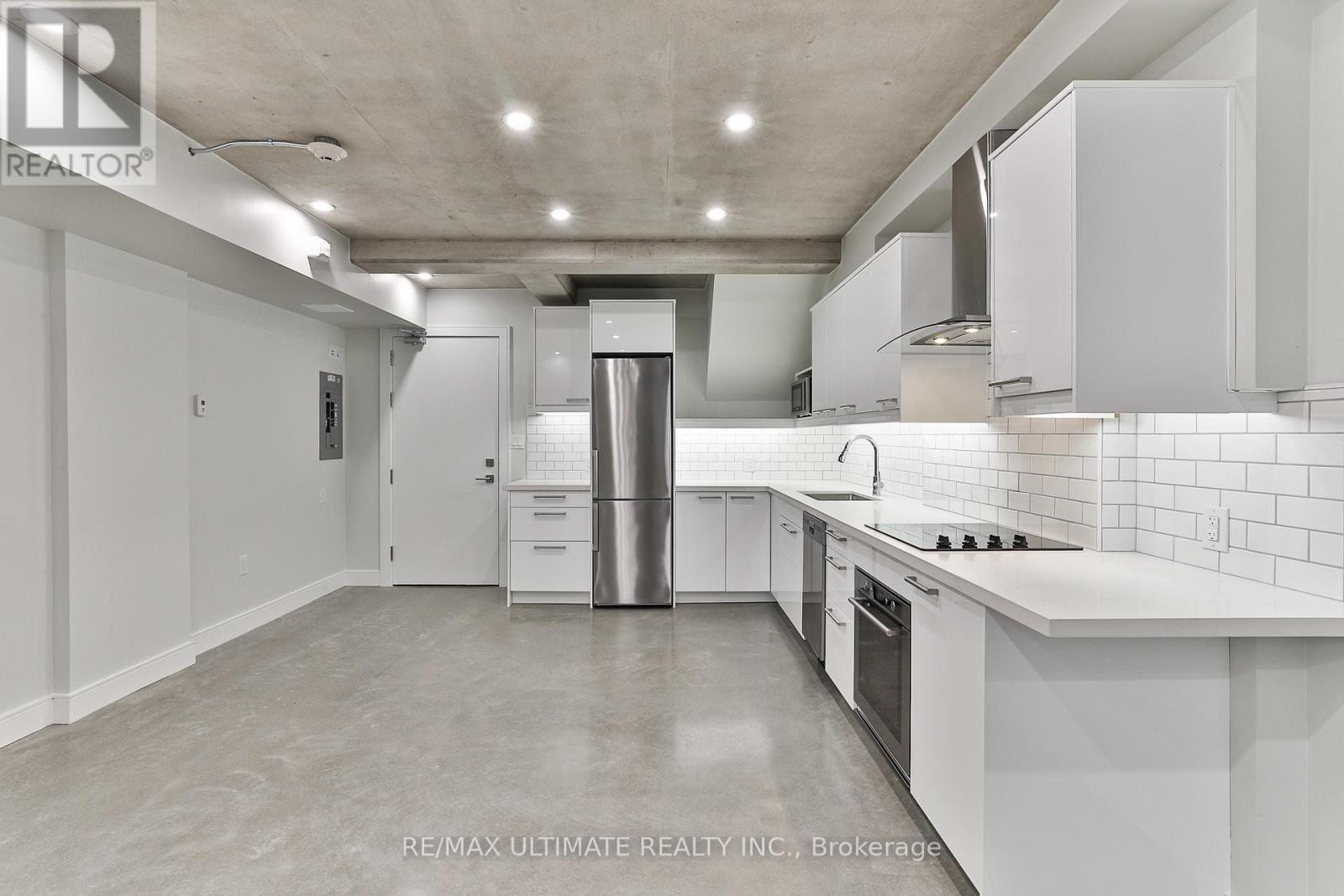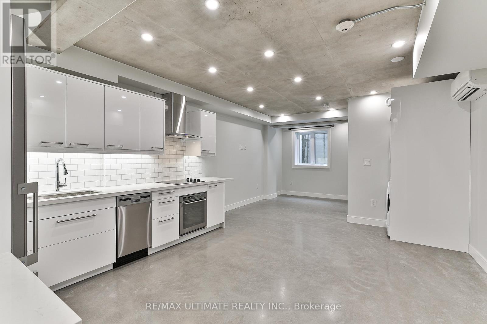 Sleek & Stylish Lower-Level Bachelor Loft: Modern Boutique Living in a Prime Location. Discover smart, design-forward living in this bright and efficient lower-level bachelor loft, nestled within a contemporary boutique building that blends urban edge with modern comfort. Perfect for city dwellers who appreciate clean lines, thoughtful details, and a well-connected location. This open-concept space is full of character, with polished concrete heated floors, high ceilings, and oversized windows that invite warm natural light into the space. A modern kitchen anchors the suite, featuring sleek quartz countertops, stainless-steel appliances, subway tile backsplash, and built-in cabinetry that maximizes both style and function. The main living and sleeping area is thoughtfully configured to offer flexibility, whether you're relaxing, working, or entertaining. A full 3-piece bathroom with a walk-in glass shower and timeless tile selections completes the space. Ideal for a single professional, this smartly designed home offers a rare opportunity to live in a boutique residence with a modern industrial aesthetic. Enjoy all the conveniences of urban living at your doorstep 24-hour TTC blue line bus service just steps away (direct to Keele Subway Station), and quick access to the upcoming Eglinton LRT, Black Creek Drive, and Highways 400 & 401. Walk to neighbourhood staples including Golden Wheat Bakery, Rui Gomes Meats, Ample Supermarket, Nova Era Bakery, Martins Restaurant, The Beer Store, Stockyards Shopping Centre, and the Evelyn Gregory Library. A polished, no-nonsense home with just the right touch of personality this ones perfect for those who know what they want. (id:4555)