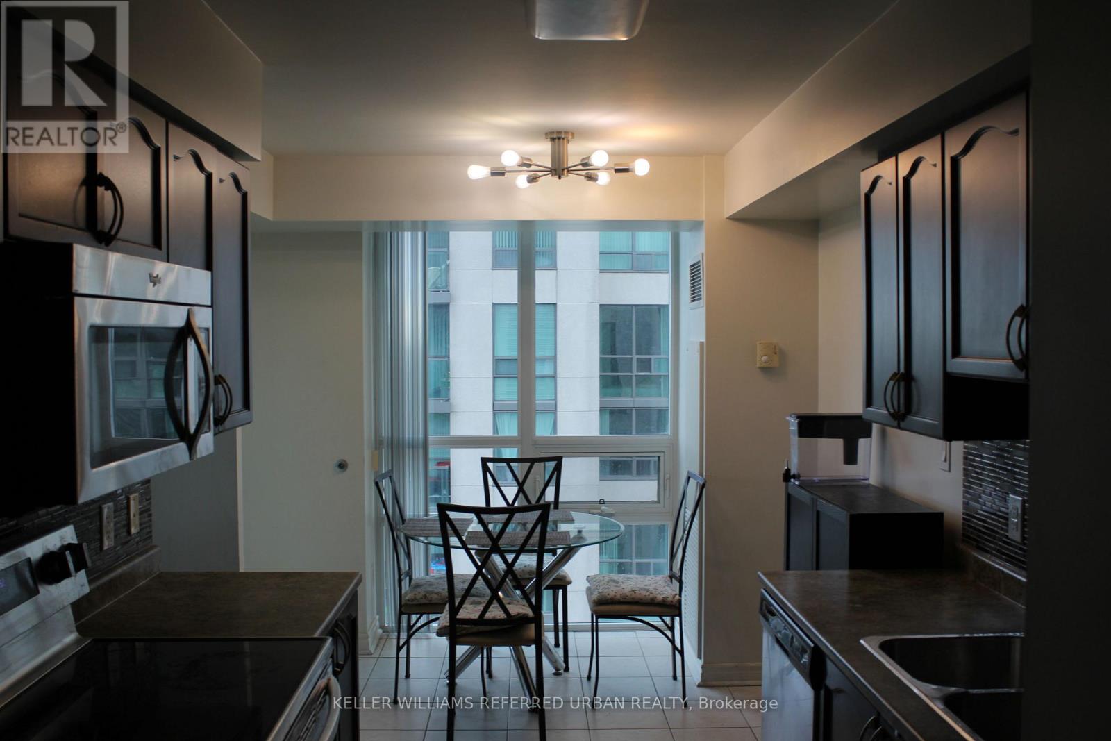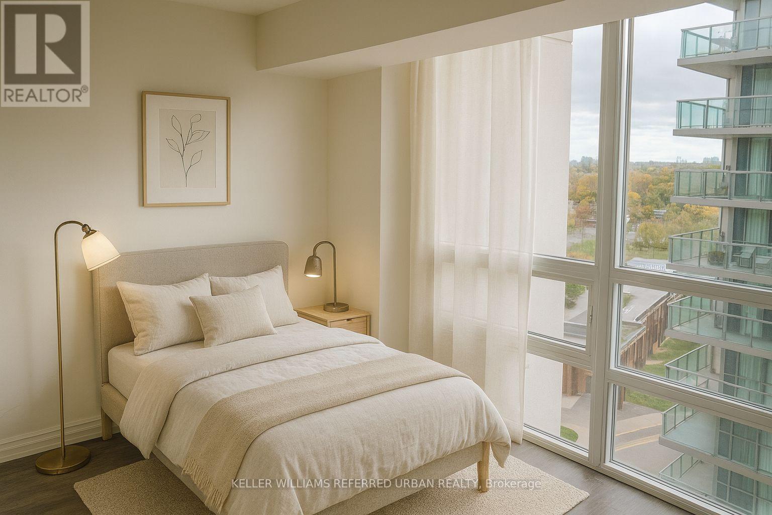 Bright and spacious 2-bedroom + den, 2-bath condo offering over 1,000 sq. ft. of open-concept living in a quiet, well-managed building. Enjoy unobstructed city views from your large L-shaped balcony, perfect for relaxing or entertaining. Located at the end of a quiet street, yet just steps from public transit, grocery stores, top schools, hospitals, and major shopping malls, this condo offers the best of both worlds: peaceful living with urban convenience. Thoughtfully designed layout features a sun-filled living/dining area, a functional den ideal for a home office, and two generously sized bedrooms, including a primary with ensuite. Includes 1 owned parking space and 1 owned locker. Don't miss this opportunity to own a rare gem in a prime location! **Some photos are virtually staged** (id:4555)