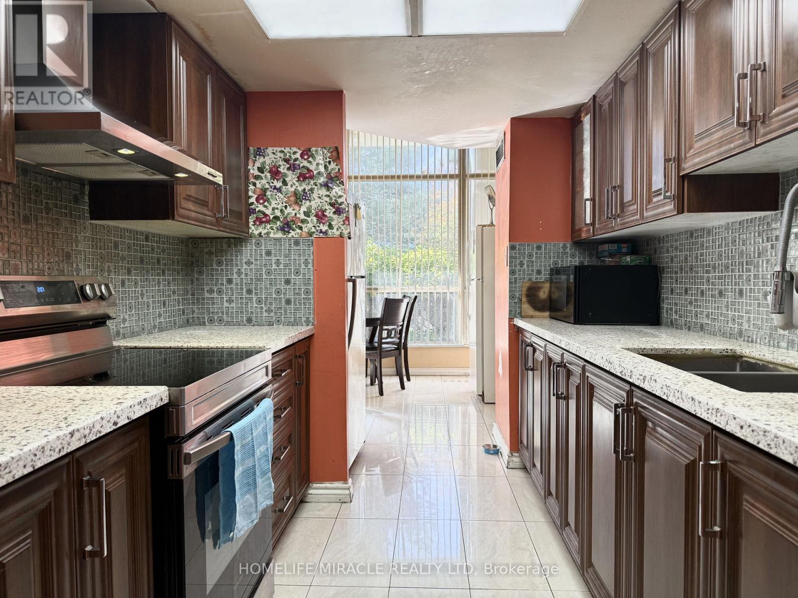 Welcome to This beautifully maintained 2-bedroom, 2-bathroom unit offer serene views of greenery and the street. Situated in a well-managed, well Kept building with 24-hr gated security and concierge, and its own private children's park and scenic walking trail-perfect for families, couples, and seniors alike. This unit includes 1 owned parking spot, and 1 owned Locker. Located in a quiet cul-de-sac, with no through traffic, yet close to everything: schools, plaza, Library, 24/7 Rabba, community center, mall, York University & Humber College. Minutes to Finish LRT (under construction), and Highways 407, 27, 427, 401, & 400. Exceptional Value- Must see! (id:4555)