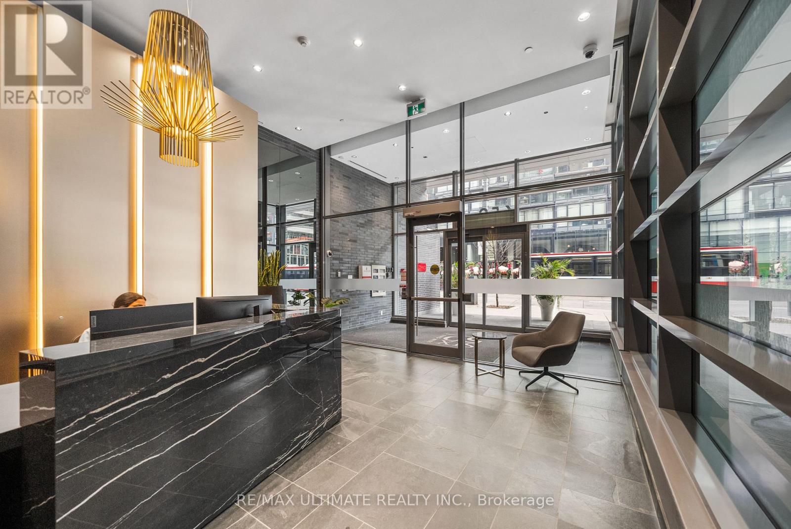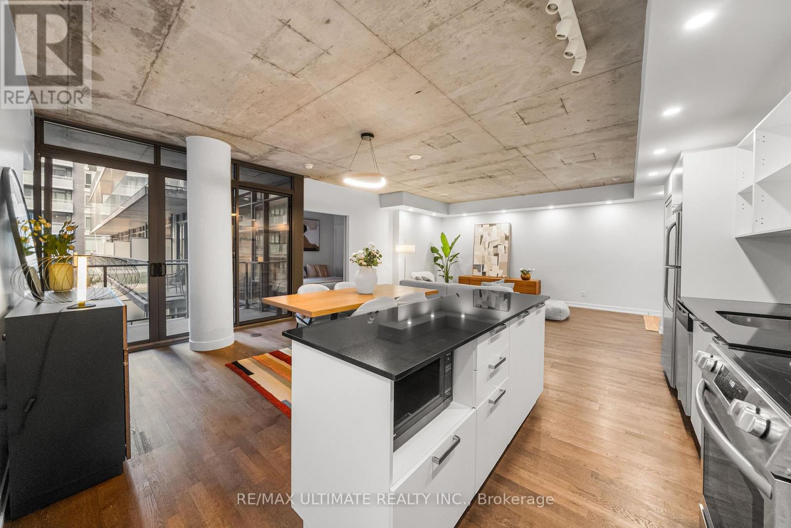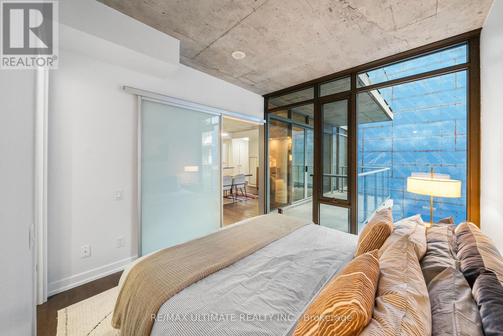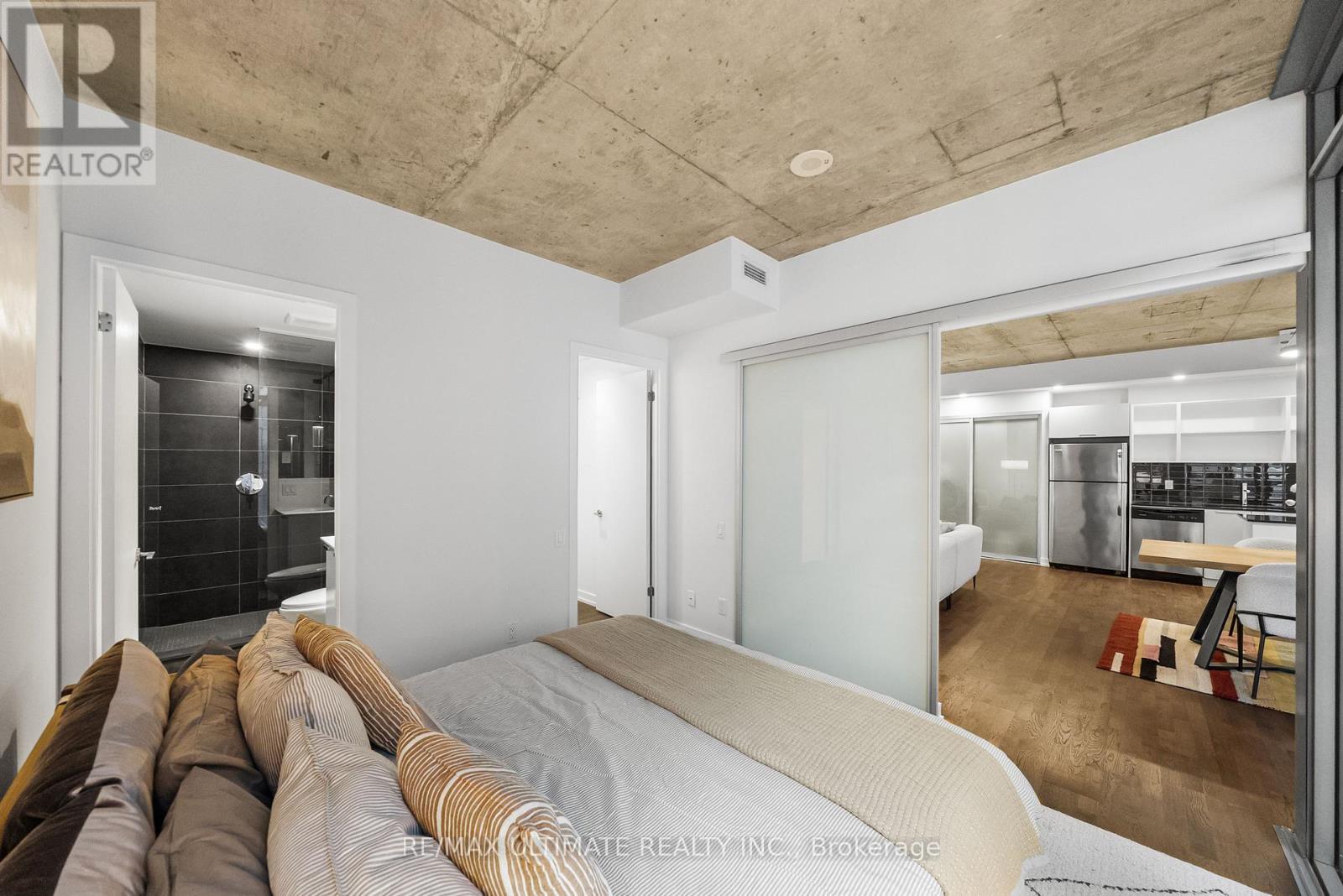 Experience boutique modern urban living in this stunning 1,086 sq ft 2 bedroom - 2 bathroom suite in the heart of King West. 991 sq ft of meticulously designed interior space and a generous 95 sq ft balcony. Designed with 9-ft exposed concrete ceilings and floor-to-ceiling windows, this home blends modern style with functional comfort. The open-concept kitchen includes an extra-wide marble-topped island, stainless steel appliances, and ample storage ideal for everyday cooking and effortless entertaining. The open-concept living and dining area extends seamlessly to a bright balcony, perfect for outdoor dining or unwinding with a view over the courtyard. The king-sized primary suite offers a peaceful retreat with a walk-in closet and a sleek glass-enclosed en-suite shower. The second bedroom provides flexibility for guests, a home office, or creative space, and is complemented by a full second bathroom. Additional highlights include in-suite laundry and generous storage throughout. This pet- friendly building offers premium amenities including a 24-hour concierge, a fully equipped gym, and an inner courtyard green space. 1 priority parking spot is included. Located steps from the King Streetcar, the upcoming Ontario Line, parks, restaurants, cafés, galleries, and shops, this is a rare opportunity to own a split layout condo in one of Toronto's most vibrant neighbourhoods. (id:4555)