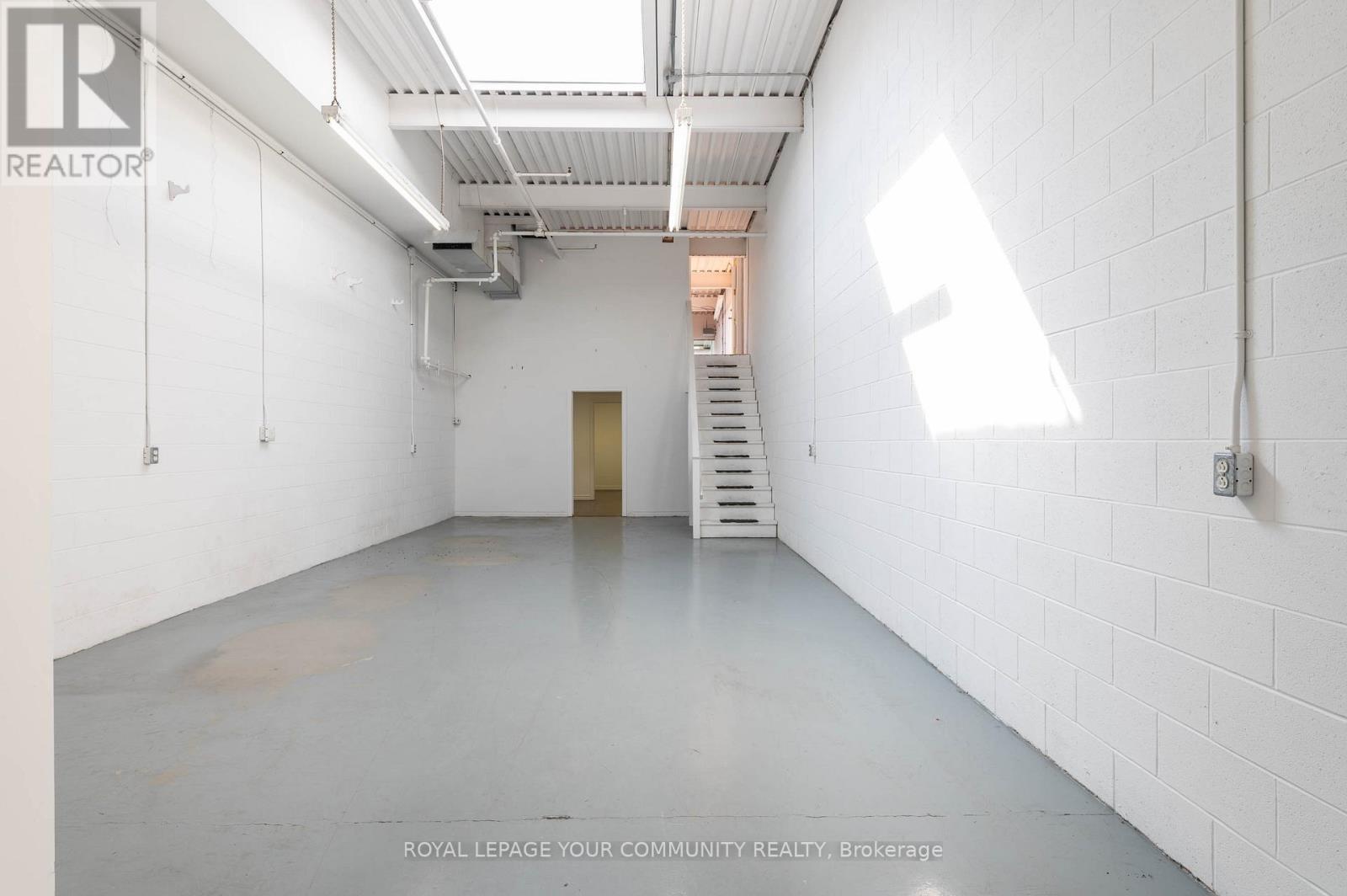 Rarely available affordable 1,100 sq ft industrial unit in East York. Configured with main floor office and small open area mezzanine, this bright and clean unit is suitable for many types of uses such as food production, light manufacturing, wholesale showroom, health care facility (eg physiotherapy), art studio, content creation, architecture practice, design studio, Approx. 15 ft ceiling height. Shared truck level shipping and receiving with power trailer plate. A short drive to the DVP and well located near Eglinton Crosstown line and DVP access. Lunch spot and gym business in the building , with a multitude of small businesses in the area supplying goods and services. **EXTRAS** 2nd parking space, small truck parking and outside storage are available for a reasonable monthly cost. All included except for separately metered tenant hydro & gas, and 13% HST. (id:4555)