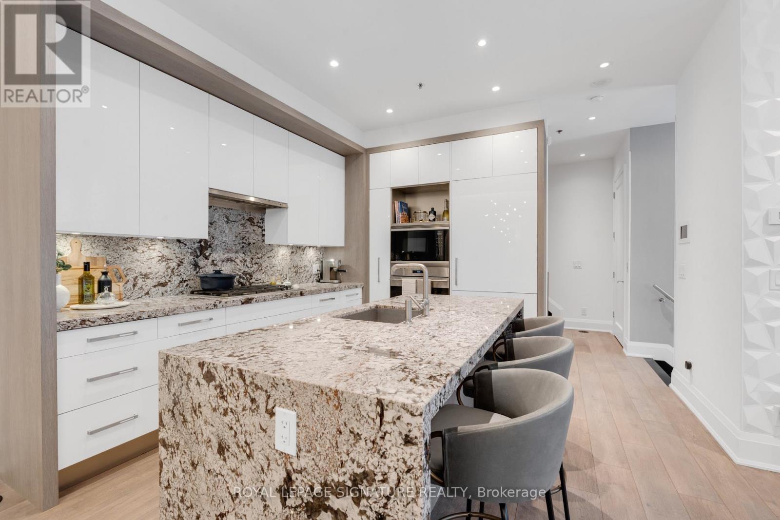 A truly rare and exclusive opportunity in Toronto's most sophisticated enclave. This prestigious Yorkville residence Townhome is part of The Urban Townhome Collection at Pemberton's acclaimed U Condominiums, offering the ultimate in luxury and privacy with the conveniences of refined urban living.Perfectly positioned between St. Michael College and St. Basil's Parish, this sun-filled,home spans nearly 3,000 sq.ft. of meticulously designed living space. The main level features soaring 10-ft ceilings, a custom Irpinia kitchen with premium Wolf & Sub-Zero appliances,and an expansive private terrace ideal for elegant entertaining.A private elevator connects all five levels, including three floors of opulent living space, a rooftop terrace with bar, BBQ hookup, and a lower level with a rare oversized 2 car private garage and generous storage.The second level features one bedroom with own ensuite bath and walk-in w/built in closet, andone bedroom w/built in closet and bathroom, while the third level offers a serene primary retreat with custom walk-in closets, spa-inspired ensuite bath and an additional secondary bedroom w/built-in closet.Steps to Bloor-Yorkville's designer boutiques, world-class dining, U of T, and transit, this one-of-a-kind home seamlessly blends architectural excellence, elevated finishes, and an unrivaled lifestyle-crafted for the most discerning buyer. (id:4555)