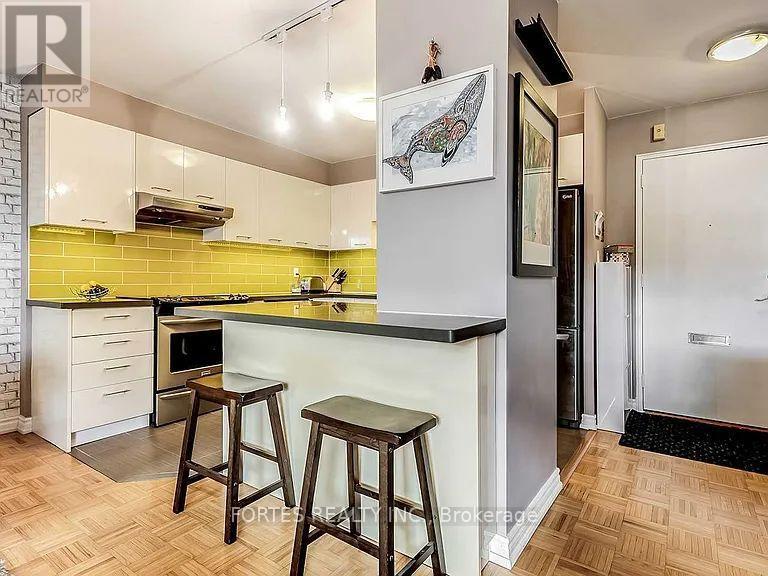 Fantastic! Large (Over a 1000 Sqf) Corner Unit w/ very spacious rooms and tall ceilings in a very well kept property overall. This is a Friendly Co-Ownership 2 bedroom apartment plus a Den (being presently used as a 3rd bedroom). Living and Dining in Open concept format w/ access to Open Balcony. Modern kitchen w/ ceramic Floor, ceramic backsplash, double sink, stainless steel appliances, Quartz countertops, overlooking Living & Dining Rms. Great location for sports (biking, walking, running, Skating on ice) nature (parks) and health minded afficionados. Near Swansea Public School & Community Centre. TTC Bus at your door or a short walk to Street Car on QEW, to High Park or to Lake Shore. Quick access to Gardiner Expy. The Maintenance fee of $769 per month covers/includes Heat, Water, Building Insurance, Parking, Locker, Common Elements and Condo Property Taxes. (id:4555)