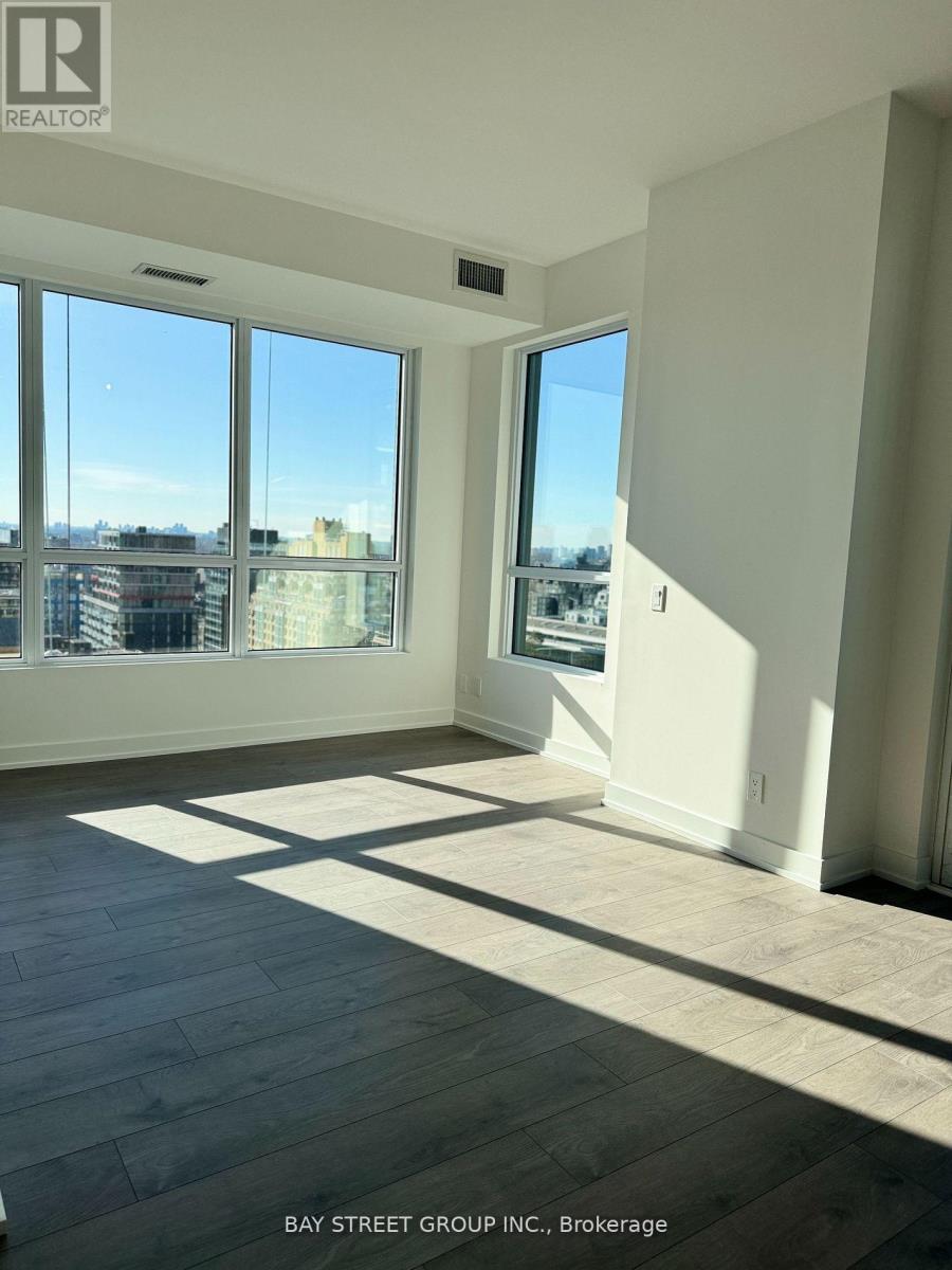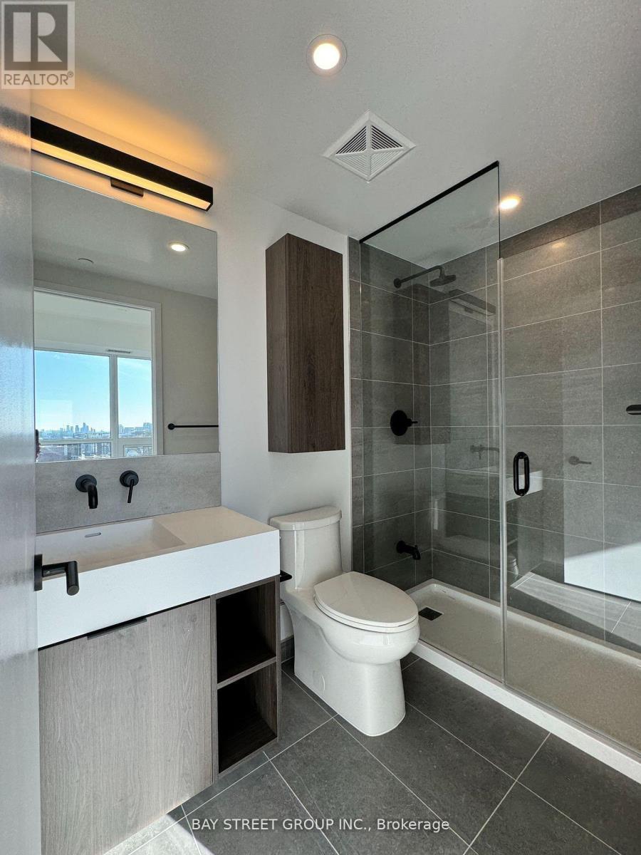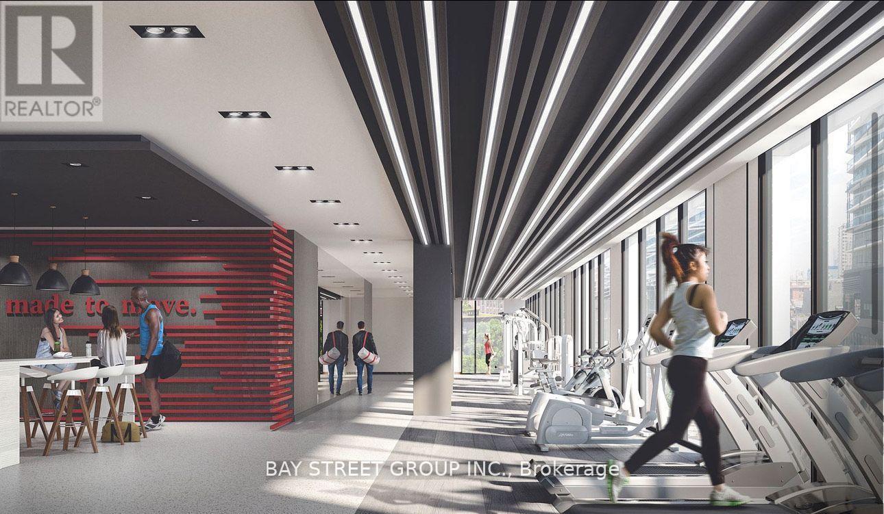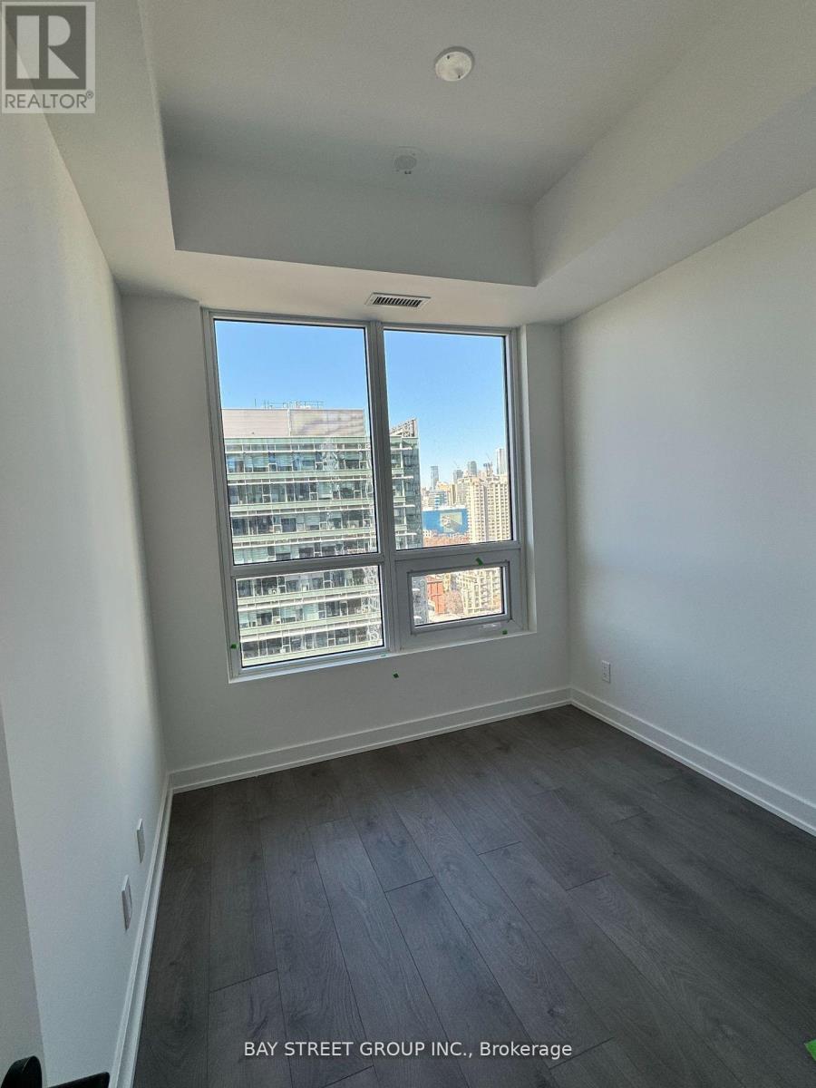 Prime Location in the Vibrant Heart of Toronto's Entertainment District. This never-occupied suite offers 746 sq ft of interior space, featuring a private balcony, 2 bedrooms, a den, and 2 bathrooms. The modern designer kitchen and bathrooms are complemented by laminate floors throughout, 9 ft ceilings, and sleek quartz countertops with a matching backsplash. Additional highlights include a spacious walk-in laundry closet, providing both style and functionality in a prime location. (id:4555)
