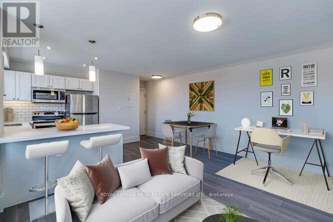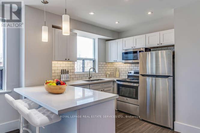 Bright and Spacious 1-bed, 1-bath apartment in a well-managed multiplex. Main floor unithas open concept living/dining area and a modern kitchen with s/s appliances, a breakfast bar and plenty of storage. Two large windows allow for plenty of natural light. There is an extra closet outside of the newly renovated 4-pc bathroom. The large bedroom also boasts a large window. Close to Transit, Shopping and easy access to 401.Sparkle Solutions Laundry service with reloadable card, conveniently located in building. Pet Friendly. Parking available in garage or outside for a fee (id:4555)
