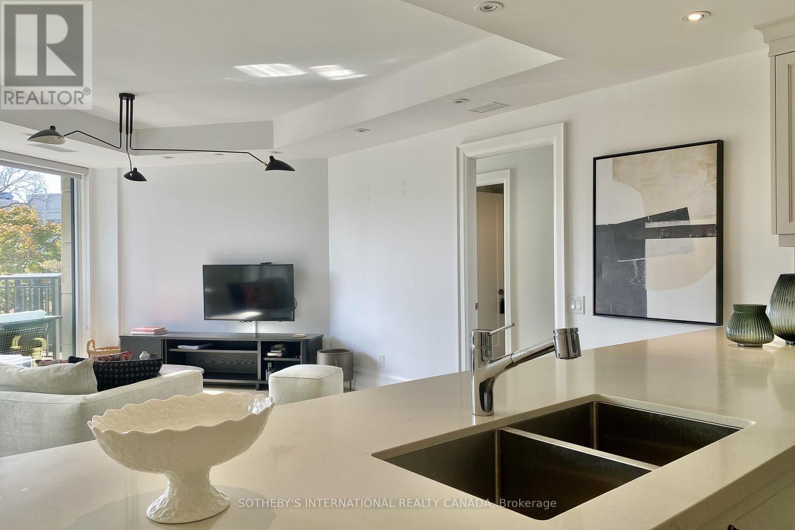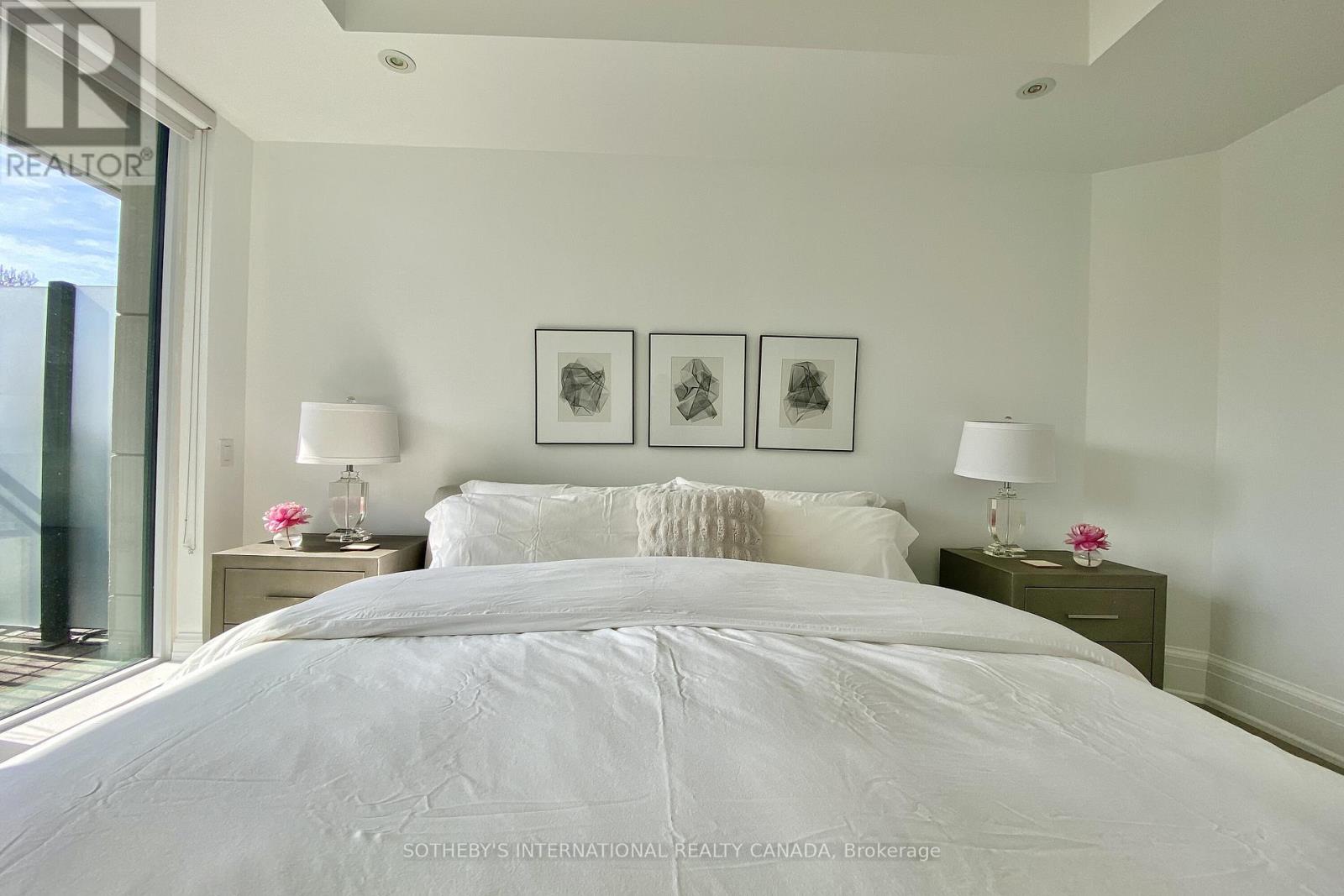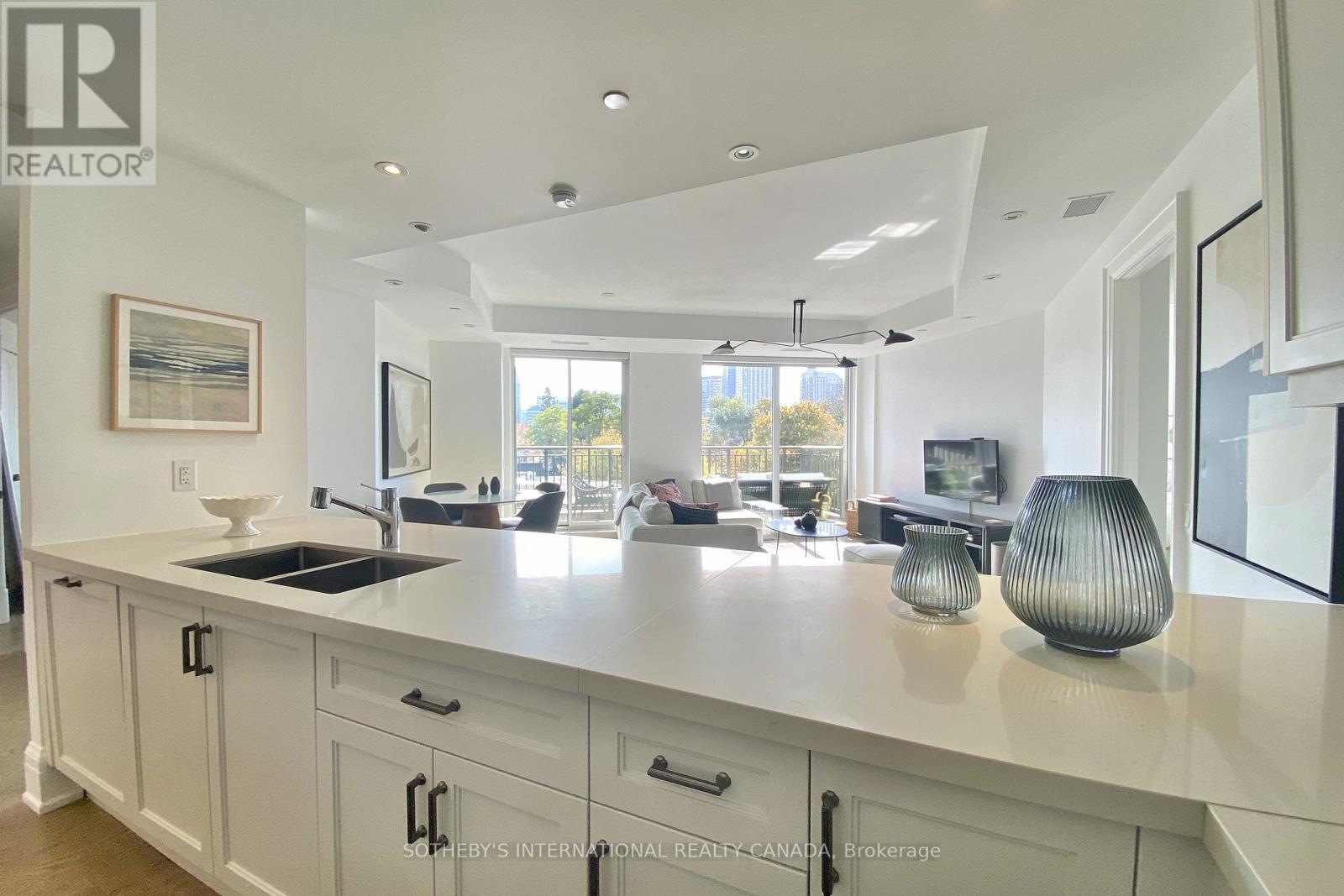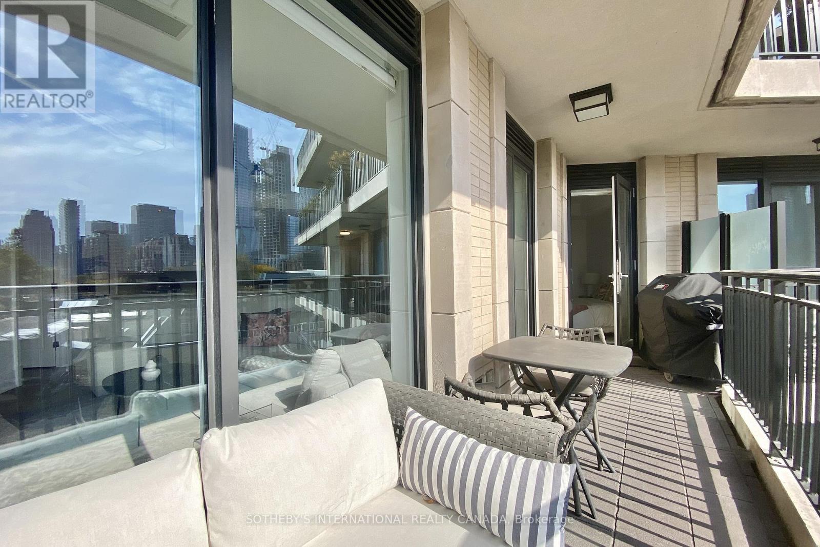 Available for immediate occupancy. This elegant suite spans 1,200 SF and features a spacious kitchen with a large countertop, high-end finishes, 9' ceilings, and fully integrated Miele appliances, a dedicated laundry room. The bright, open-concept living area extends to a south-facing terrace with a gas line for BBQ, offering charming views of the neighbourhood. Additional highlights include two south-facing balconies - one off the primary bedroom and another shared between the living room and second bedroom. Residents enjoy 24/7 full-service concierge, valet parking, and hotel-style amenities for an elevated living experience. Tenants to pay utilities and tenant's insurance. (id:4555)