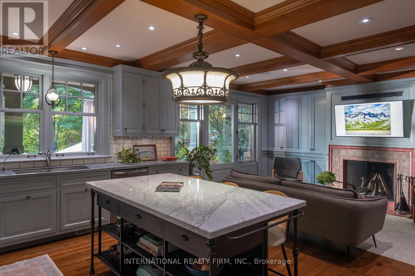 An exotic world awaits you at 270 Indian Road. This rare handcrafted Arts and Crafts bungalow proudly occupies over an acre of well manicured lawns and gardens planted with eye popping cultivars. In front, a large veranda invites you under a low dramatic sloping roofline, covered in chamfered slate, w/ copper downspouts, tongue & groove soffit, punctuated by a charming 2nd floor dormer and framed with two stately chimneys. This personal and authentic house exudes understated class without pretense. The concrete/precast driveway leads to a shockingly large parking area and a three bay heated garage itself built of brick with slate roof and accoutrements. Aside from housing autos, the garage doubles as a giant man cave with bar, projection TV and nightclub lighting. Various terraces lead to multiple patios and a fully winterized art studio. All grounds irrigated and dotted with a dizzying array of landscape lights. And you can do whatever you want because the grounds are totally private. The main residence offers 5961 square feet of romantic living space to fall in love with, updated in a money-is-no-object restoration preserving and augmenting the home's most endearing features. Beam ceilings, built ins, oak paneling, leaded windows, etched glass, hand blown Murano glass fixtures, oodles of built-ins including two dining room curio cabinets, banquettes, finished-in-place white oak floors, wood marquetry, console tables, plaster crown mouldings, deep casings, the finest materials and fixtures imported from the far corners of the earth. See inclusions list. Unassailable mechanicals; radiant floors throughout, double zone, dual condenser A/C, HRV, 200A power, Romex cable. Copper plumbing--no dubious plastic tubing. Situated between High Park and funky Roncesvalles village. Subway mere steps away. Walk to High Park or the lakeside. Escape the ordinary and visit this ageless beauty in person. Click the multimedia/video link for more photos, floorplans, and other details. (id:4555)