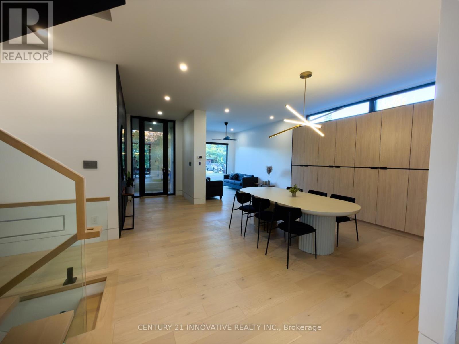 Modern Custom Home on a Serene Cul-de-Sac Backing onto Highland Creek. Designed by Award winning Architect w/Hidden Garage Door, White Brick, Custom Fabricated Aluminum Panels. True Floor-to-Ceiling Insulated Aluminum Windows from Alumalco. Inside, Engineered Harwood Floors Throughout, Wolf/Subzero Kitchen, with Massive Pantry Storage in Adjoining Dining Room. Huge 400 soft Canopy Covered Deck to Take in Serenity of Nature in Spacious Backyard. Second Floor Features 4 Bedrooms plus Office and Laundry. Lower Level Features Side Entrance From Walk-out Basement, 2 Bedrooms , 3-piece Washroom Featuring a Show-stopping Theatre Room. Next Door to UofT, Colonel Danforth Trail Leading to Lake Ontario. HWY 401 and 15 minutes to DVP. (id:4555)