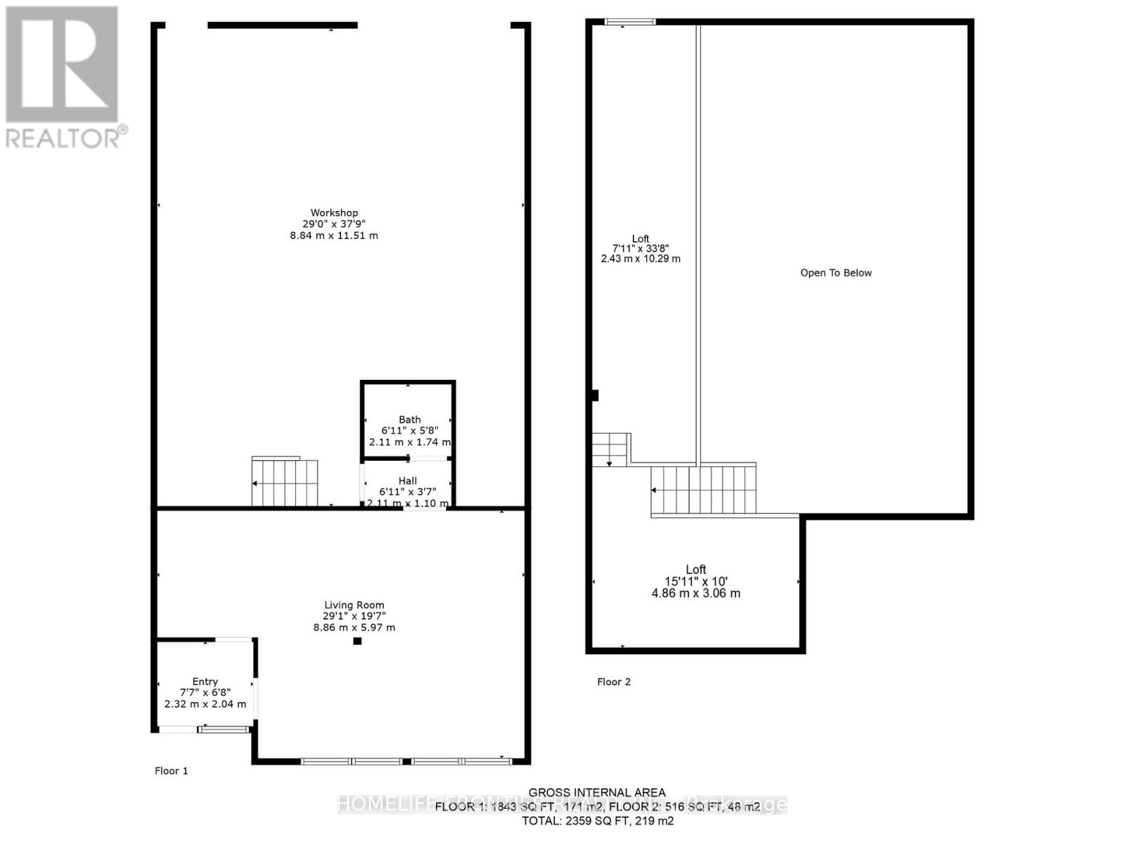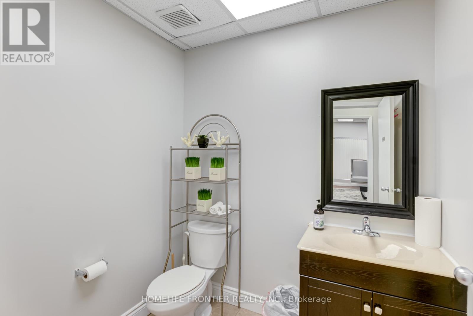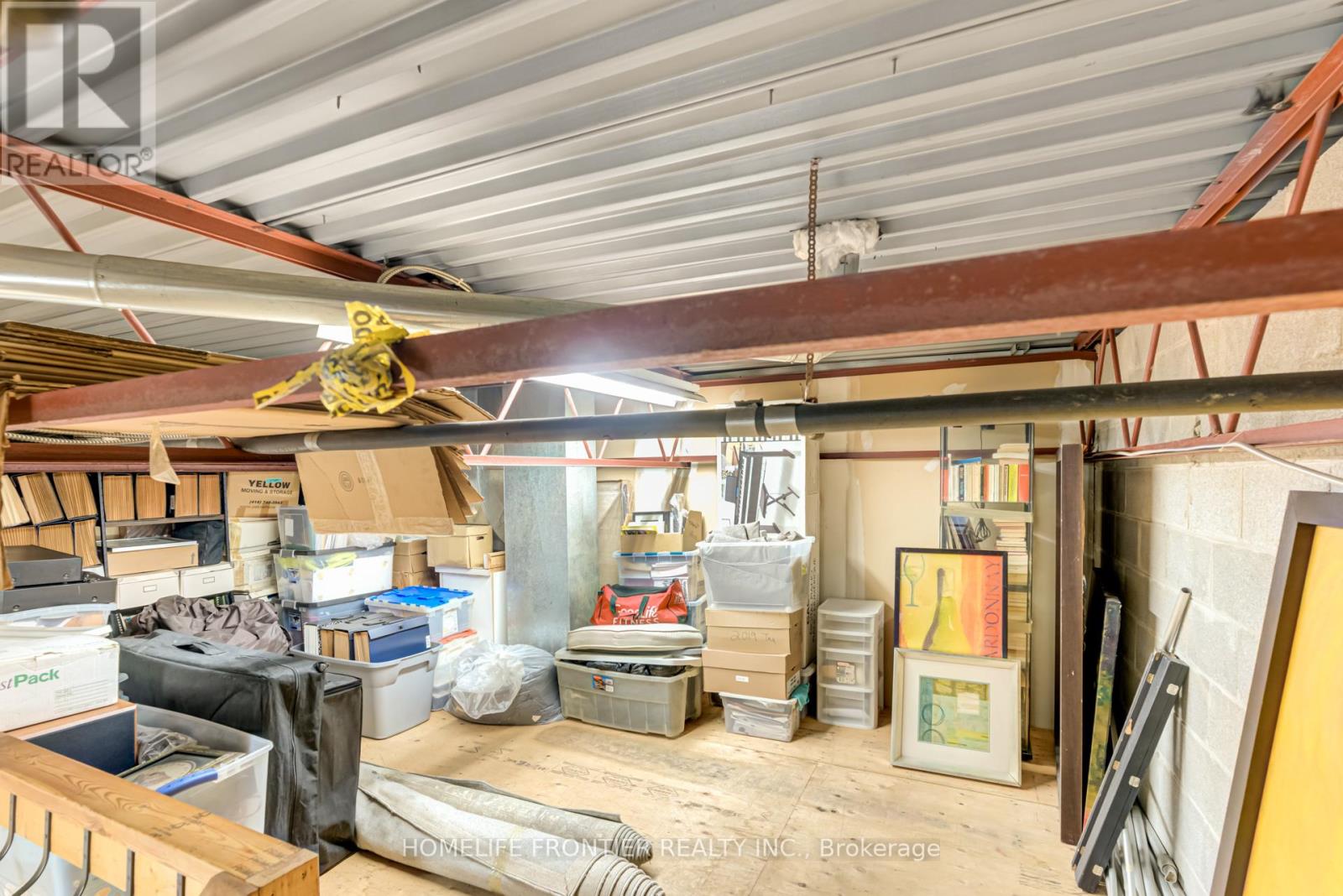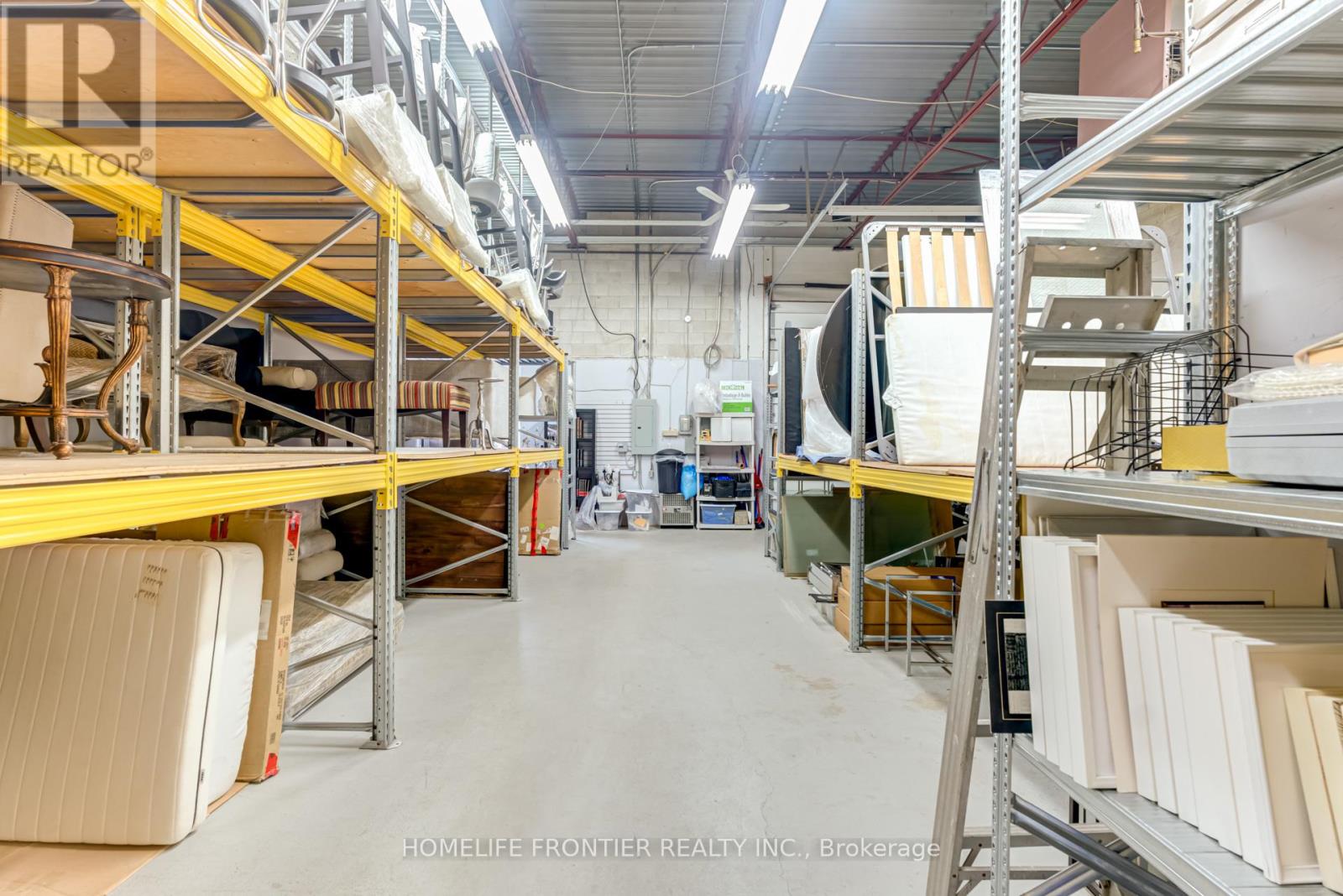Versatile Industrial Condo with Finished Office & Mezzanine. Beautifully maintained 2,360 sq. ft. industrial condo, featuring 1,843 sq ft of ground-floor space plus a 516 sq ft mezzanine. The front portion includes approx. 600 sq ft of professionally finished office space with laminate flooring and expansive wall-to-wall windows overlooking manicured landscaping, Ideal for professional uses such as law, medical, dental, accounting or real estate. The office can be leased separately for additional income.The rear warehouse offers approx. 1,250 sq ft of open space with 17 feet clear ceilings, a ground-level shipping door (12' H x 10' W), and a separate man door. A 2-piece washroom is located between the office and warehouse areas. Mezzanine provides extra storage or workspace. Existing shelving can stay or be removed. Clean, bright and move-in ready. Zoned for a wide range of permitted uses. (id:4555)