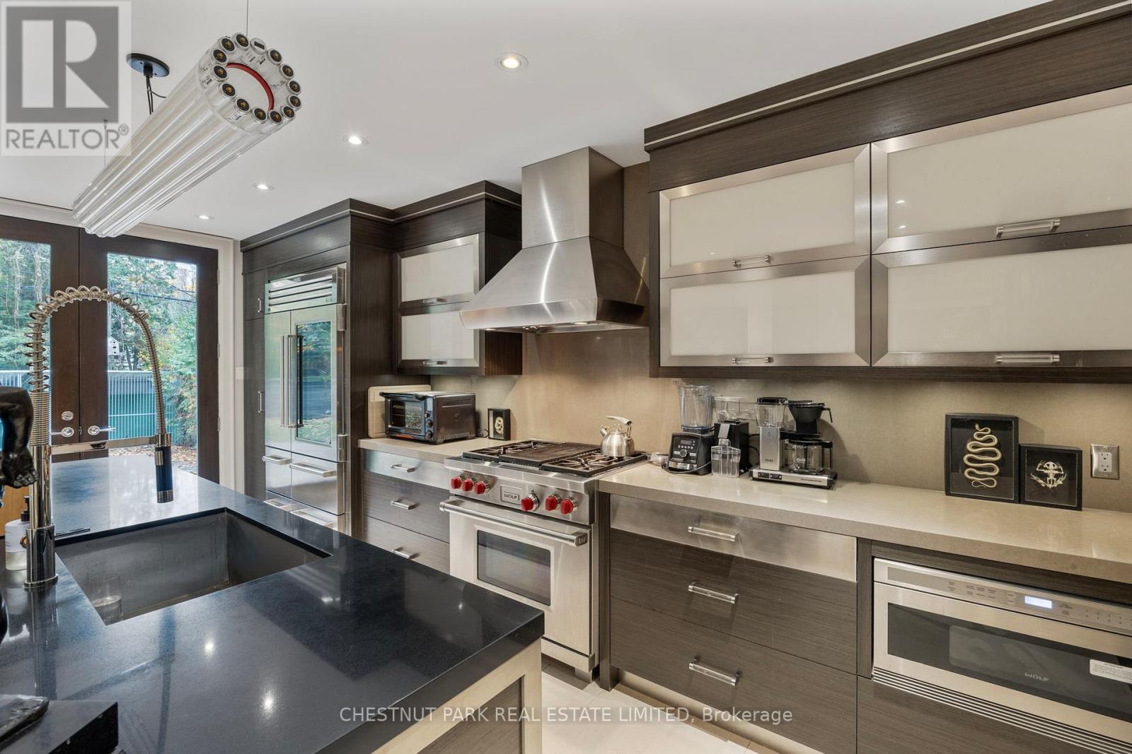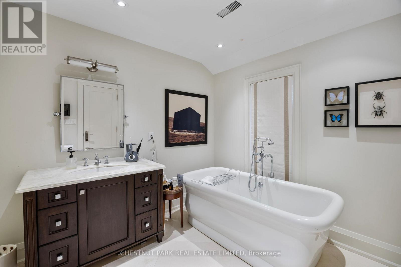 Fabulous family home on best block of Strathallan Wood. So many options: live as is, renovate, build - possibilities are endless. Centre hall plan. Kitchen with Caesarstone counters and island, limestone floor, walk out to lovely garden. Main floor den/office with walk out to garden. Main floor powder room. Primary bedroom enjoys walk-in closet and 4 piece ensuite includes separate shower. Lower level rec room currently serves as at home gym with rubber floor and 3 piece ensuite. Lower level bedroom/office. Spacious laundry room: full size front load washer and dryer, laundry sink and built-in cupboards.**See attached floor plans*** Proximity to TTC, synagogue, private and public schools, shopping and all conveniences. Do not miss this opportunity to live in this wonderful tree lined neighborhood. (id:4555)