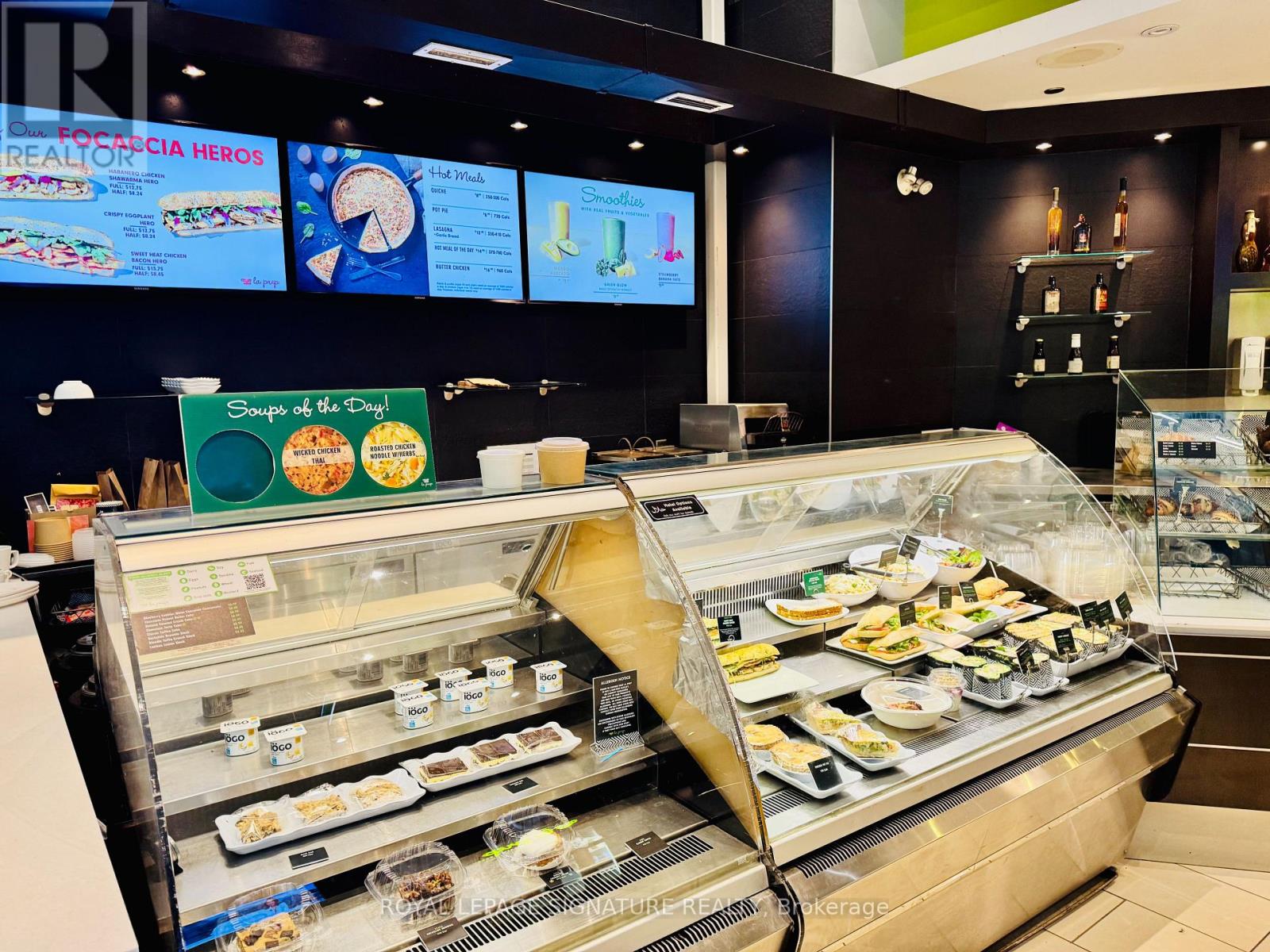 FRANCHISE BUSINESS FOR SALE! >>> LA PREP CAFE/Restaurant. Great Menu! Lots of Equipment! LEASE Until: 2035 with Renewal Options. Rent: Approx. $3,237.00/Mth. Superb build-out with Patio, Seating for 30. Storage Locker in Basement (Approx 50 sqft).Located in the Busy Office Tower. Lots of foot traffic! Located in North York's premier business neighbourhood. Subway Access !! High-density, close to Schools, Highways, Residential, Office, Retail, etc. Lots of parking underground & outside on the street. Cannot be re-branded. (id:4555)