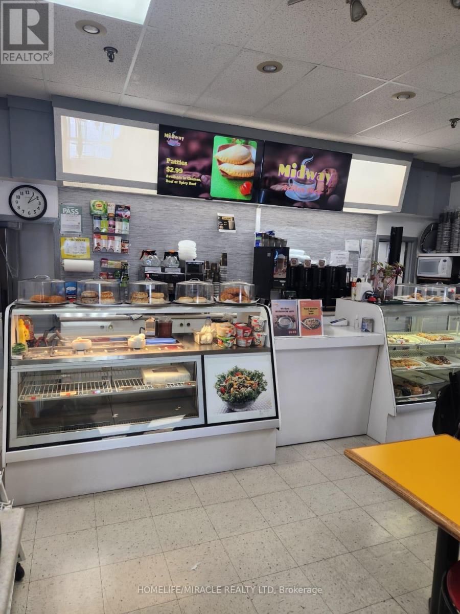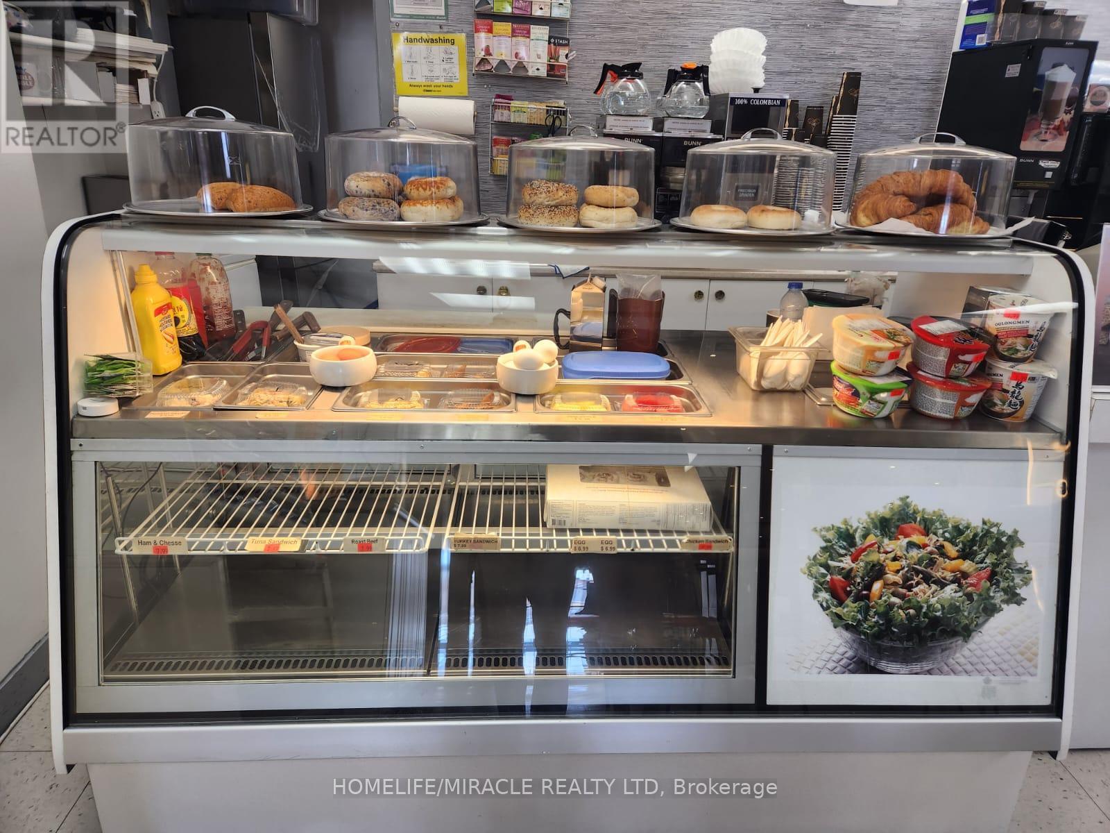 LOCATION, LOCATION, LOCATION! PRICED TO SELL! A rare opportunity to acquire a turn-key, easy-to-run coffee shop at the corner of the Dundas & Bloor intersection, right across from the Dundas West Subway Station. Excellent, high-traffic location! A well-established coffee shop with approximately 30 years of successful operation, as per the sellers. Situated on the ground floor of a mixed-use building with 3 commercial floors and over 1,000 residential rental units across two towers above, it offers an abundance of opportunities to further grow this thriving business.With no franchise or royalty fees and 4.5 years left on the current lease plus a 5-year option, you can enjoy peace of mind while building even greater success. The current owner has not subscribed to any delivery apps, providing an immediate opportunity to increase sales significantly. Training will be provided, and it is easy to learn and operate. This is a very busy area with constant subway and streetcar traffic, along with many surrounding stores that attract steady footfall. Banks, Dollarama, Toronto Public Health, Sault & ICT Kikkawa Colleges, entrances to 2nd & 3rd floor offices, plus other shops and a gymnastics center on the same level all contribute to heavy daily traffic. You just need to promote the business and grow your customer base-lots of potential here!Nearby area amenities include grocery stores, a high school, GO Transit Station, and the UP/GO Bloor Street stop (connecting Union Station to the Airport) to the east, making it highly accessible. With Rider and Walker Scores of 99 and 97 respectively, this is truly a paradise for commuters and pedestrians-you don't even need a car to get around. Don't miss your chance-get it before it's gone! Opportunities like this don't come around often! (id:4555)