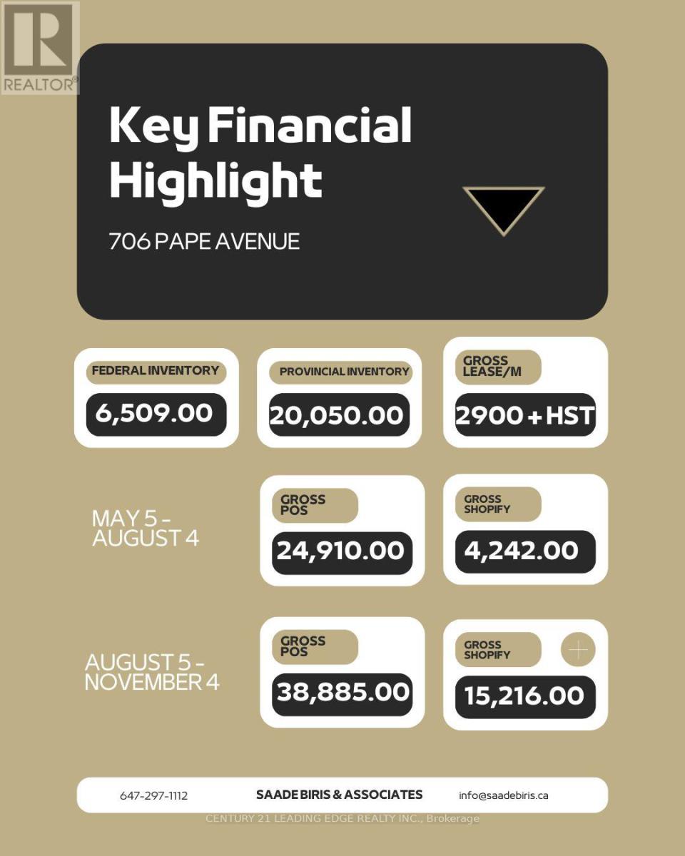 An exceptional opportunity is available to acquire a high-end vape retail store at Pape and Danforth in the heart of Greek town in Toronto. Priced with INVENTORY INCLUDED ($26,000 worth of inventory). Price is negotiable with or without inventory. This modern, renovated storefront is strategically located near major transit routes, schools, and residential neighbourhoods, ensuring a steady flow of potential customers. Very low overhead cost, Rent is $2,900 ALL included. Business sale includes all display units, shelving, furniture, a modern Point-of-Sale (POS)system, website! The current owner is willing to train the new buyer, introduce them to vendors, and assist with licensing. The sale includes the lease, storefront, and business assets. Good profit margins and room to expand, this business offers a great opportunity. The location is on a major TTC bus and subway route and is surrounded by AAA tenants like Tim Hortons, A & W, Subway, and a cannabis shop just below, providing excellent foot traffic. 5 Year Option to renew Lease. (id:4555)