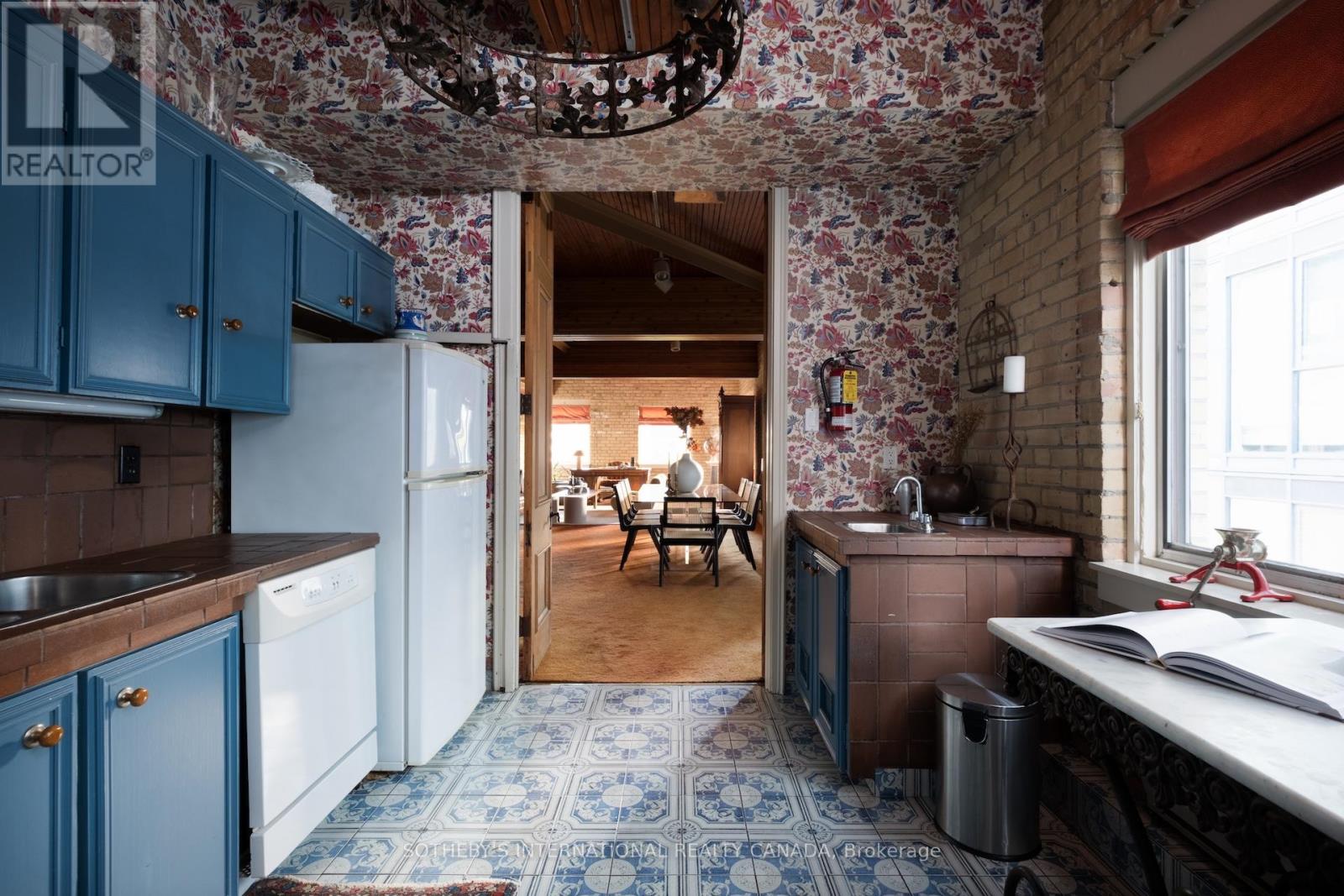 Tucked discreetly behind Yonge Street, 18 Gloucester Lane is a building of rare architectural character and meaningful cultural history. Built in 1912 and thoughtfully modernized, this five-storey buff brick building remains one of Toronto's most evocative and understated landmarks, offering discretion, cultural provenance and centrality. Behind its timeless façade lies over 9,700 sq ft of space shaped by exposed brick and beam, arched windows and generous industrial proportions. For over four decades, the building was the production headquarters for Norman Jewison - one of Canada's most internationally acclaimed filmmakers. From within these walls, major cinematic works were developed, produced and edited. And the building continues to carry that quiet sense of intention and purpose.Once production workspaces, the lower four floors now function as self-contained modernized offices with kitchenettes, washrooms and elevator access on each level, operating seamlessly as a boutique investment. Above, the building's essence reveals itself in the fifth floor penthouse residence - Jewison's former pied-à-terre. Retaining its cinematic atmosphere, the main level features a generous living salon area anchored by a herringbone brick fireplace, an open office, full kitchen and a concealed private office. A hidden staircase leads to a half-storey, where the bedroom, dressing room and bathroom form a private retreat. Positioned within the Historic Yonge Street Heritage Conservation District, 18 Gloucester Lane invites stewardship. Its architecture, history and placement within the city's cultural fabric offer the chance to continue a legacy of meaning and significance. The building's scale, discretion and location invite more possibilities: continue as a boutique investment property, adapt to a private family office or foundation, a design studio or gallery, or a fully integrated live/work private residence. A building shaped by its past, ready for its next chapter. (id:4555)