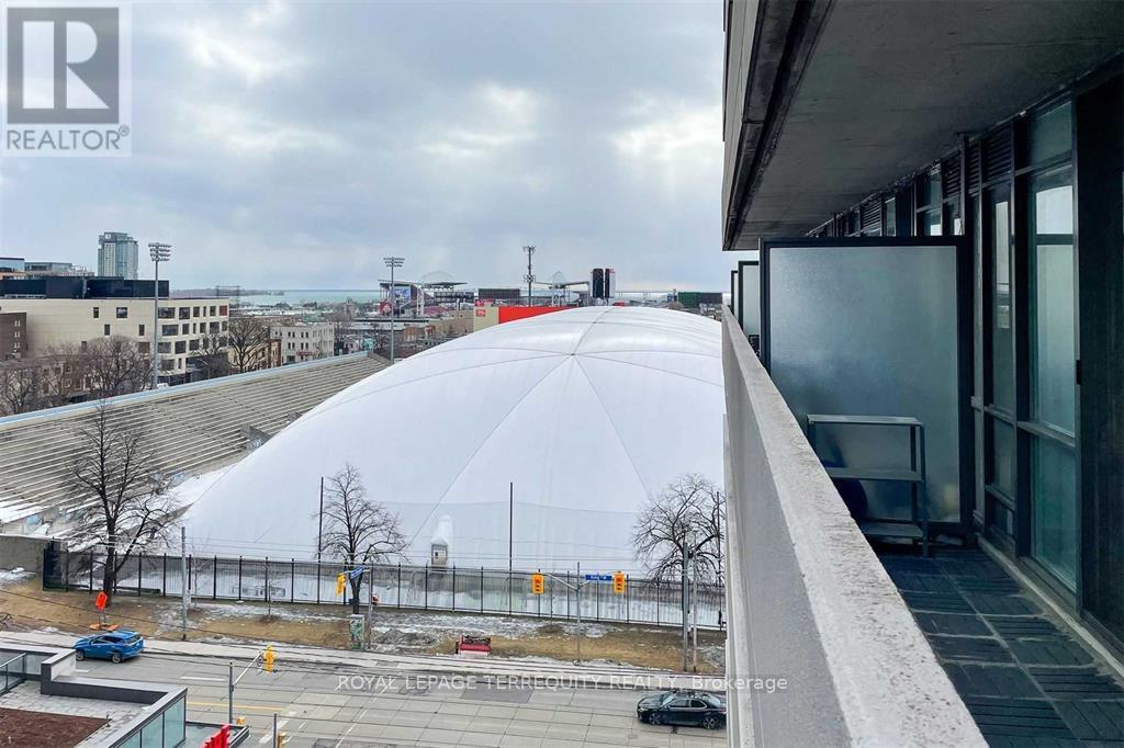 Bright and spacious one bedroom suite with a wide layout, big windows, and a full length balcony that fills the unit with natural light. The open concept living area has enough room for both a dining zone and an office setup, creating a functional space that is ideal for working or entertaining. The bedroom is generously sized and easily fits a queen bed with room for a dresser, giving you the comfortable layout you want in a downtown condo. Fuzion is a boutique sytly midrise building just off King West West with short elevator waits, great visitor parking, and a quiet residential feel only steps from transit, shops, restaurants, Liberty Village, and daily conveniences. Includes washer, dryer, fridge, stove, built in dishwasher, and all light fixtures. (id:4555)