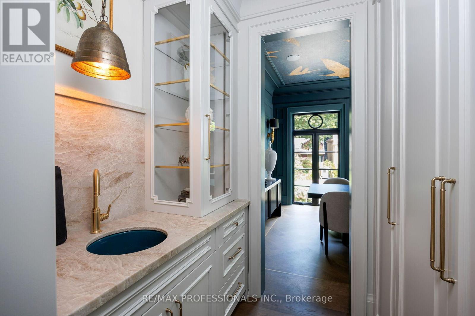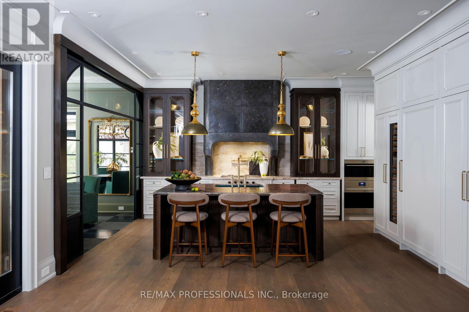 Nestled on a quiet cul-de-sac in a rare, beautiful ravine setting, this 5,000+ sq ft French-inspired estate architecturally refined by Hausworks, built by Atelier Custom Homes and designed and styled by Rizo Lola Designs offers three levels of refined luxury built with the finest curated materials. The main floor features a formal dining room, elegant office, and a stunning open-concept kitchen and family room with high-end appliances, honed quartzite & marble countertops, custom fine cabinetry, a large center island and a breakfast nook with ravine views. The family room, anchored by a limestone fireplace, flows into a sunroom overlooking the ravine. Upstairs boasts four spacious bedrooms, including a serene primary retreat with a grand walk-in closet and spa-like ensuite with oversized glass shower and heated floors. The lower level offers a wine room, wet bar, rec room with fireplace and custom built-ins, radiant heating, a fifth bedroom/office, full bath with steam shower, and gym. The exterior blends aged brick with limestone, professionally landscaped grounds, cobblestone driveway with snowmelt system, Generac generator, custom stone patio/walkway, and in-ground irrigation. Situated on an impressive ravine lot in one of the city's most prestigious enclaves, close to top schools, parks, and major routes, this residence delivers unmatched privacy, elegance, and lifestyle for the most discerning buyer. (id:4555)