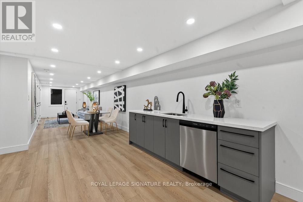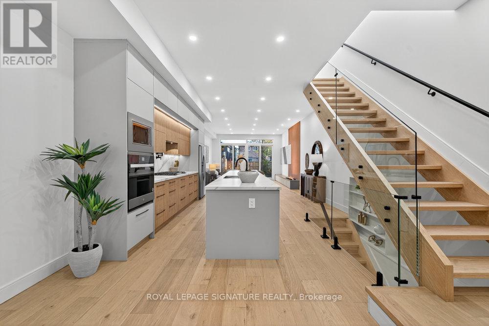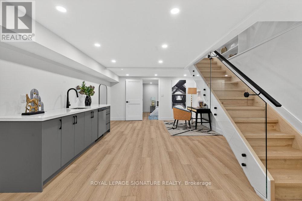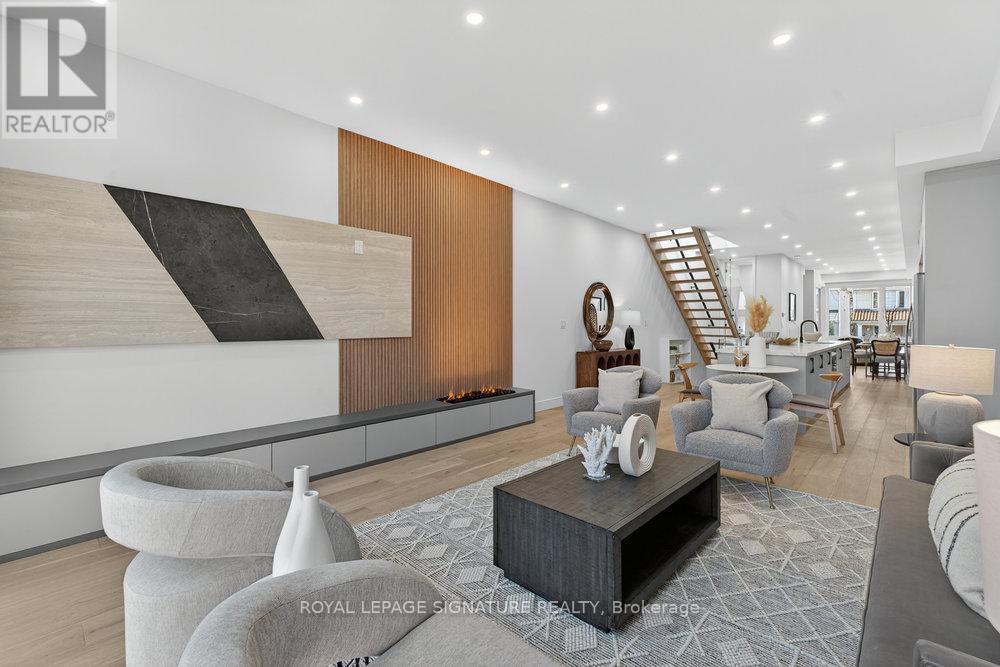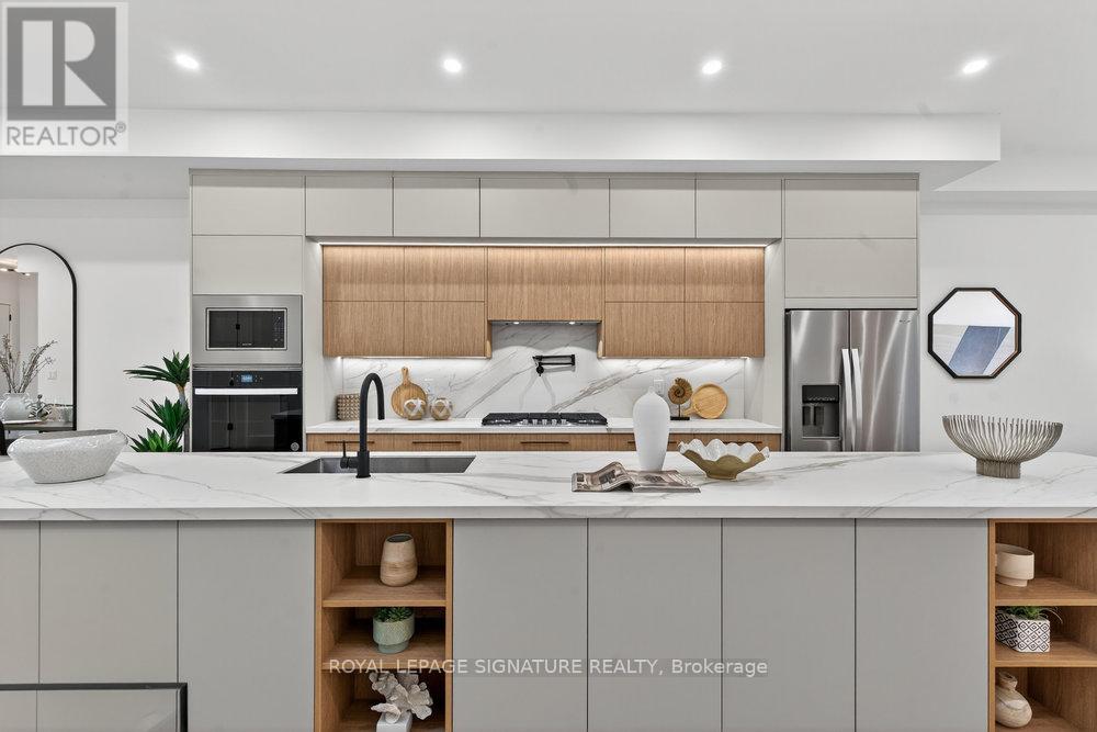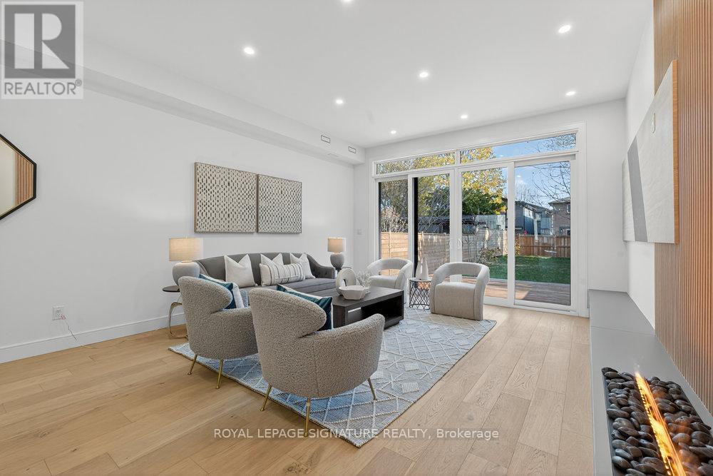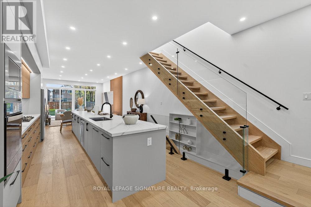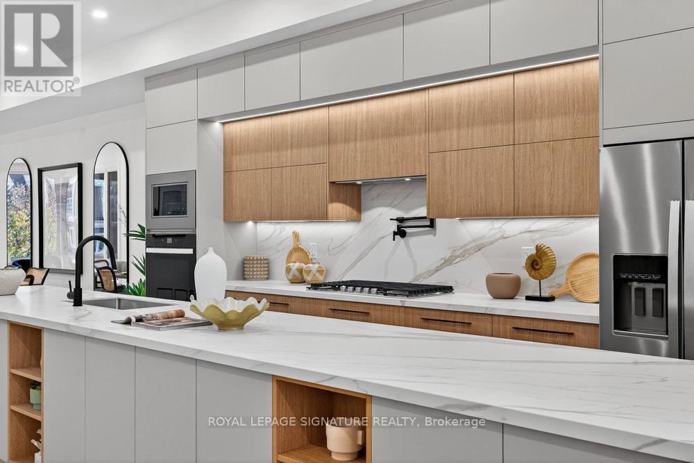 Step into a world of refined elegance in this custom-built showpiece, perfectly positioned on an extraordinary 160-ft deep lot. Designed with sophistication and functionality in mind, this home boasts over 3,100 sq ft of meticulously finished space, flooded with natural light through floor-to-ceiling windows and soaring ceilings. The open-concept main floor is anchored by a chef's dream kitchen, featuring a massive 16-ft island, extensive drawer storage, and ultra-durable porcelain counters and backsplash. The adjoining family room is both chic and inviting, highlighted by a bespoke feature wall, elegant built-ins, and a mesmerizing water-vapour fireplace. Double doors flow seamlessly onto a stylish deck overlooking the private, deep, fully fenced backyard, offering endless possibilities for outdoor living and entertaining. Architectural open-riser stairs ascend to a breathtaking upper level illuminated by four skylights. The luxurious primary suite offers a custom walk-through dressing area with built-in closets and skylight, along with a fully tiled, spa-worthy ensuite complete with a custom double vanity, curbless glass shower, and a freestanding tub. The second bedroom includes built-in closets, a floor-to-ceiling window, and access to a semi-ensuite with double vanity, separate water closet, and a glass-enclosed shower. The third bedroom shares the semi-ensuite and includes built-in closets and large window. The impressive lower level is bright and versatile, featuring a front walkout entrance, open-concept living space with kitchenette, a spacious bedroom, and two full washrooms, ideal for in-laws, guests, or multi-generational living. A rare blend of style, craftsmanship, and modern amenities-this home is a true standout for the most discerning buyer. The exterior continues the theme of custom craftsmanship with the front styled with a blend of wood composite, porcelain slabs, ACM Panels and an interlocked driveway. (id:4555)