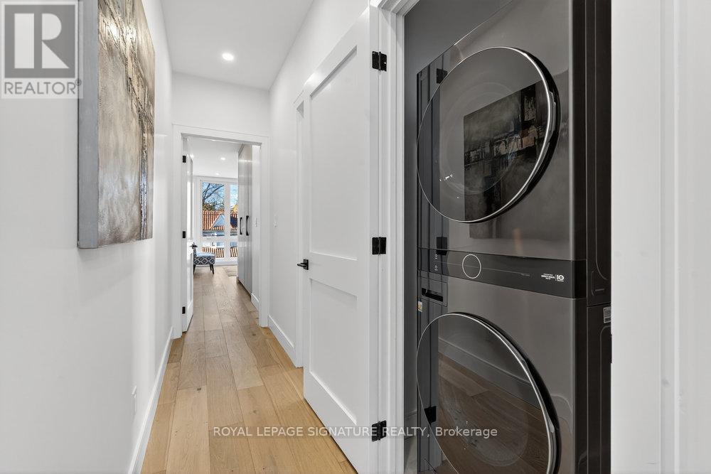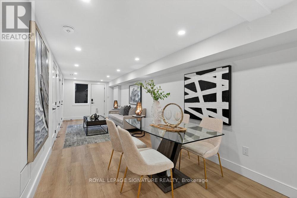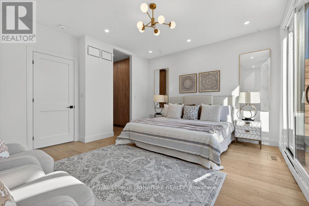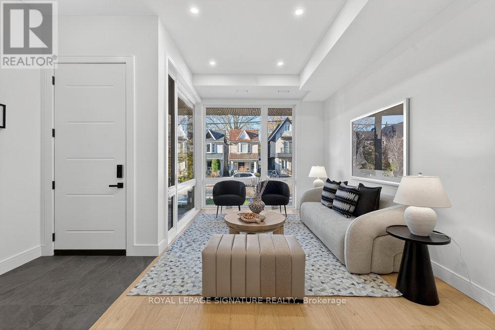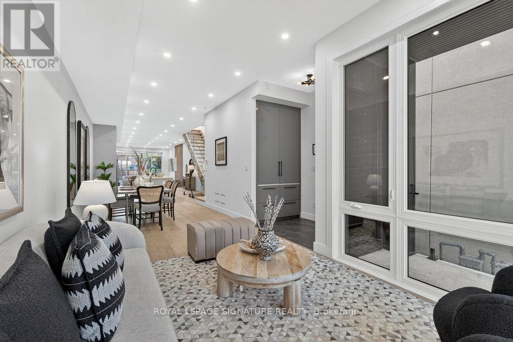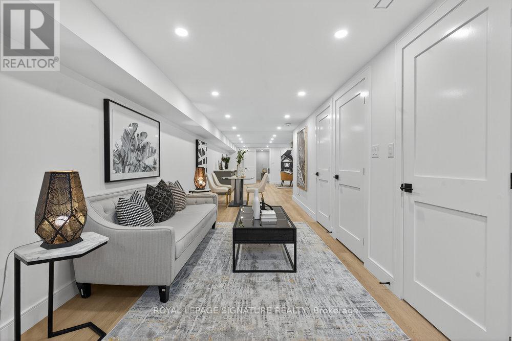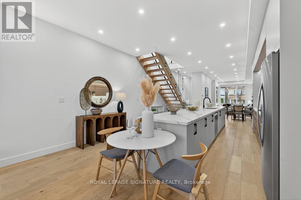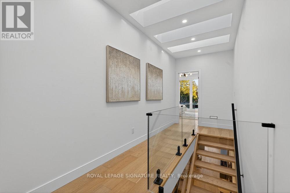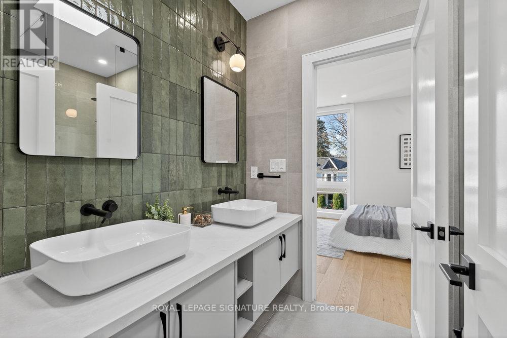 Step into a world of refined elegance in this custom-built showpiece, perfectly positioned on an extraordinary 160-ft deep lot. Designed with sophistication and functionality in mind, this home boasts over 3,100 sq ft of meticulously finished space, flooded with natural light through floor-to-ceiling windows and soaring ceilings. The open-concept main floor is anchored by a chef's dream kitchen, featuring a massive 16-ft island, extensive drawer storage, and ultra-durable porcelain counters and backsplash. The adjoining family room is both chic and inviting, highlighted by a bespoke feature wall, elegant built-ins, and a mesmerizing water-vapour fireplace. Double doors flow seamlessly onto a stylish deck overlooking the private, deep, fully fenced backyard, offering endless possibilities for outdoor living and entertaining. Architectural open-riser stairs ascend to a breathtaking upper level illuminated by four skylights. The luxurious primary suite offers a custom walk-through dressing area with built-in closets and skylight, along with a fully tiled, spa-worthy ensuite complete with a custom double vanity, curbless glass shower, and a freestanding tub. The second bedroom includes built-in closets, a floor-to-ceiling window, and access to a semi-ensuite with double vanity, separate water closet, and a glass-enclosed shower. The third bedroom shares the semi-ensuite and includes built-in closets and large window. The impressive lower level is bright and versatile, featuring a front walkout entrance, open-concept living space with kitchenette, a spacious bedroom, and two full washrooms, ideal for in-laws, guests, or multi-generational living. A rare blend of style, craftsmanship, and modern amenities-this home is a true standout for the most discerning buyer. The exterior continues the theme of custom craftsmanship with the front styled with a blend of wood composite, porcelain slabs, ACM Panels and an interlocked driveway. (id:4555)