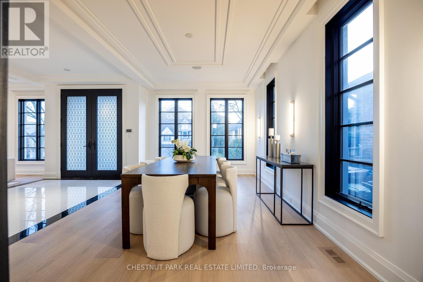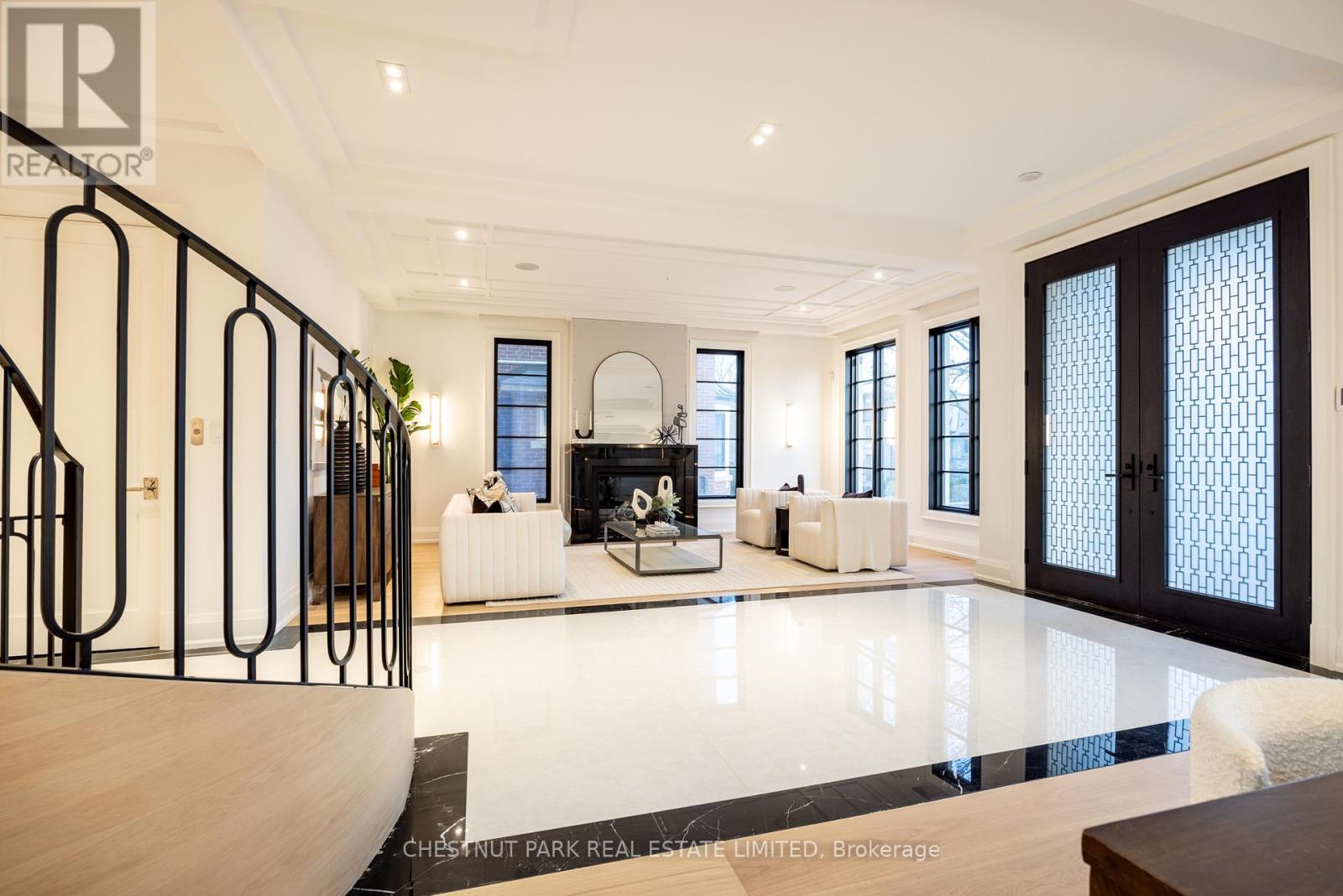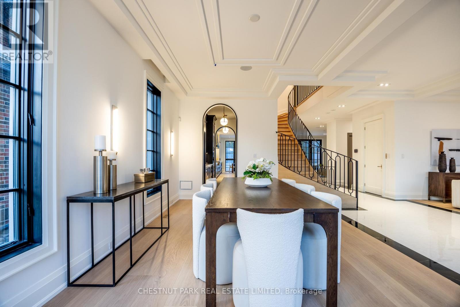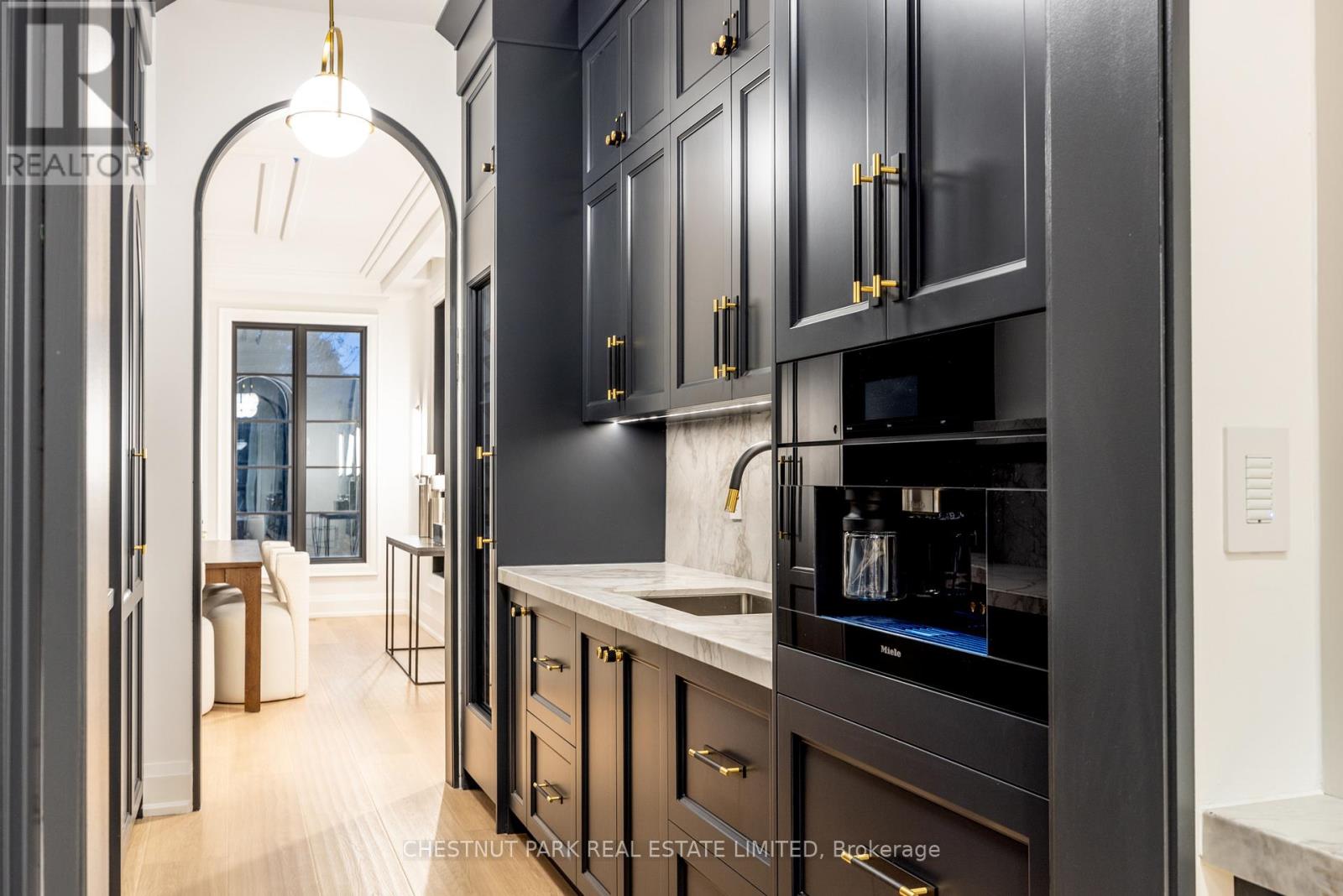 A newly built custom residence, designed by Spragge Architects, is perfectly positioned with southern exposure and captivating winter city views. Exemplifying exceptional craftsmanship in the heart of prestigious Forest Hill. This 6-bedroom, 8-bathroom home spans over 5,200 sq ft of refined living space, blending timeless artistry with the finest materials. From the moment you arrive, a heated walkway leads to an impressive entrance framed by a brick and Indiana limestone facade. Inside, soaring 10.5-foot ceilings, a sweeping curved staircase, and a grand stone hallway set a tone of understated elegance. The formal oversized living and dining rooms feature coffered ceilings, a statement fireplace, and a butler's pantry designed for seamless entertaining. Sunlight fills the principal rooms, overlooking manicured gardens and a saltwater pool, while a private elevator offers effortless access to every level. Enter through the private side entrance from the driveway into a well-appointed mudroom that combines function and style, adjacent to a striking powder room with marble floors and an integrated marble sink. The chef's kitchen, anchored by a generous eat-in island and breakfast area, connects to a welcoming family room with custom built-ins, a coffered ceiling, and a walk-out to the private yard. Upstairs, the Primary suite offers a tranquil retreat with a private balcony, custom walk-in closet with exquisite cabinetry, and spa-inspired ensuite. Two additional bedrooms, each with designer finishes and ensuite bathrooms, complete this level. The top floor adds versatility with two more bedrooms, a full bath, an office or play space, and a sunlit laundry room with abundant storage. The lower level impresses with a large recreation room, wet bar, gym, guest/nanny suite, powder room, and ample storage & radiant heating. Just steps from Forest Hill Village, Cedarvale Park, and only 15 minutes to Yorkville. Thirty-Six Ava Road defines modern luxury and effortless living. (id:4555)