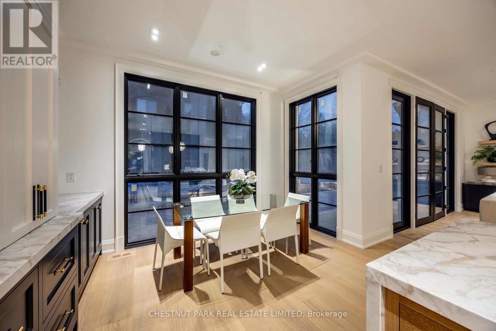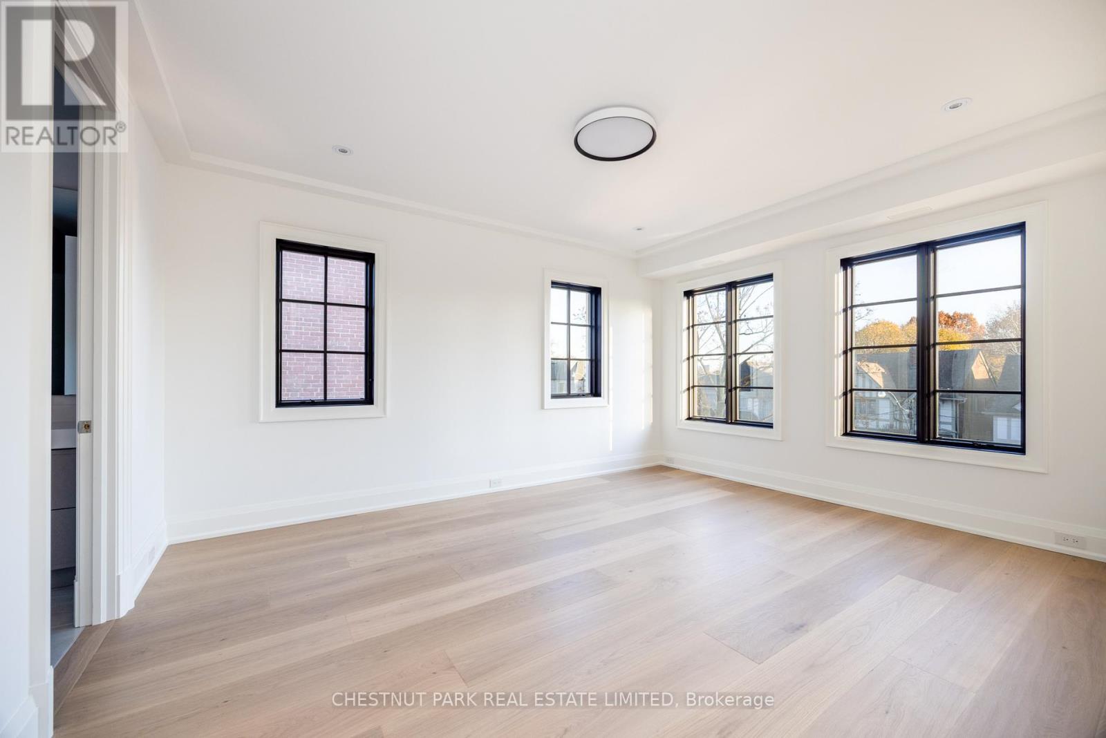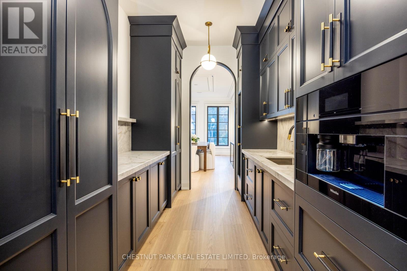 A newly built custom residence, designed by Spragge Architects, is perfectly positioned with southern exposure and captivating winter city views. Exemplifying exceptional craftsmanship in the heart of prestigious Forest Hill. This 6-bedroom, 8-bathroom home spans over 5,200 sq ft of refined living space, blending timeless artistry with the finest materials. From the moment you arrive, a heated walkway leads to an impressive entrance framed by a brick and Indiana limestone facade. Inside, soaring 10.5-foot ceilings, a sweeping curved staircase, and a grand stone hallway set a tone of understated elegance. The formal oversized living and dining rooms feature coffered ceilings, a statement fireplace, and a butler's pantry designed for seamless entertaining. Sunlight fills the principal rooms, overlooking manicured gardens and a saltwater pool, while a private elevator offers effortless access to every level. Enter through the private side entrance from the driveway into a well-appointed mudroom that combines function and style, adjacent to a striking powder room with marble floors and an integrated marble sink. The chef's kitchen, anchored by a generous eat-in island and breakfast area, connects to a welcoming family room with custom built-ins, a coffered ceiling, and a walk-out to the private yard. Upstairs, the Primary suite offers a tranquil retreat with a private balcony, custom walk-in closet with exquisite cabinetry, and spa-inspired ensuite. Two additional bedrooms, each with designer finishes and ensuite bathrooms, complete this level. The top floor adds versatility with two more bedrooms, a full bath, an office or play space, and a sunlit laundry room with abundant storage. The lower level impresses with a large recreation room, wet bar, gym, guest/nanny suite, powder room, and ample storage & radiant heating. Just steps from Forest Hill Village, Cedarvale Park, and only 15 minutes to Yorkville. Thirty-Six Ava Road defines modern luxury and effortless living. (id:4555)