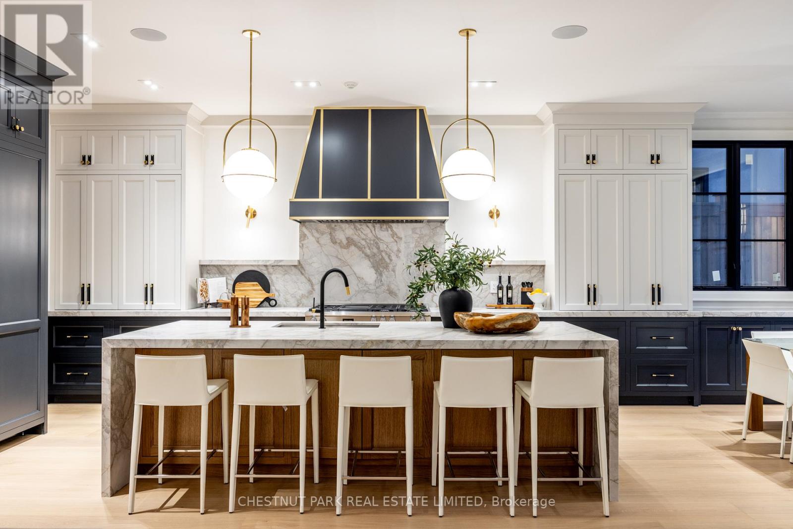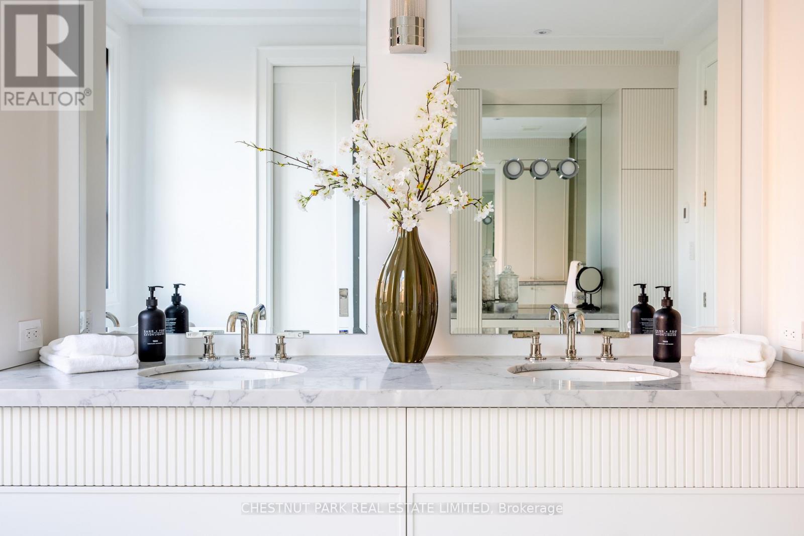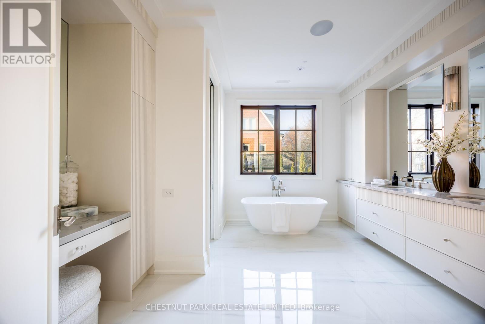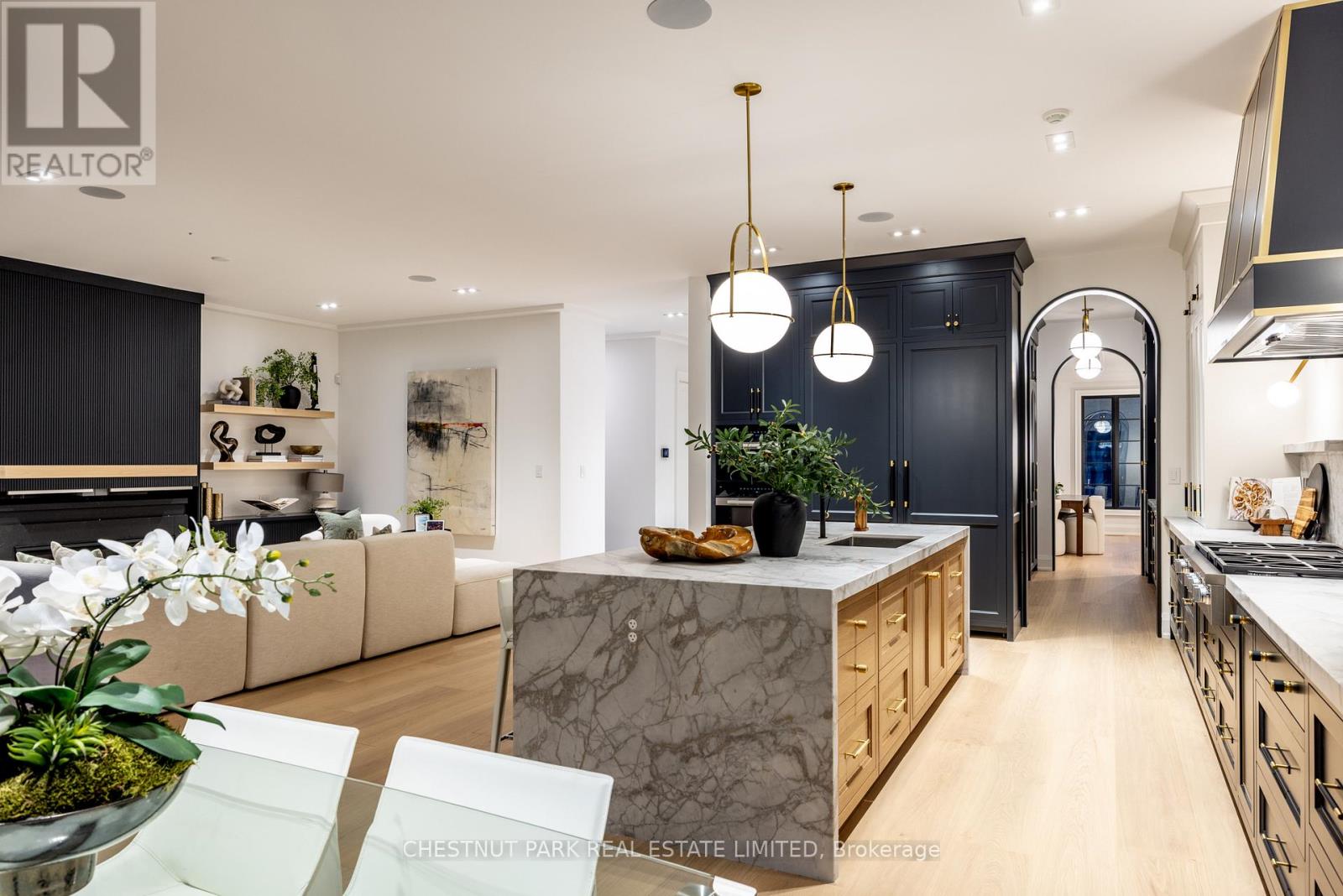 A newly built custom residence, designed by Spragge Architects, is perfectly positioned with southern exposure and captivating winter city views. Exemplifying exceptional craftsmanship in the heart of prestigious Forest Hill. This 6-bedroom, 8-bathroom home spans over 5,200 sq ft of refined living space, blending timeless artistry with the finest materials. From the moment you arrive, a heated walkway leads to an impressive entrance framed by a brick and Indiana limestone facade. Inside, soaring 10.5-foot ceilings, a sweeping curved staircase, and a grand stone hallway set a tone of understated elegance. The formal oversized living and dining rooms feature coffered ceilings, a statement fireplace, and a butler's pantry designed for seamless entertaining. Sunlight fills the principal rooms, overlooking manicured gardens and a saltwater pool, while a private elevator offers effortless access to every level. Enter through the private side entrance from the driveway into a well-appointed mudroom that combines function and style, adjacent to a striking powder room with marble floors and an integrated marble sink. The chef's kitchen, anchored by a generous eat-in island and breakfast area, connects to a welcoming family room with custom built-ins, a coffered ceiling, and a walk-out to the private yard. Upstairs, the Primary suite offers a tranquil retreat with a private balcony, custom walk-in closet with exquisite cabinetry, and spa-inspired ensuite. Two additional bedrooms, each with designer finishes and ensuite bathrooms, complete this level. The top floor adds versatility with two more bedrooms, a full bath, an office or play space, and a sunlit laundry room with abundant storage. The lower level impresses with a large recreation room, wet bar, gym, guest/nanny suite, powder room, and ample storage & radiant heating. Just steps from Forest Hill Village, Cedarvale Park, and only 15 minutes to Yorkville. Thirty-Six Ava Road defines modern luxury and effortless living. (id:4555)